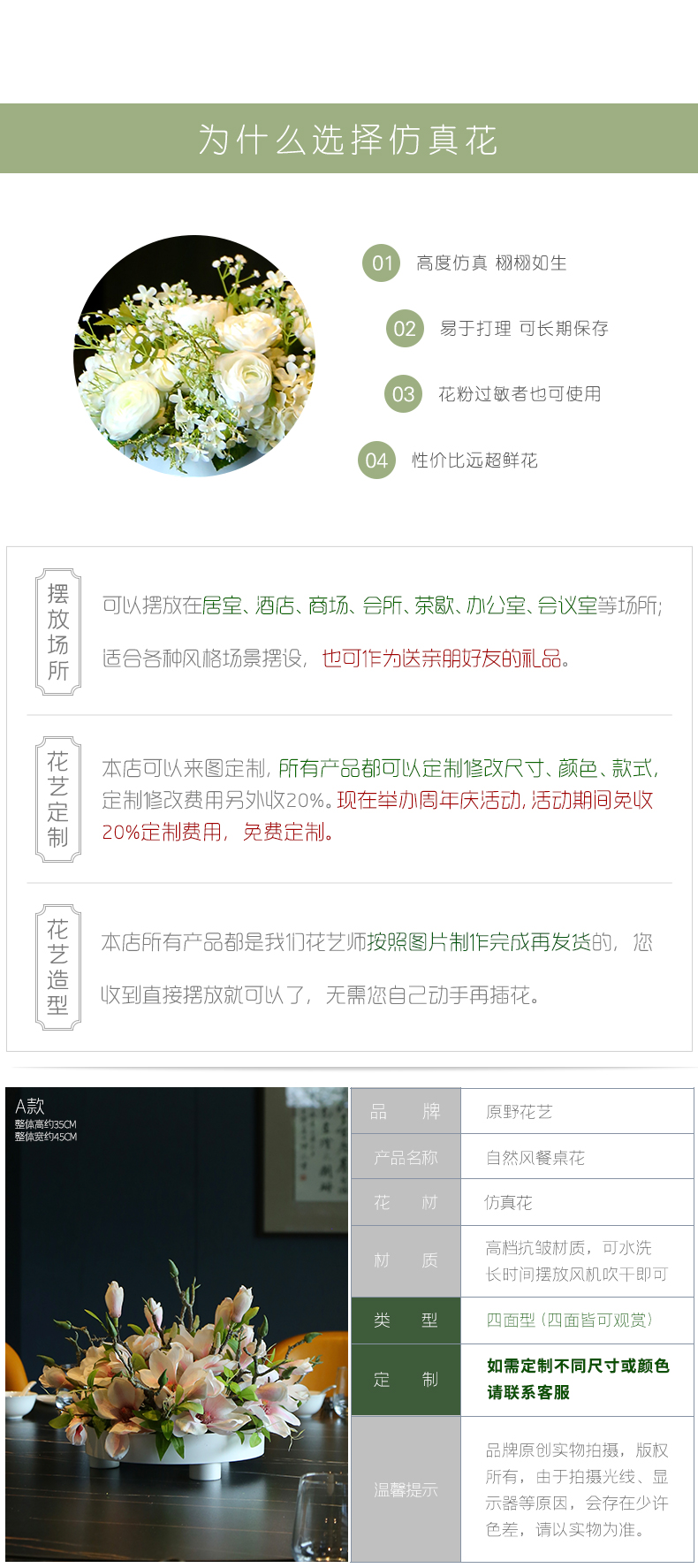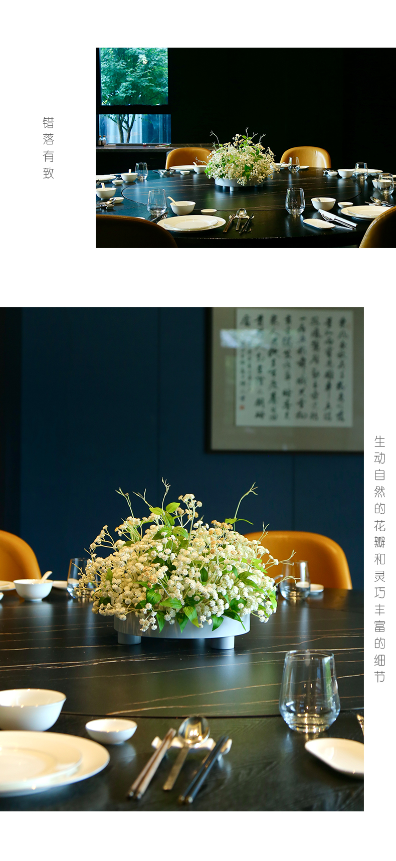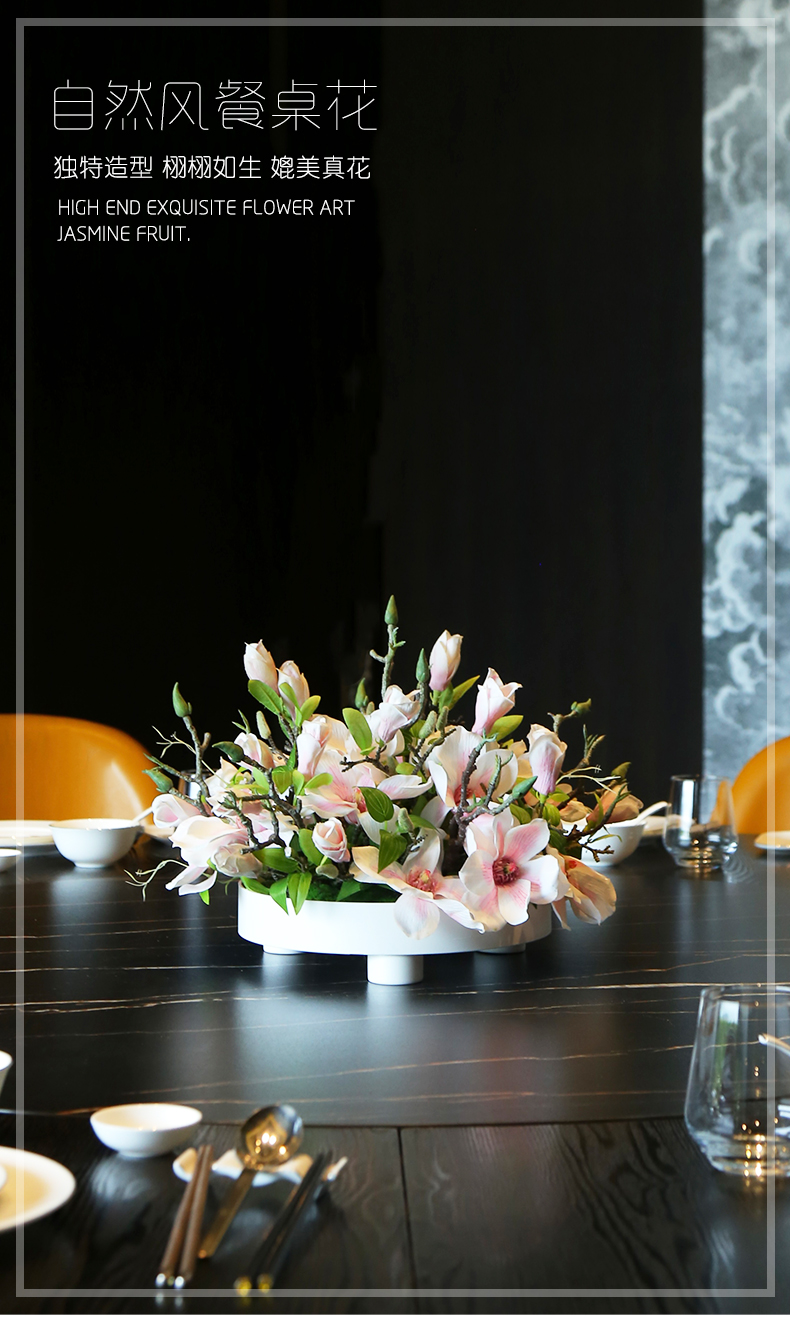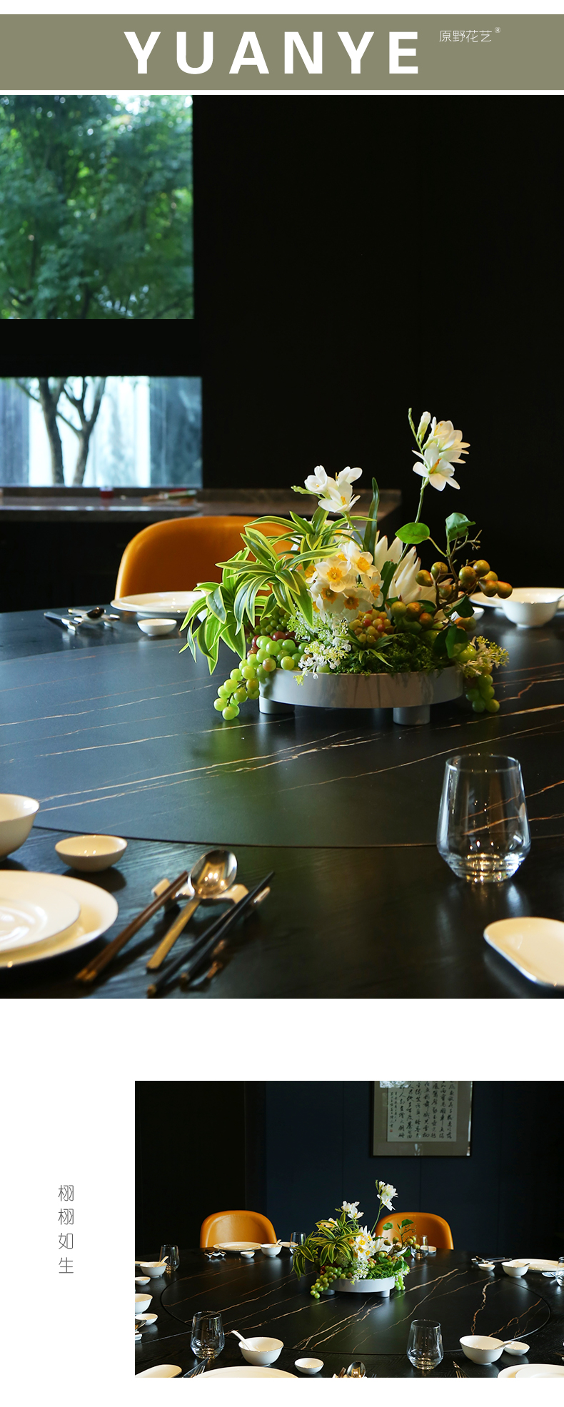 高档餐桌花仿真花圆桌转盘桌面酒店餐厅包厢客厅大装饰假花摆设件