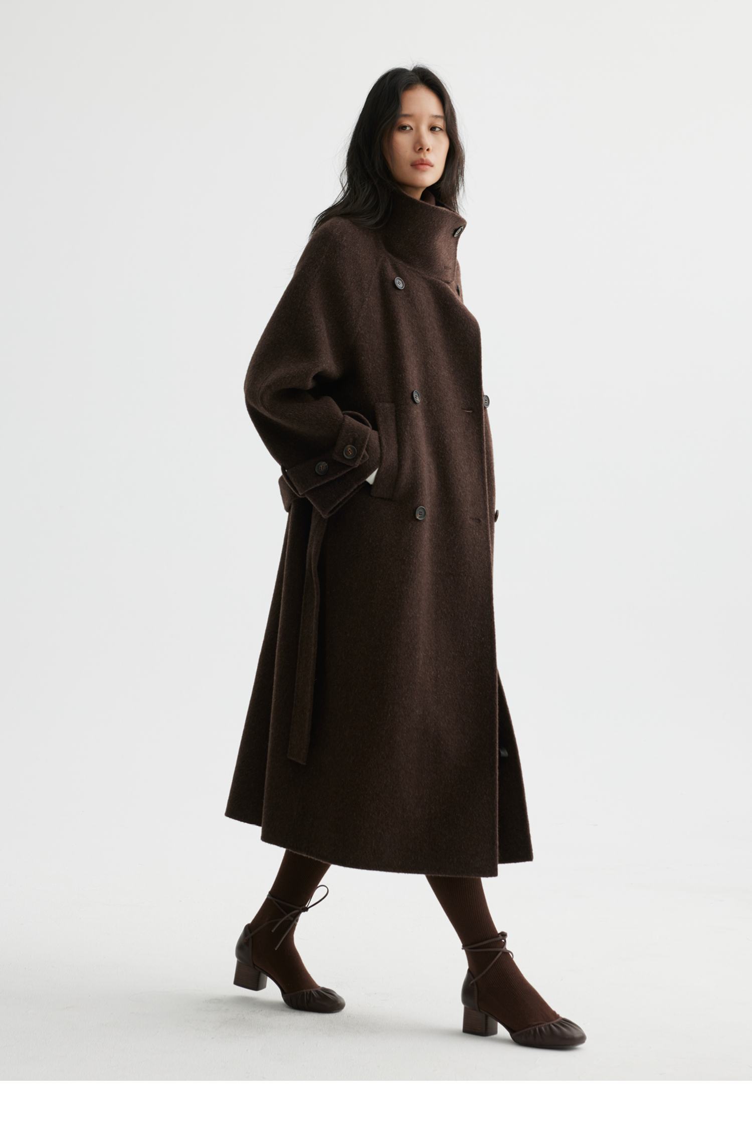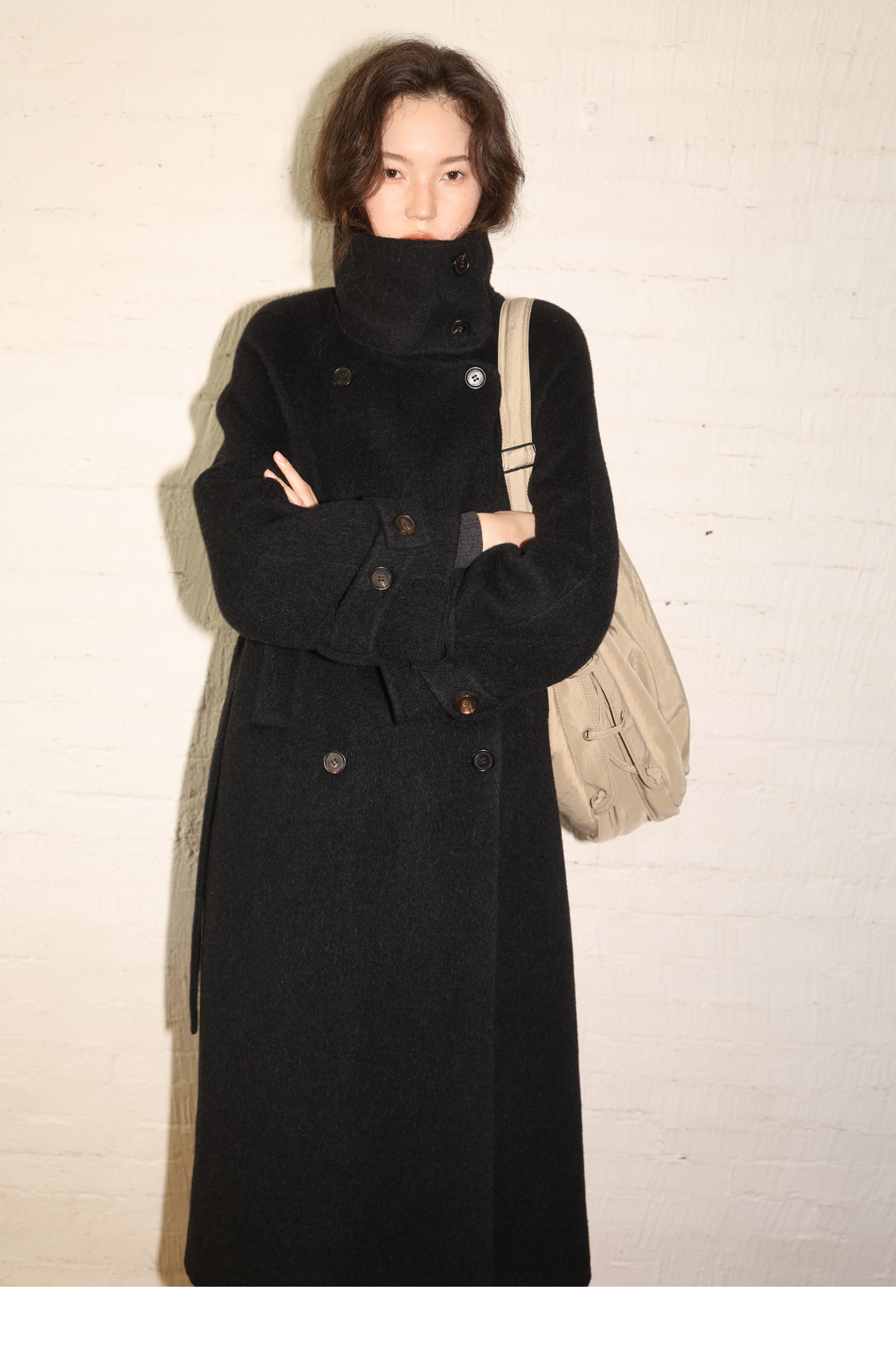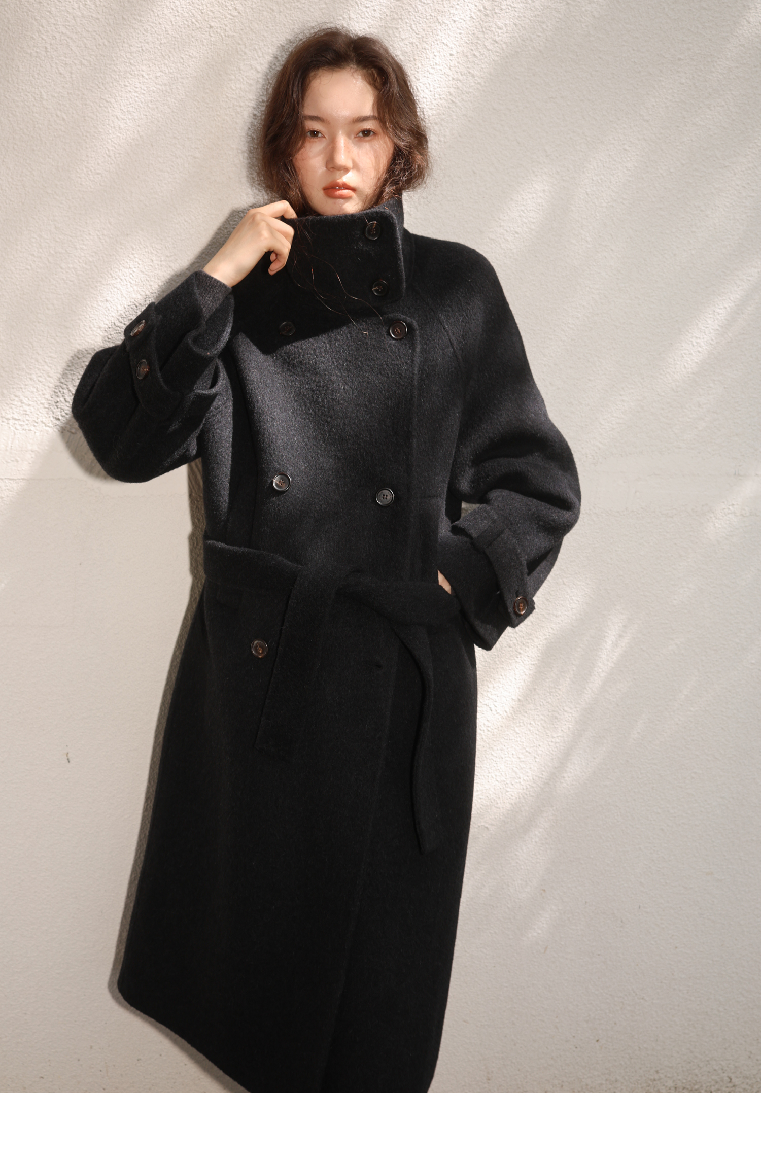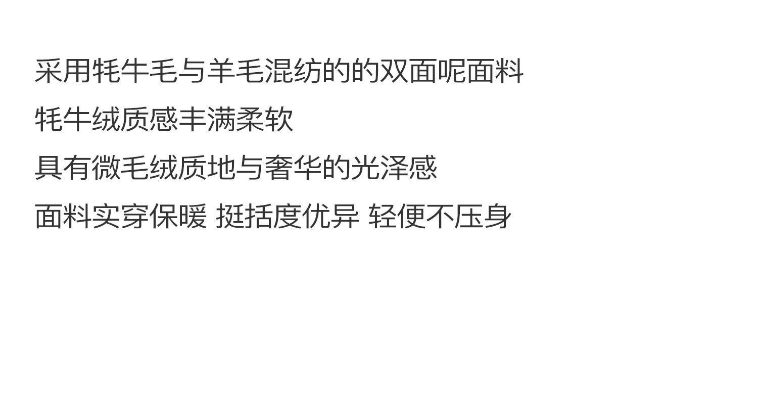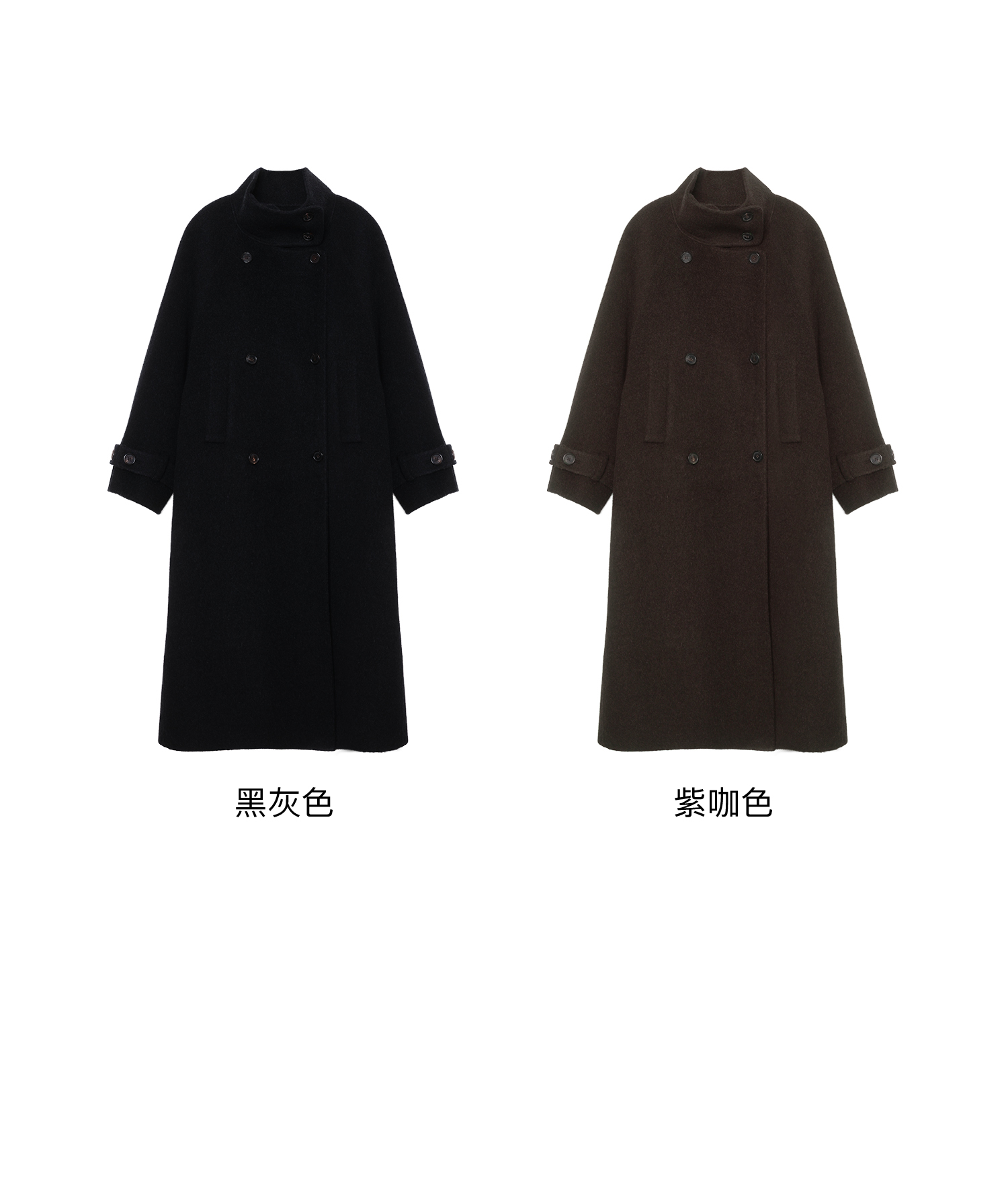 素舶 牦牛绒绵羊毛柔润光泽感双排扣立领长短款双面呢大衣