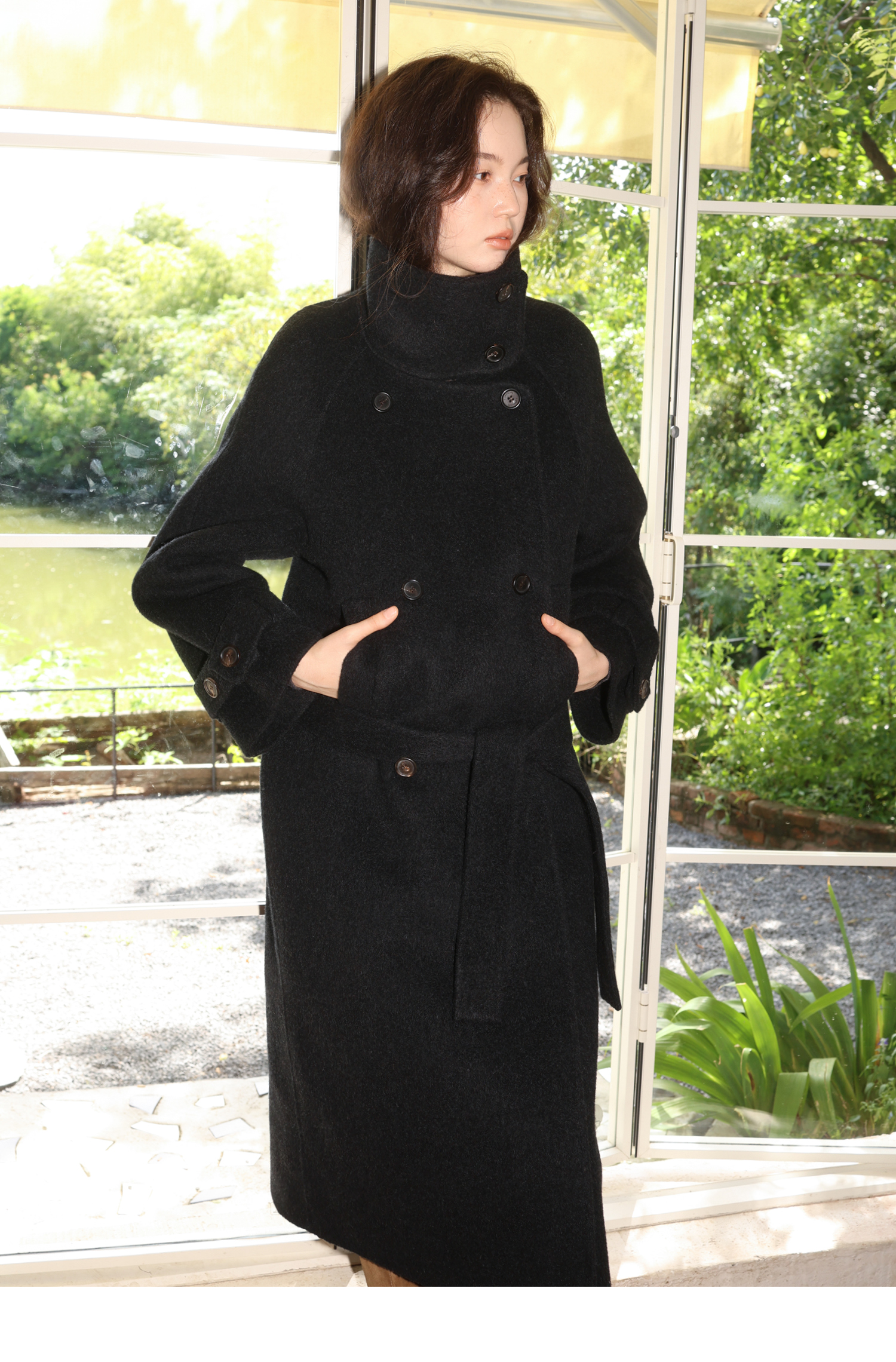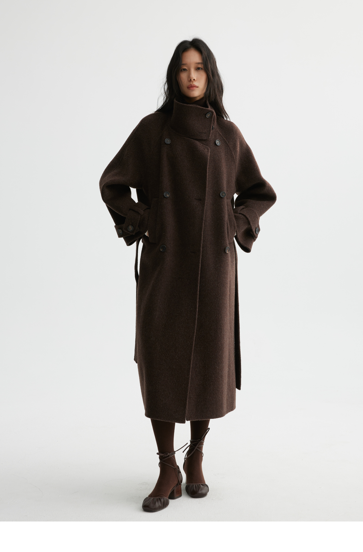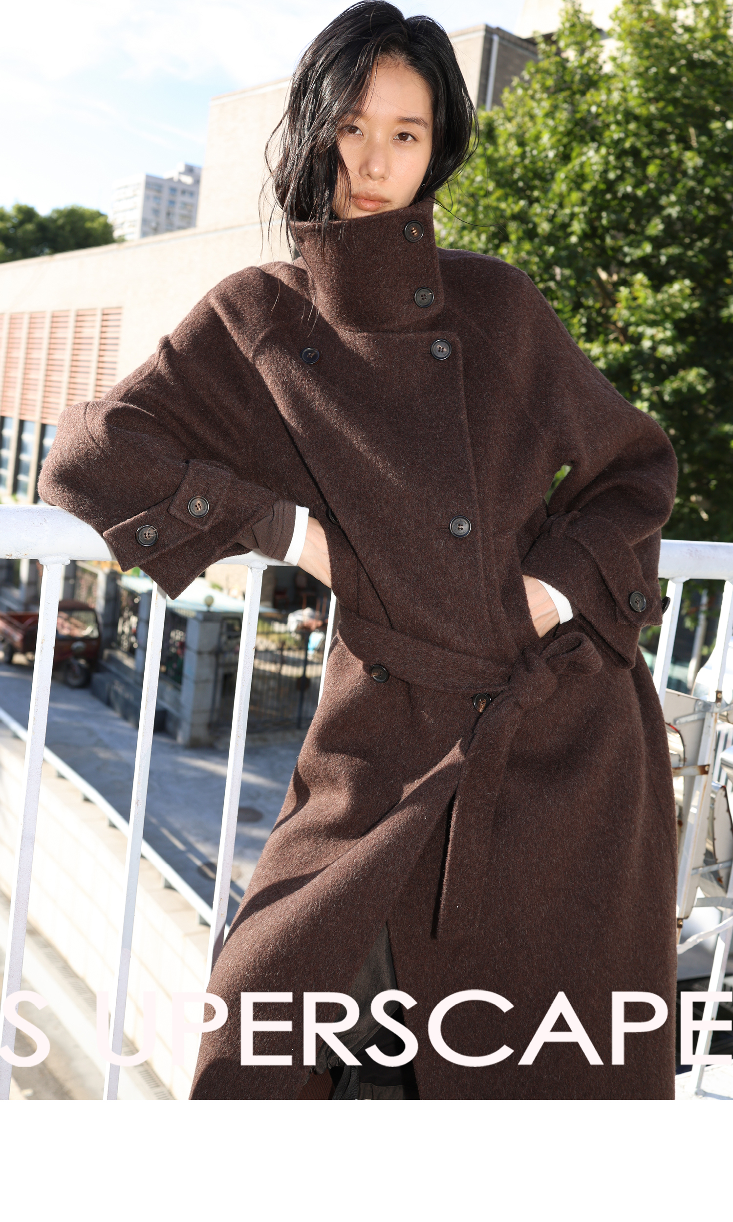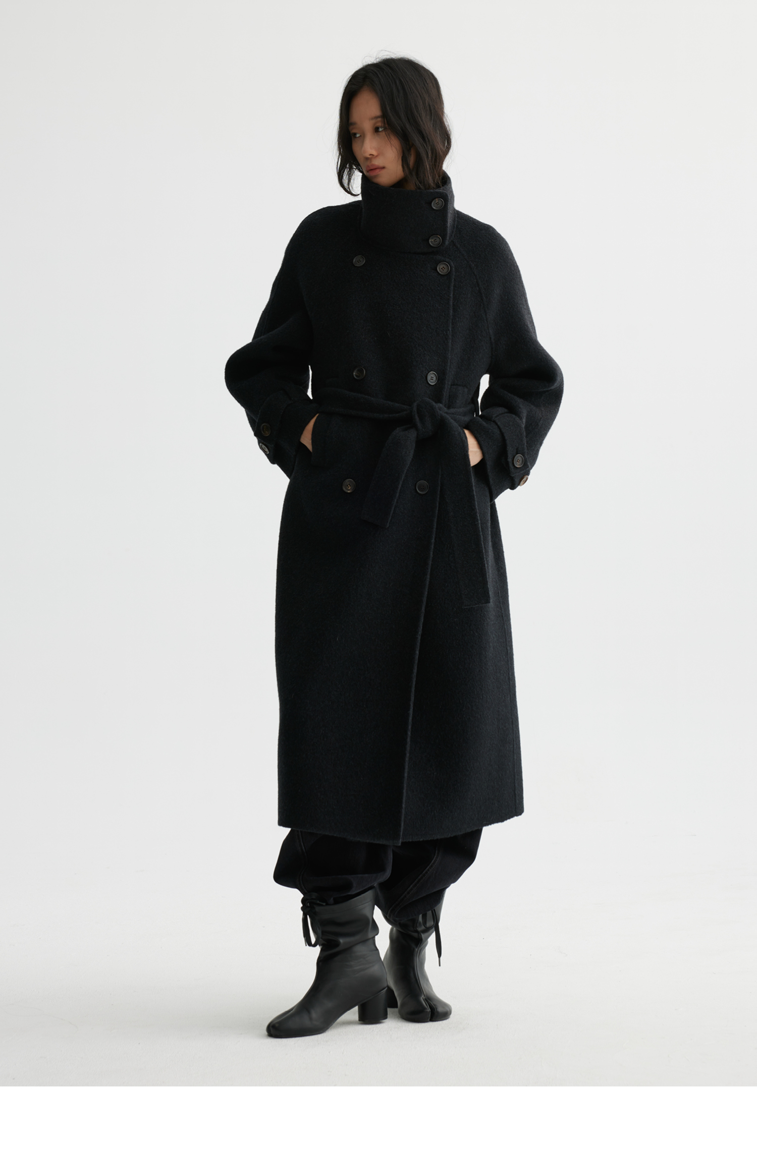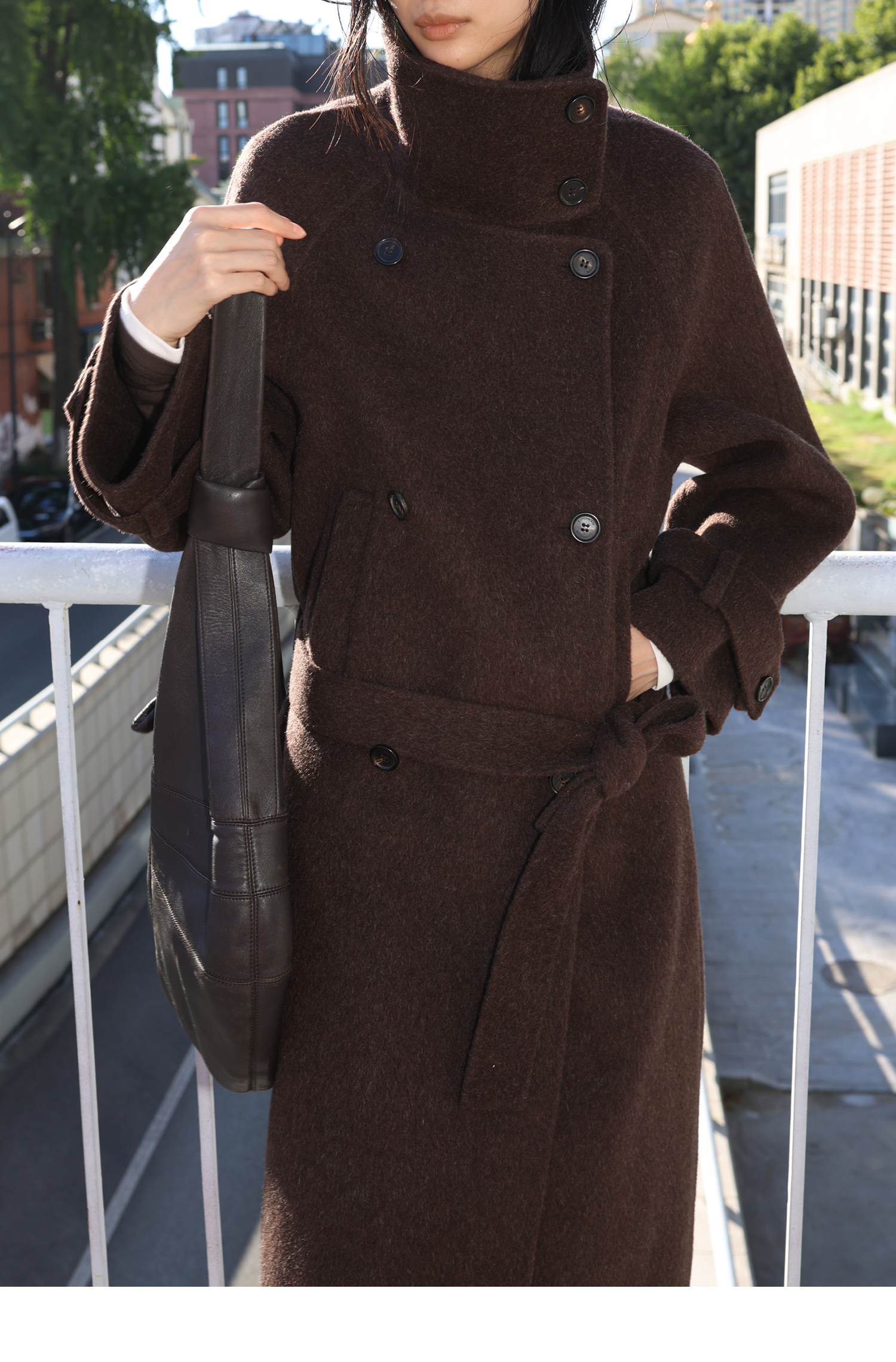 素舶 牦牛绒绵羊毛柔润光泽感双排扣立领长短款双面呢大衣