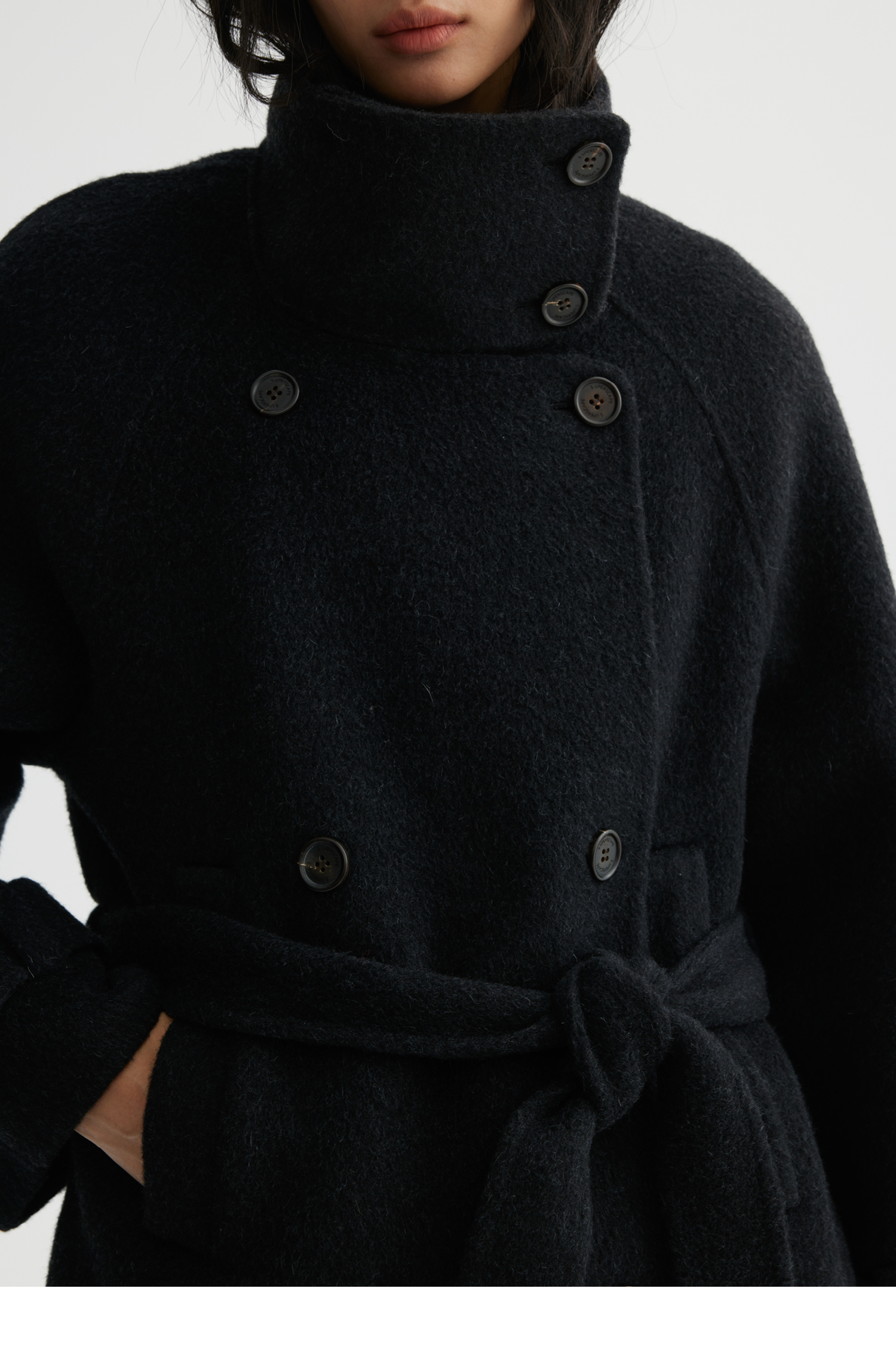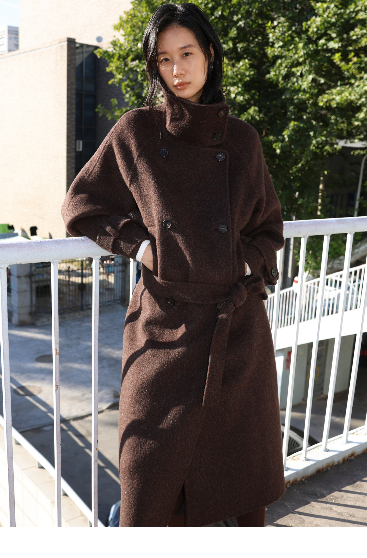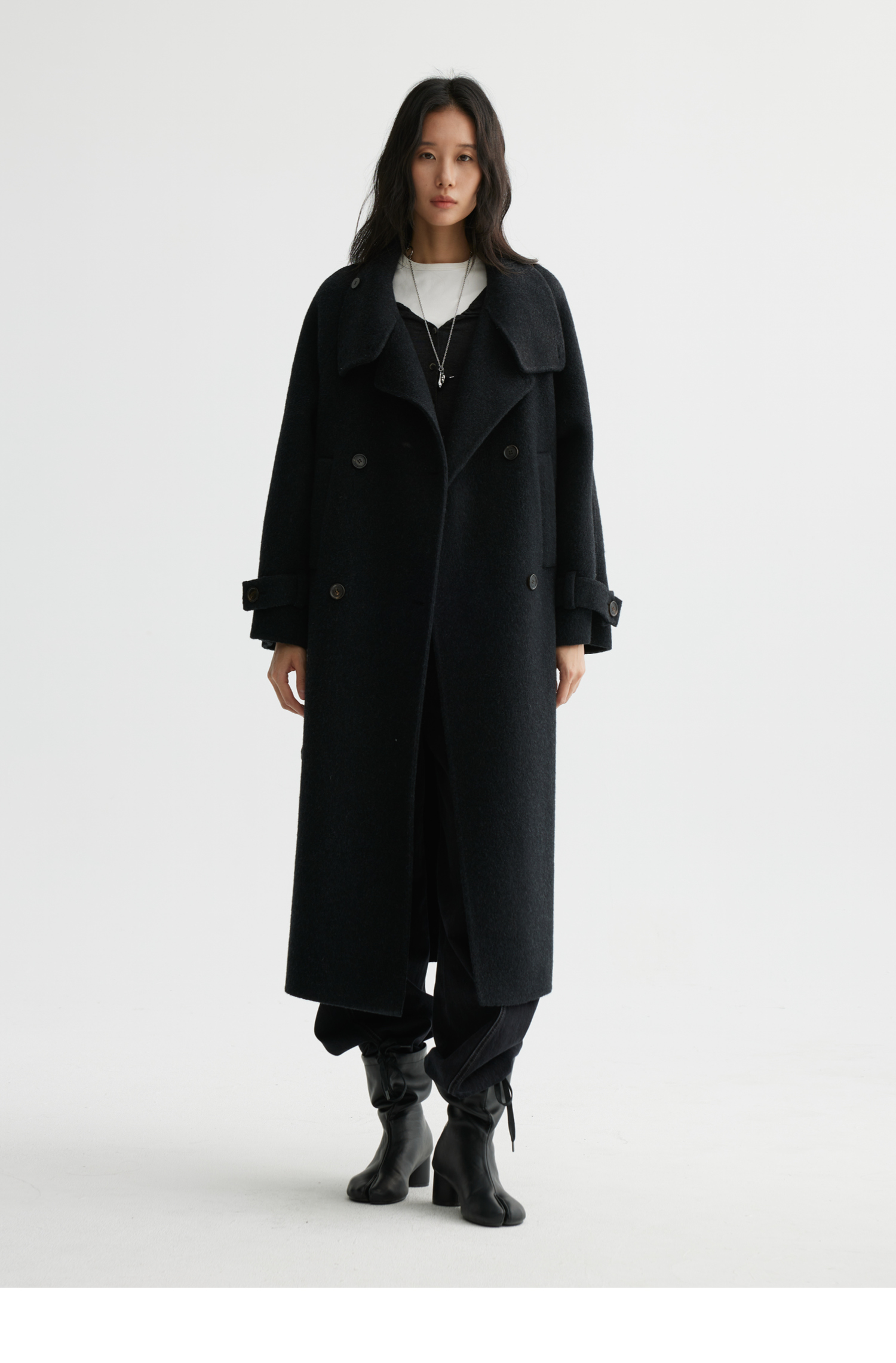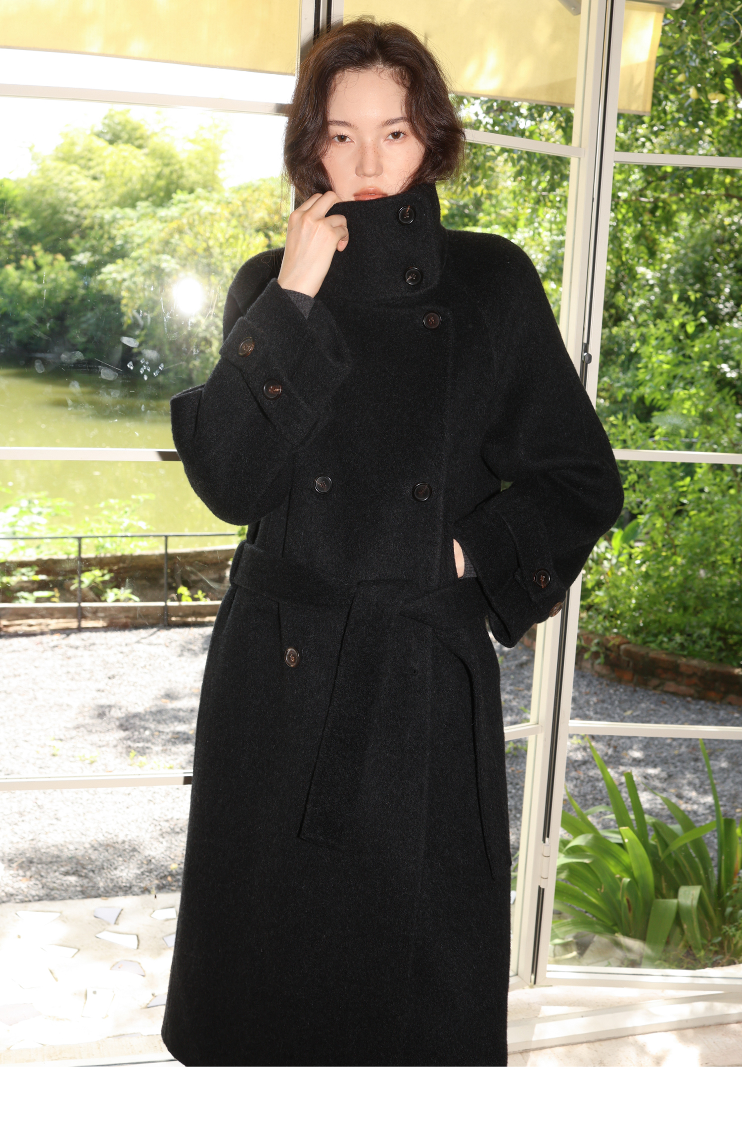 素舶 牦牛绒绵羊毛柔润光泽感双排扣立领长短款双面呢大衣