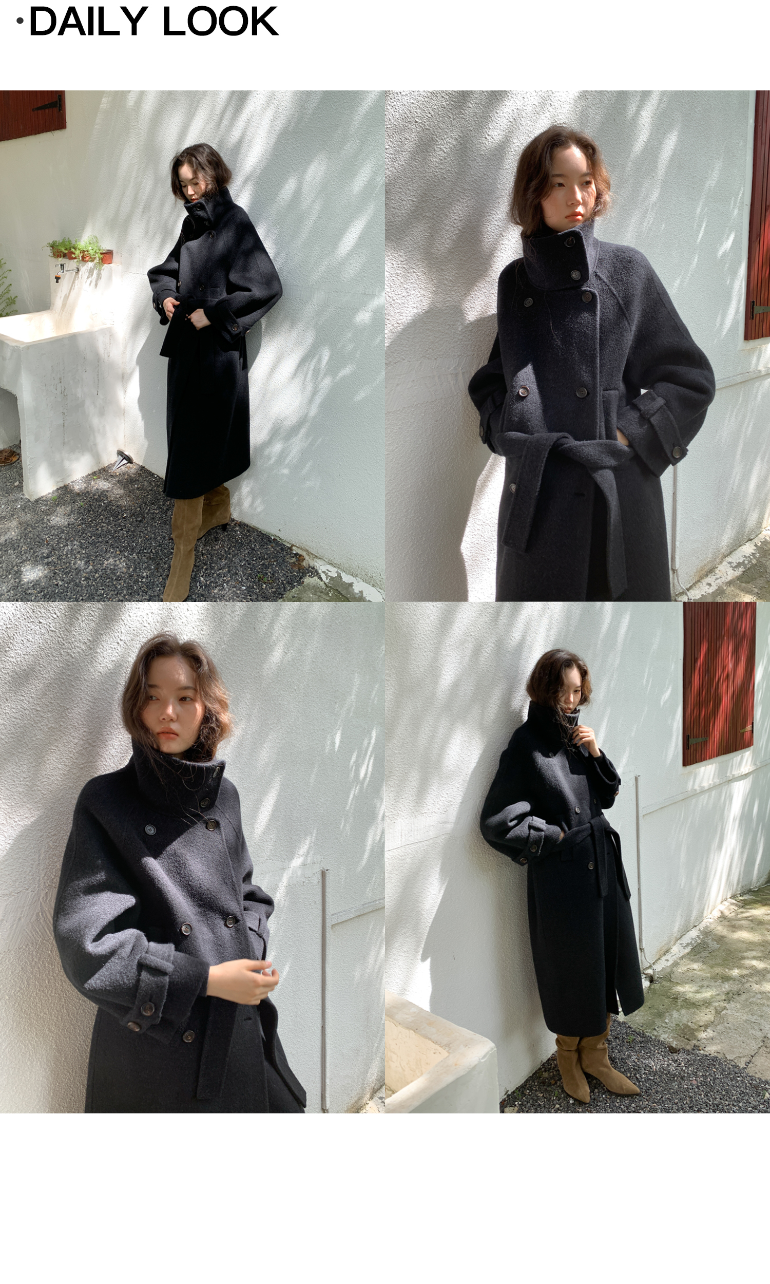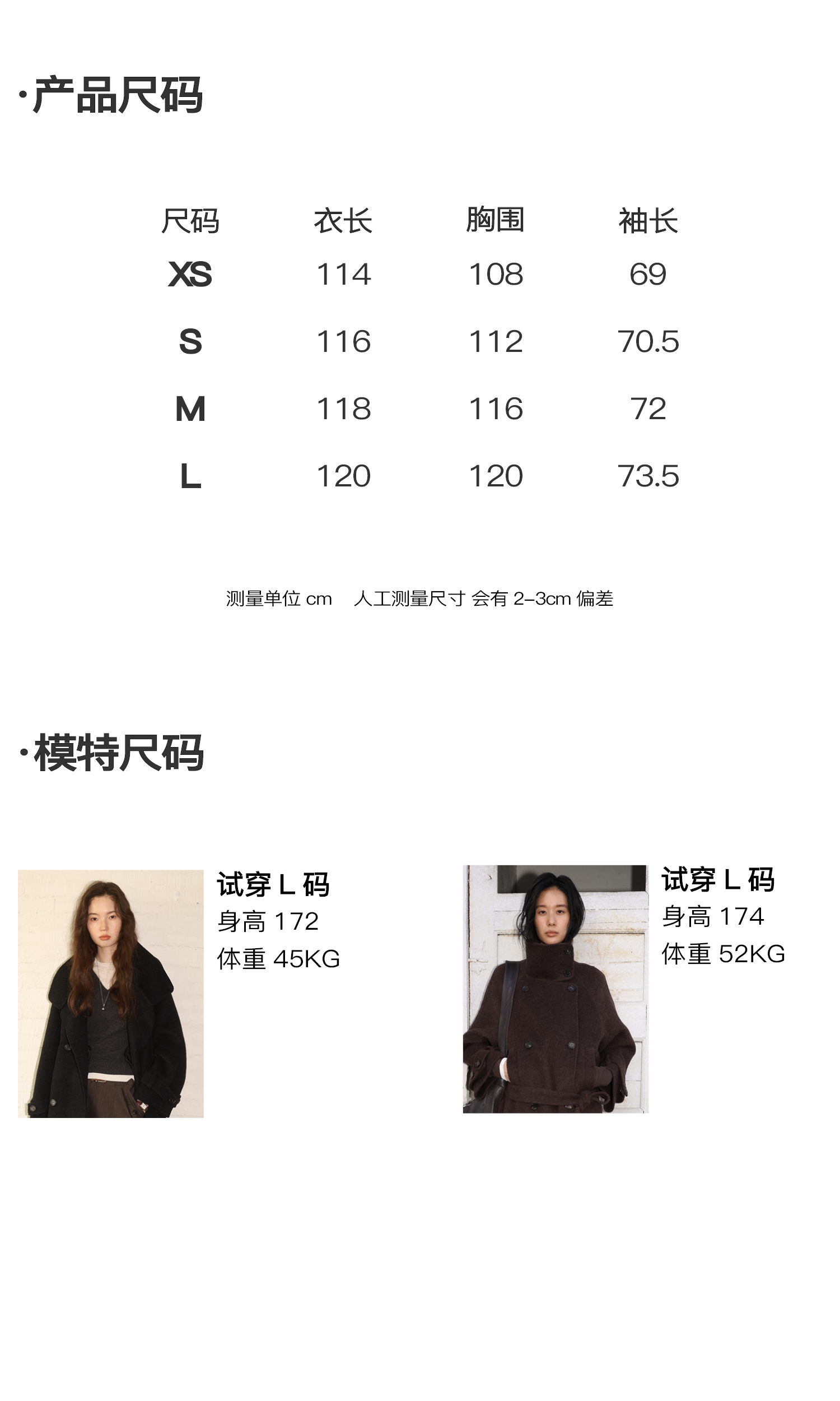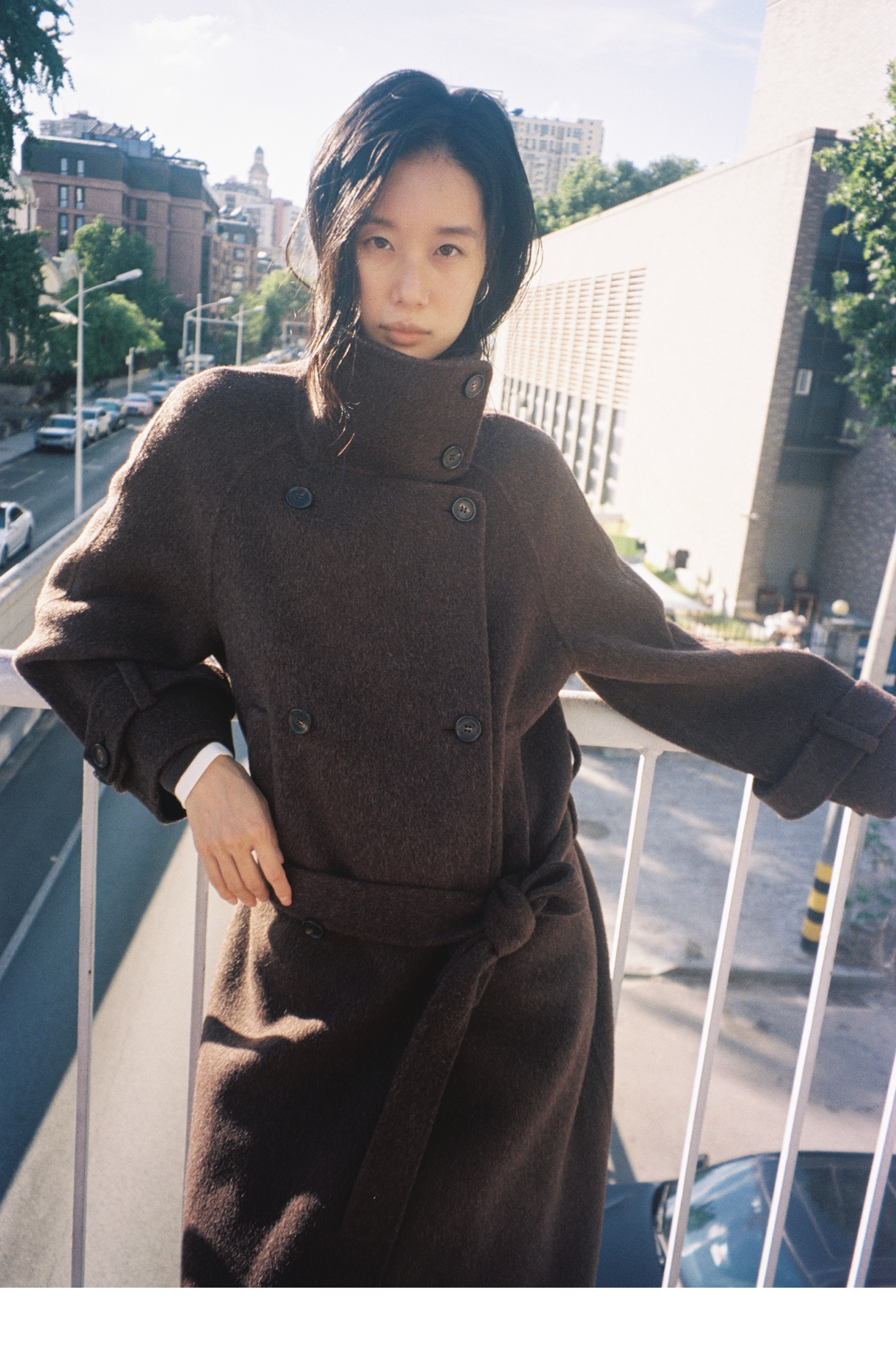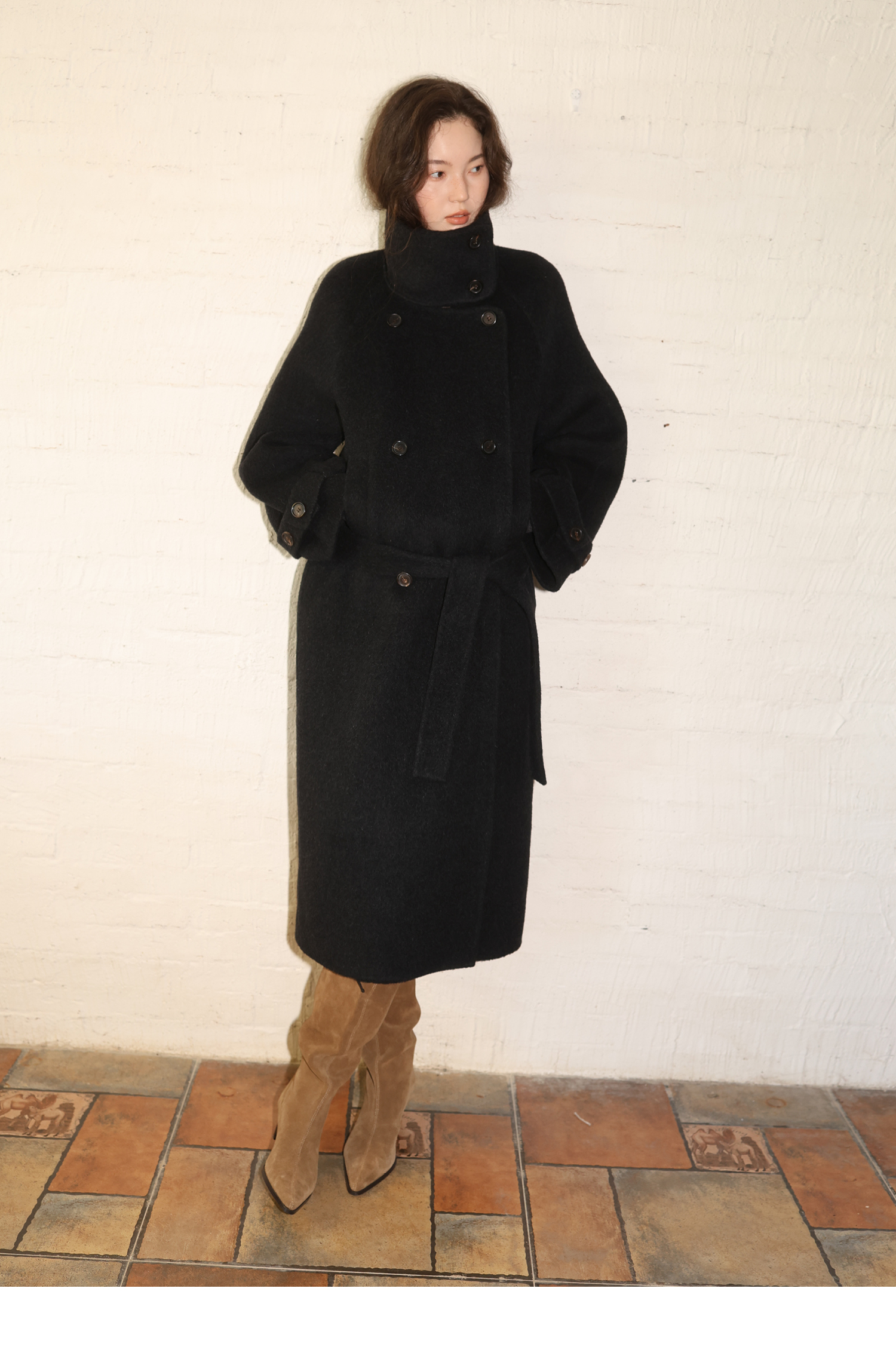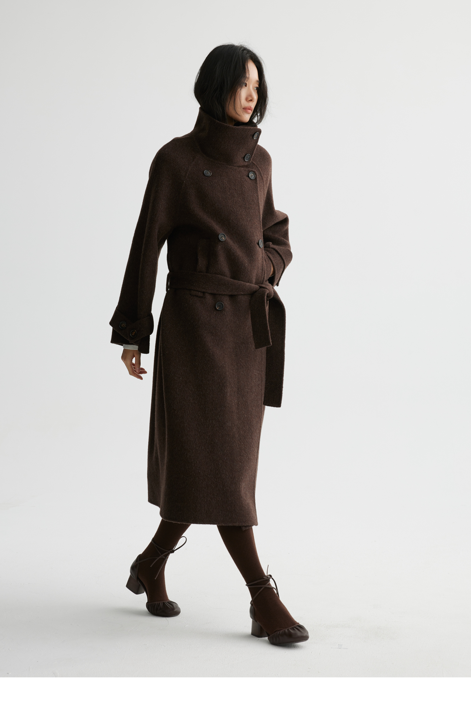 素舶 牦牛绒绵羊毛柔润光泽感双排扣立领长短款双面呢大衣