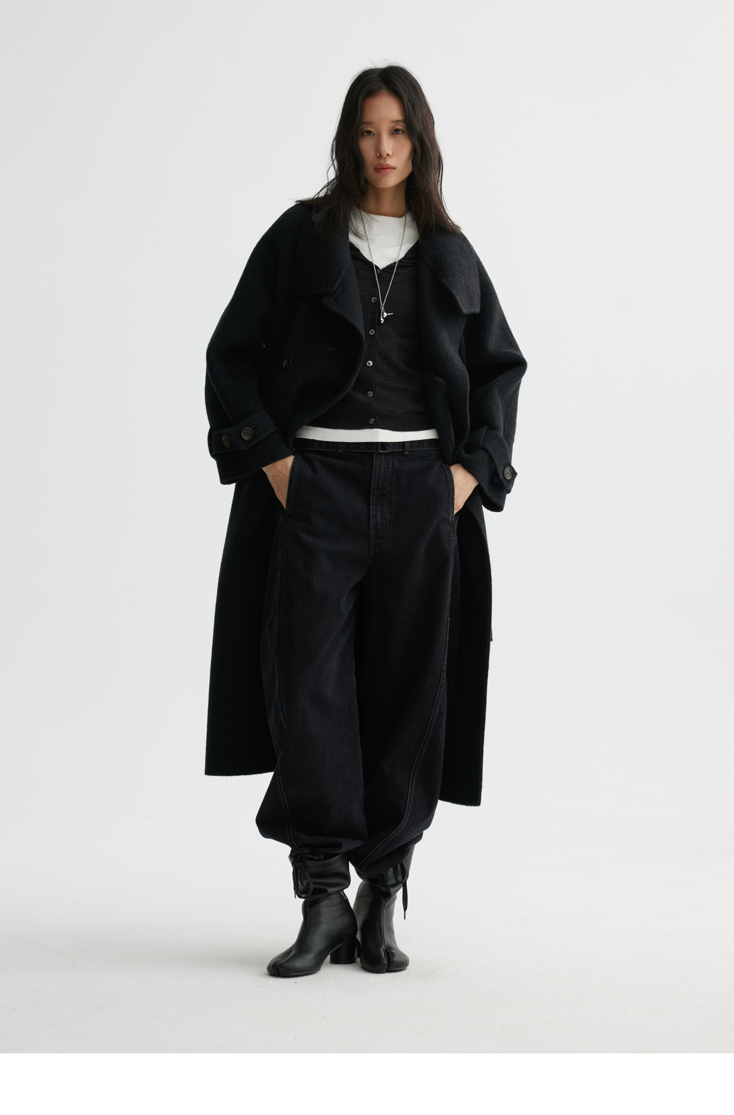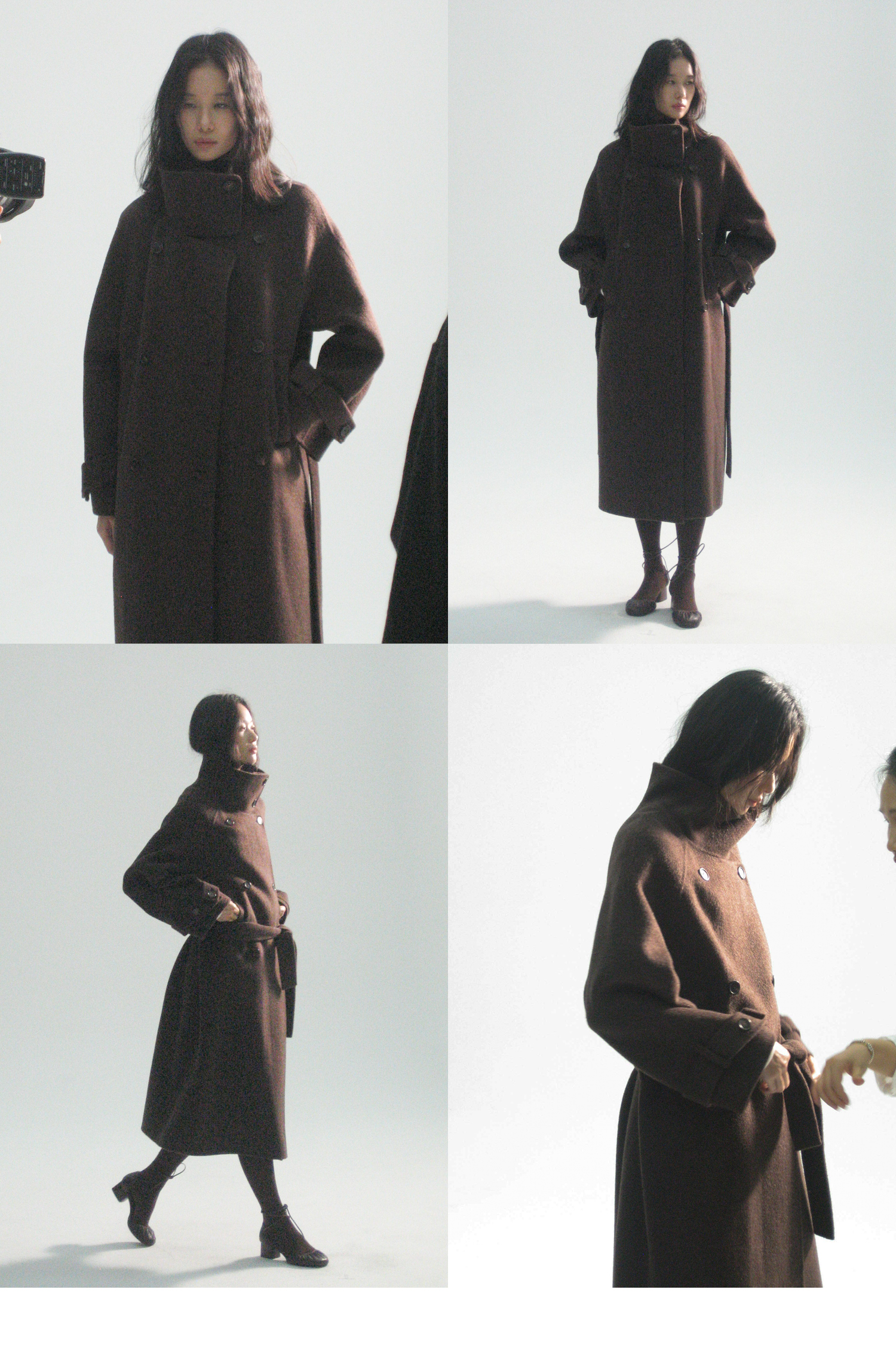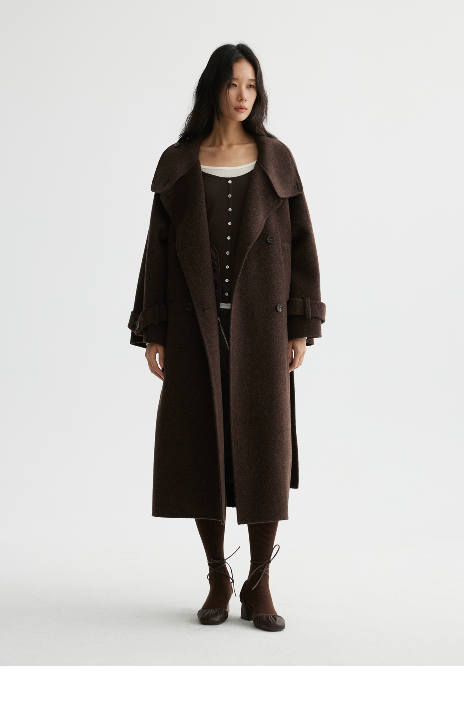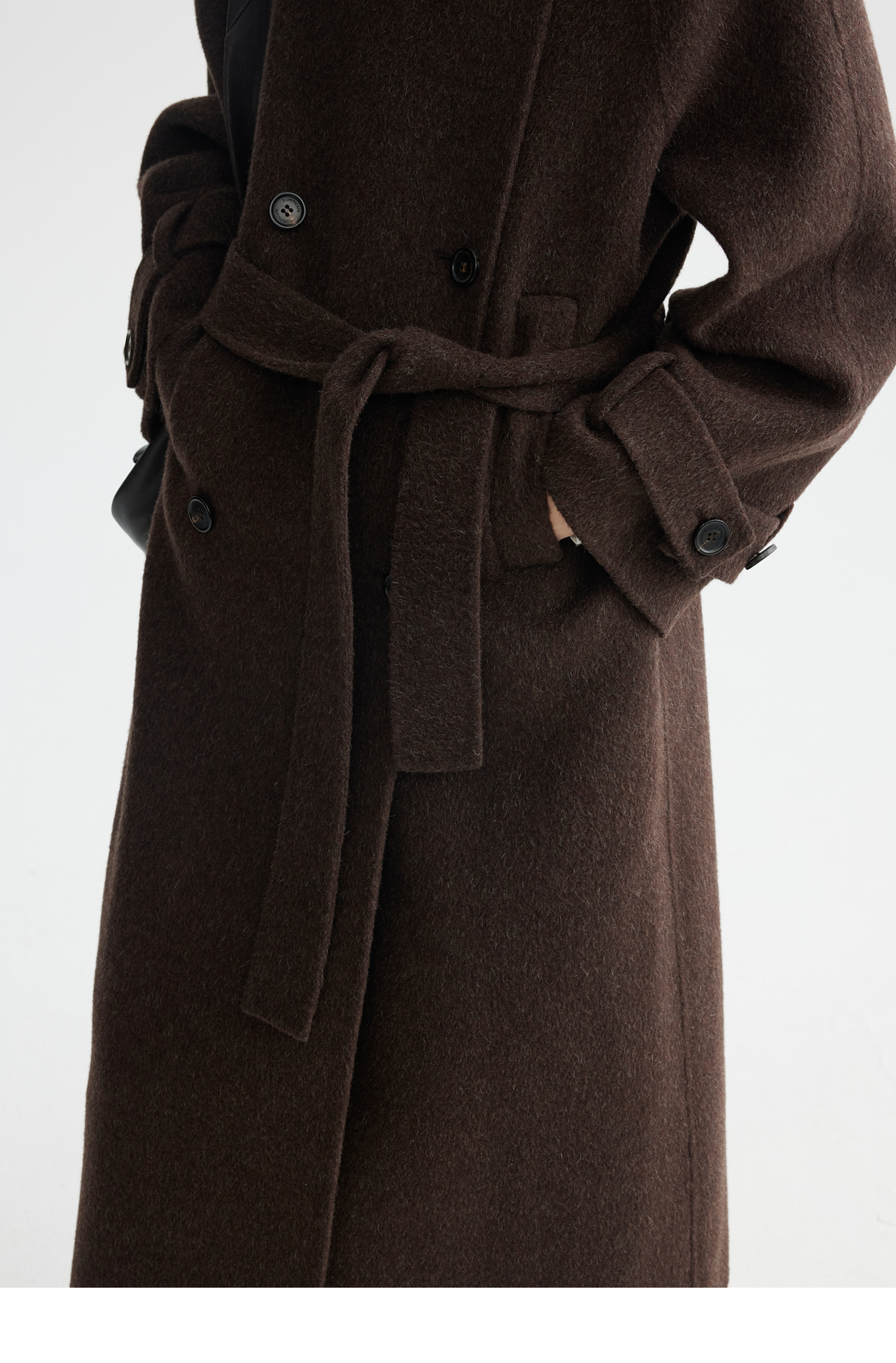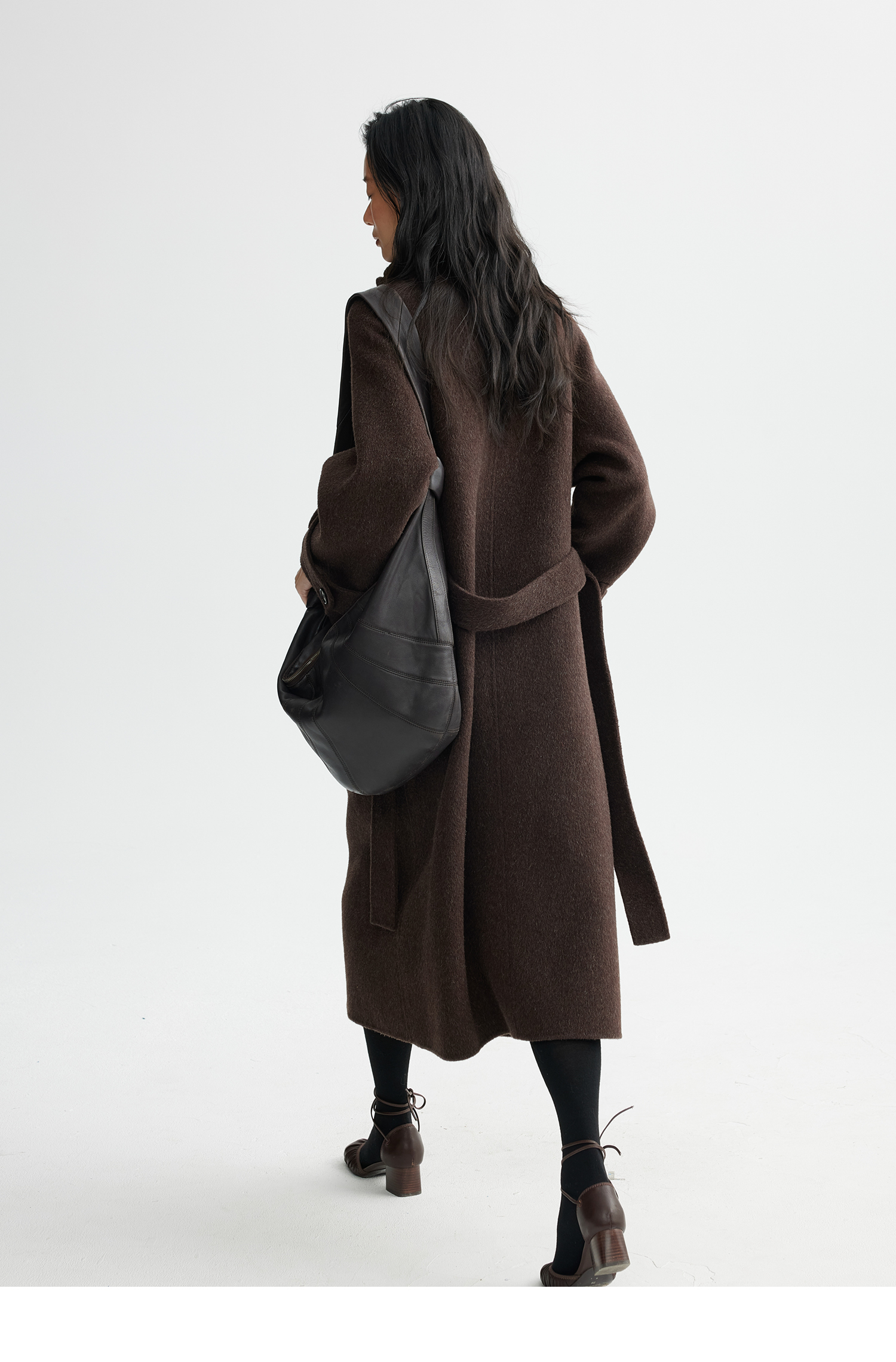 素舶 牦牛绒绵羊毛柔润光泽感双排扣立领长短款双面呢大衣
