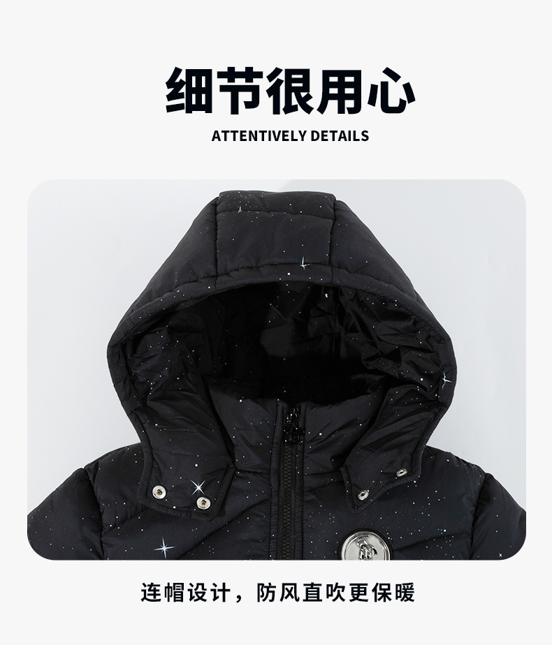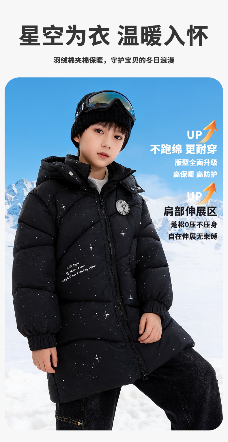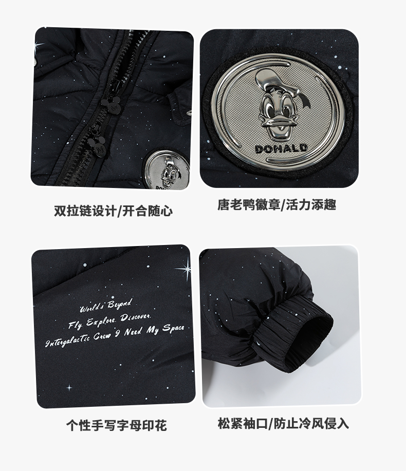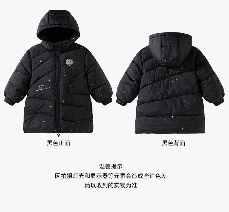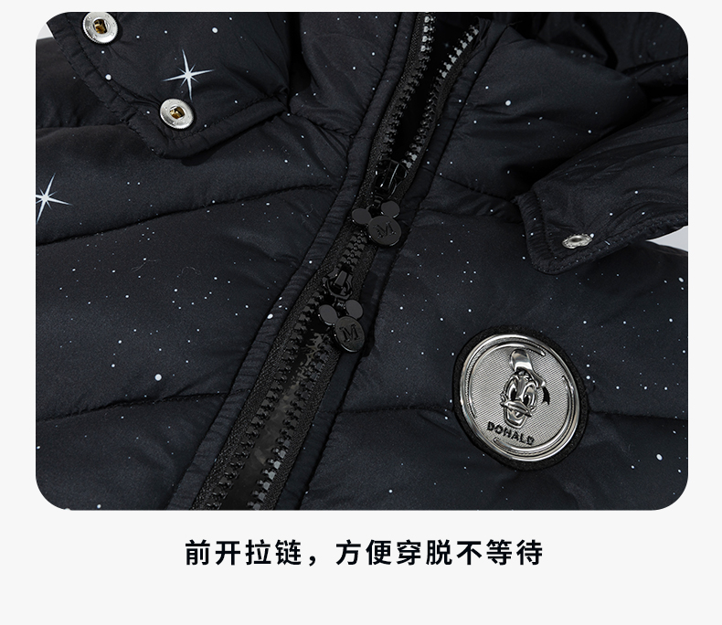 迪士尼(Disney)Baby男童夹棉保暖卡通黑色外穿连帽中长款棉服外套