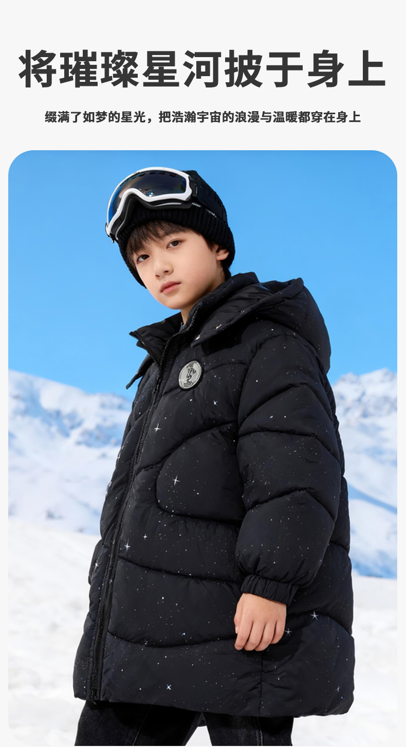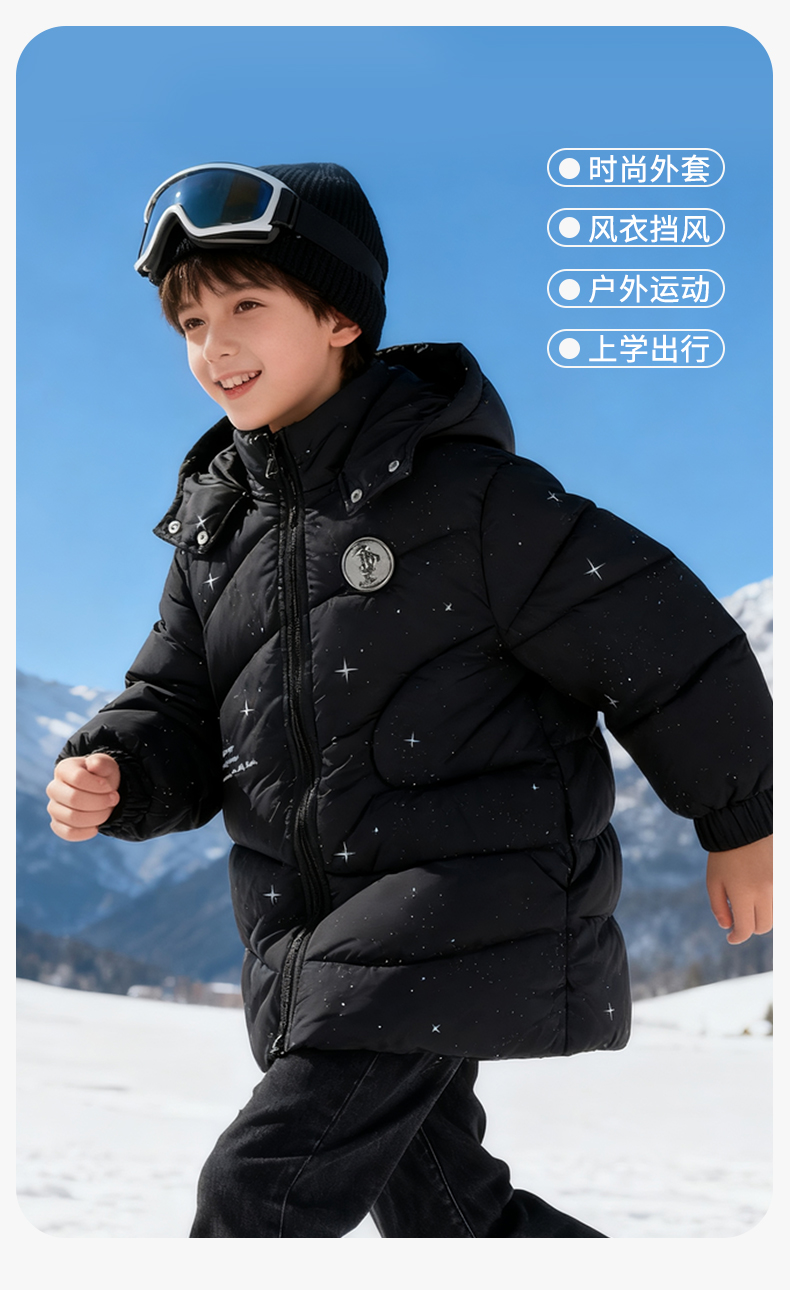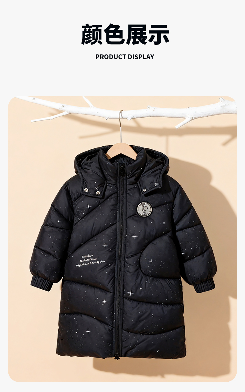 迪士尼(Disney)Baby男童夹棉保暖卡通黑色外穿连帽中长款棉服外套