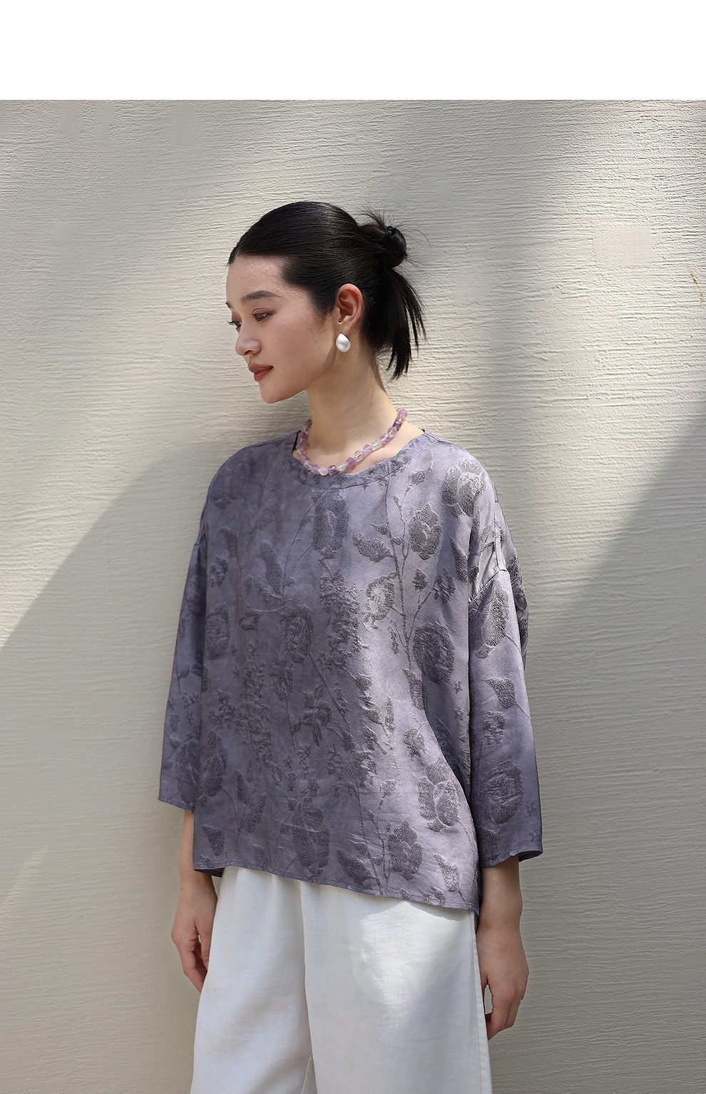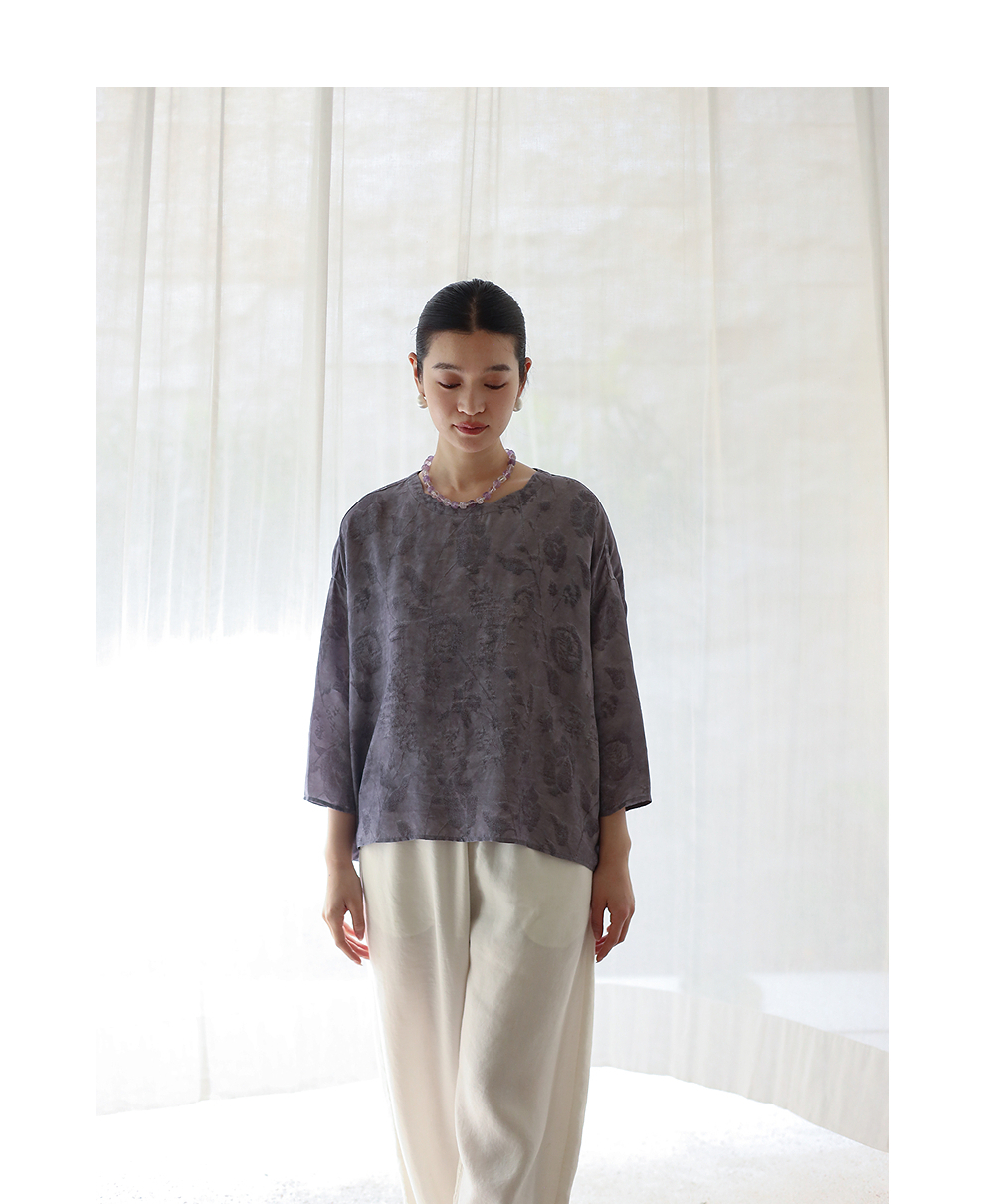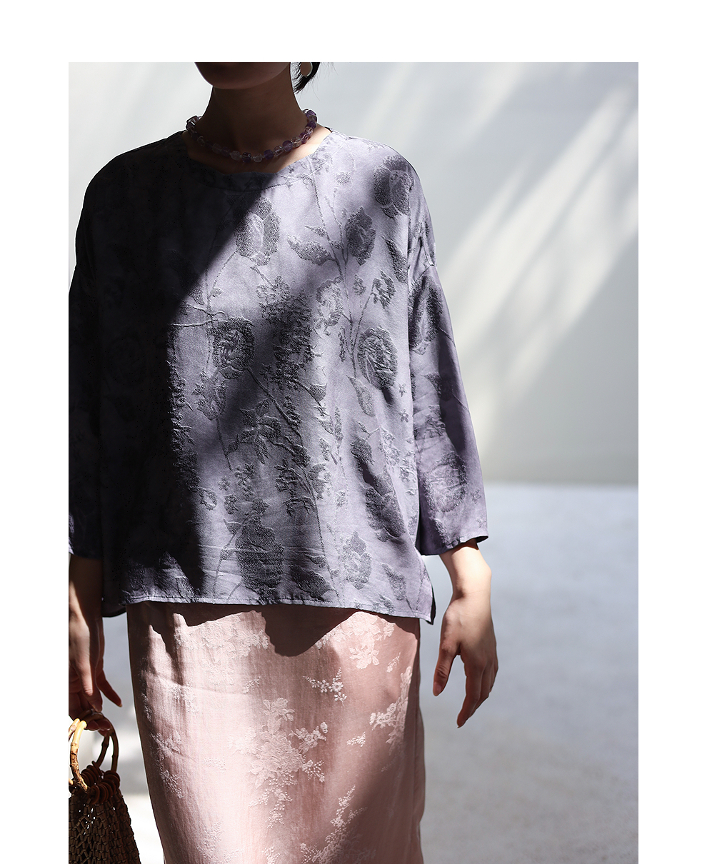 绽放184朵/【宋瓷系列】桑蚕丝柞蚕丝文艺香云纱提花设计感小衫
