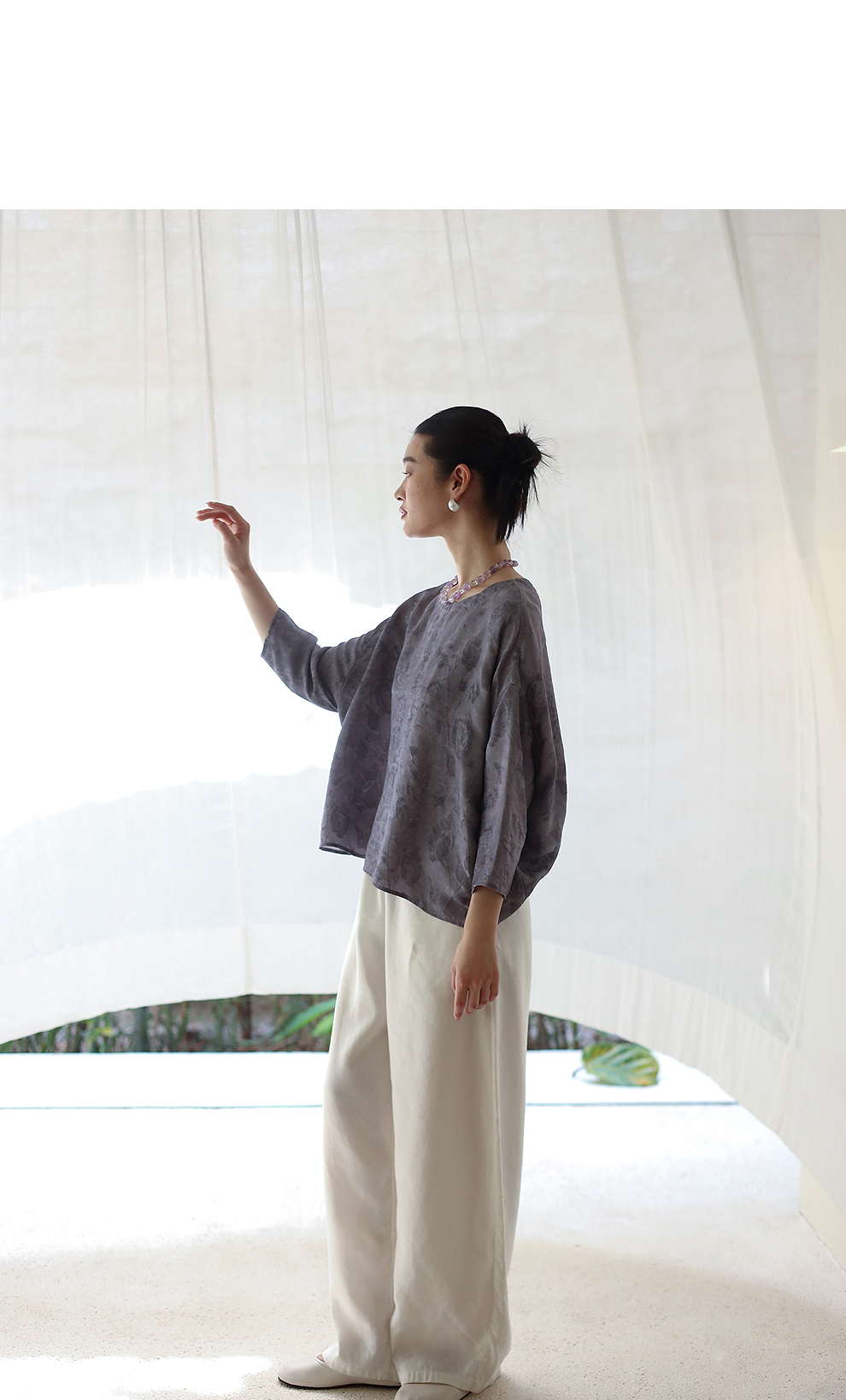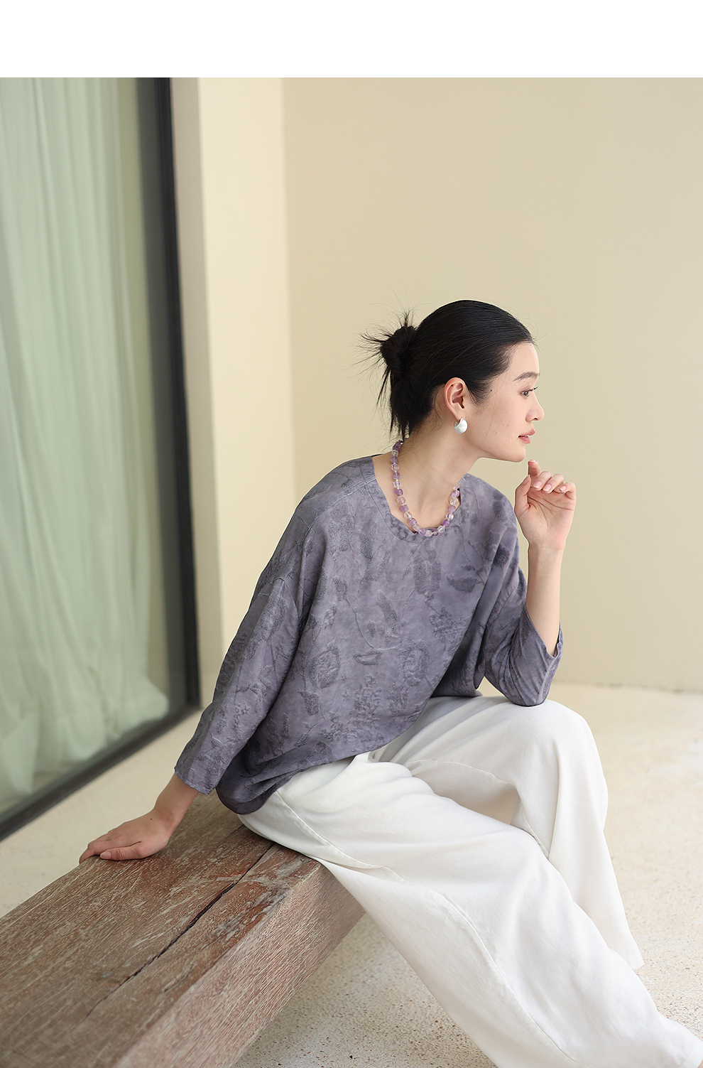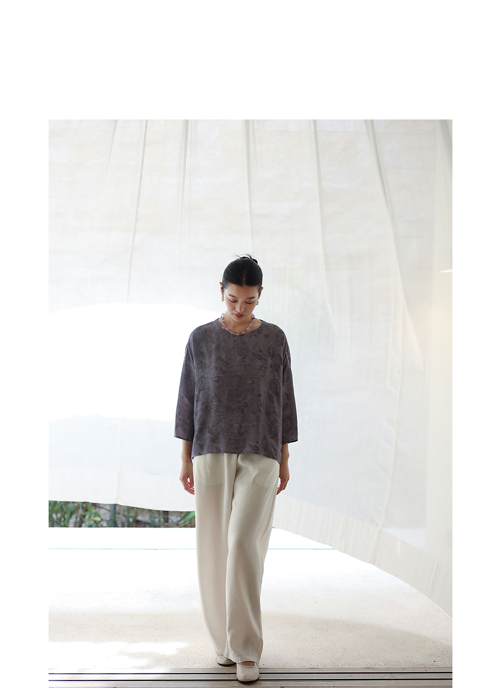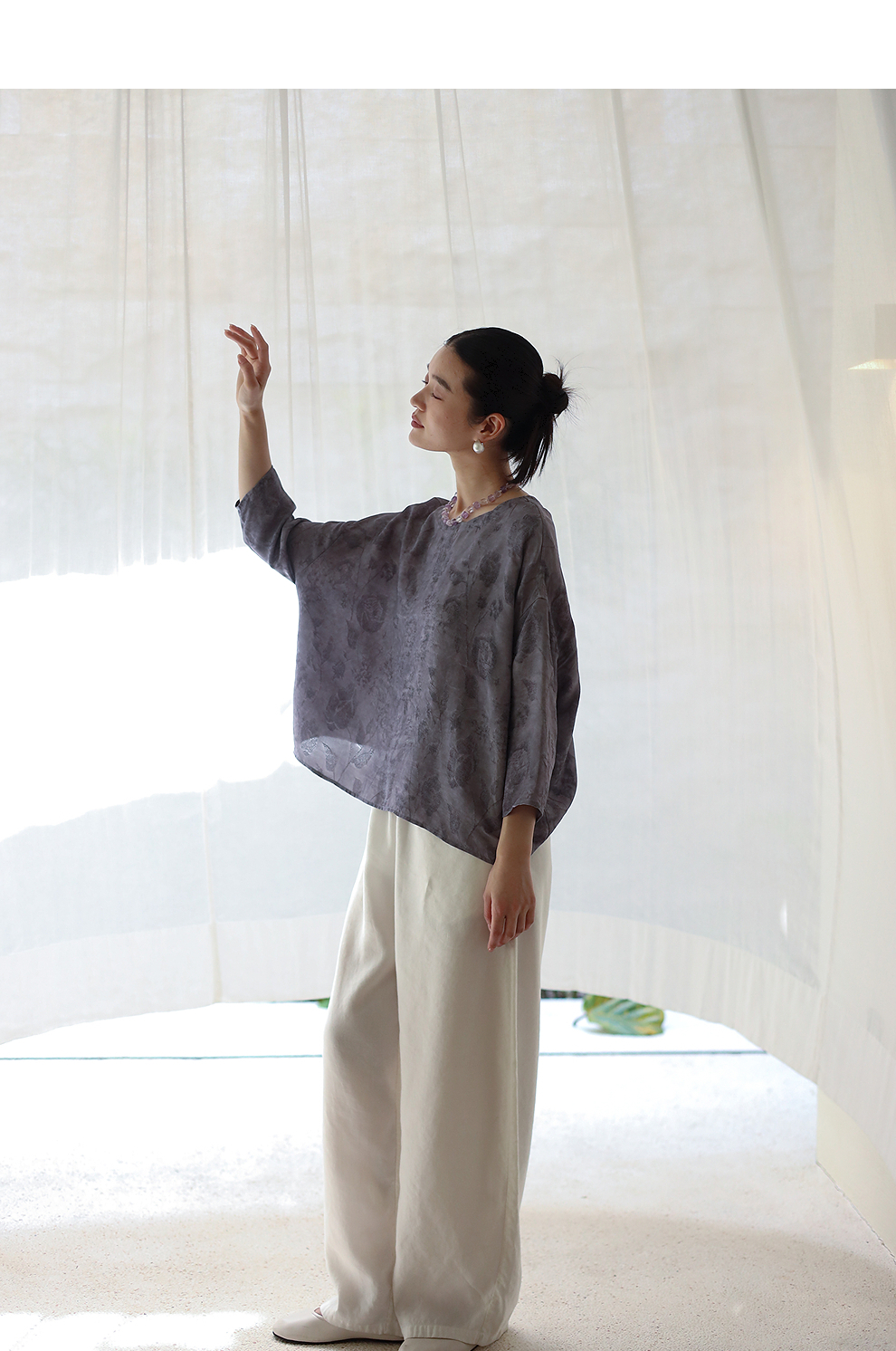 绽放184朵/【宋瓷系列】桑蚕丝柞蚕丝文艺香云纱提花设计感小衫