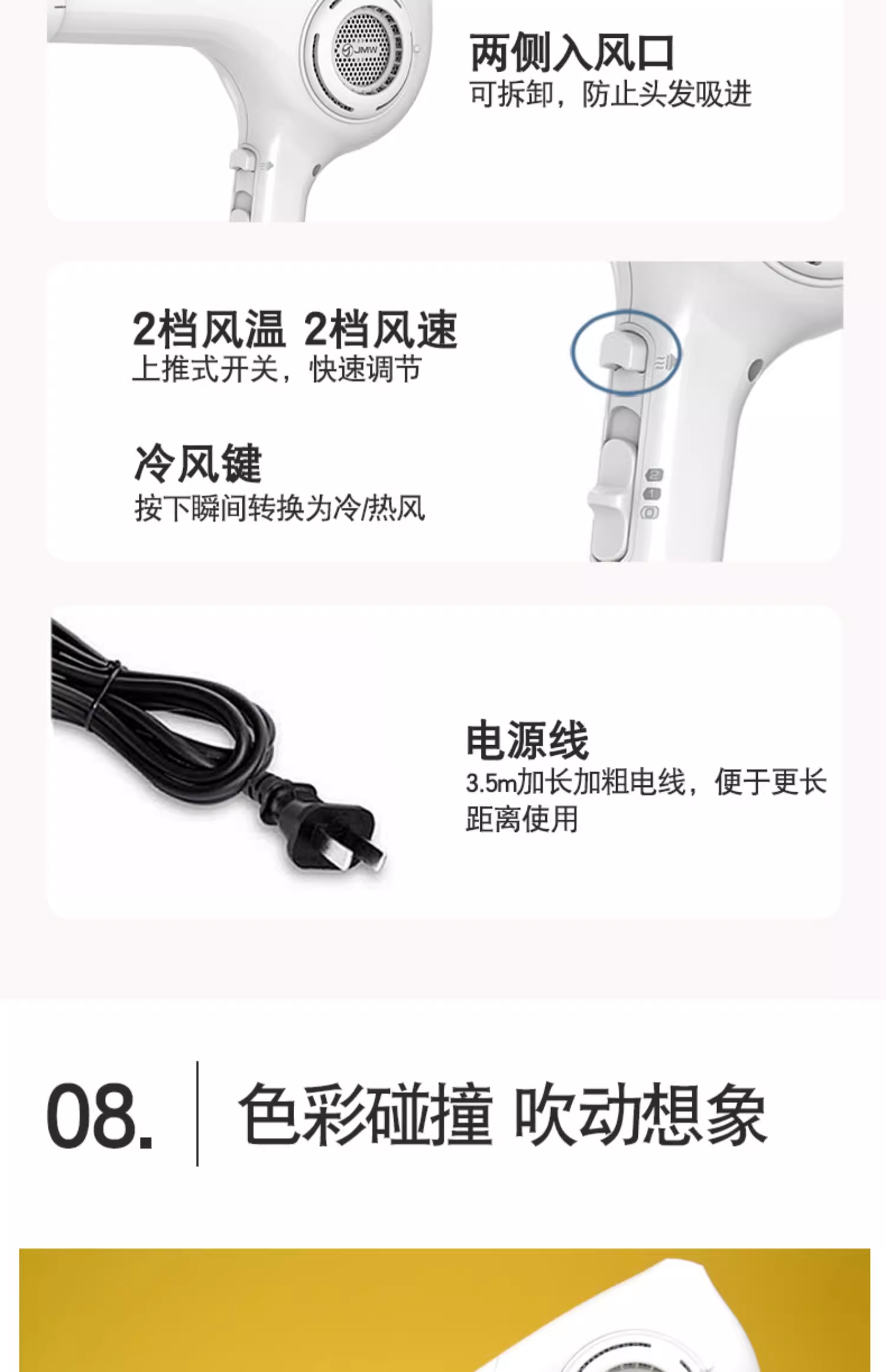 JMW韩国造型吹风机发型师沙龙专用大功率大风力不伤发风筒
