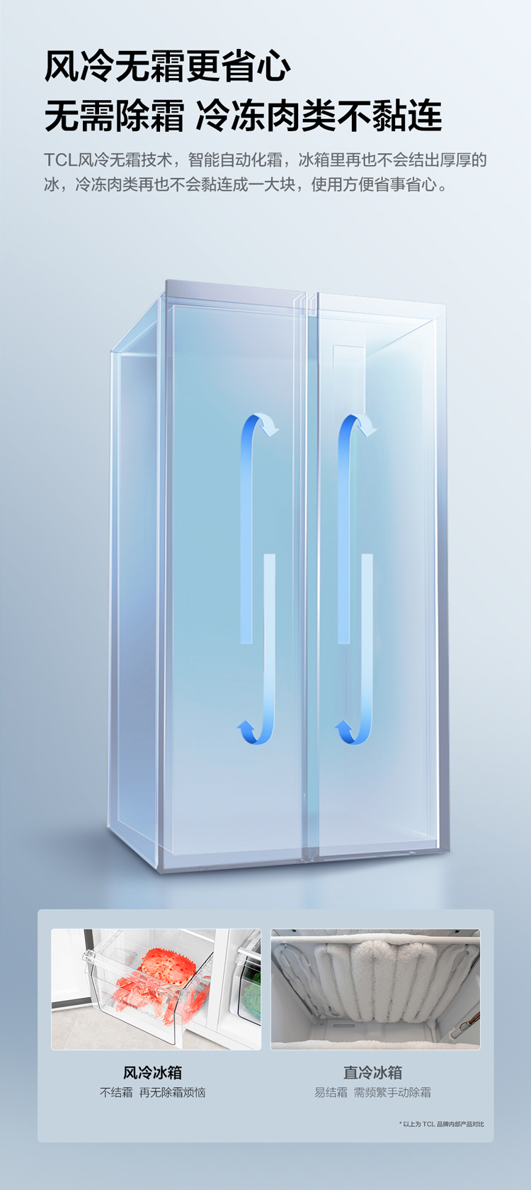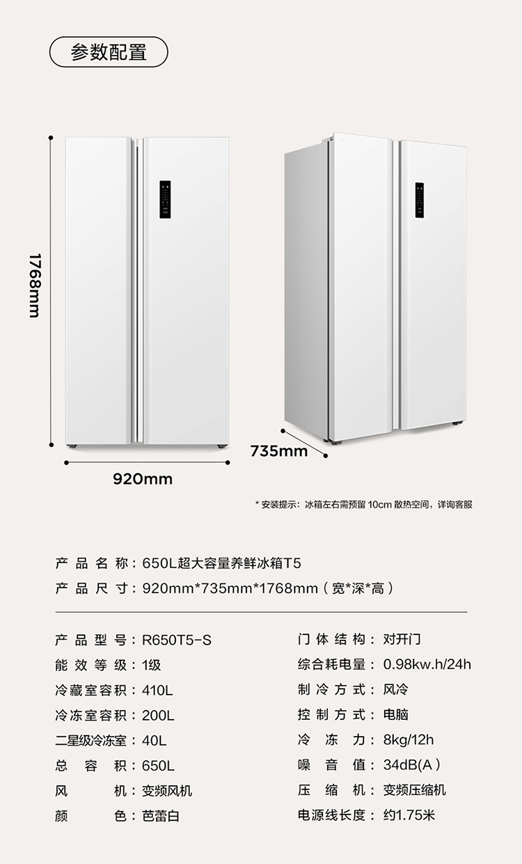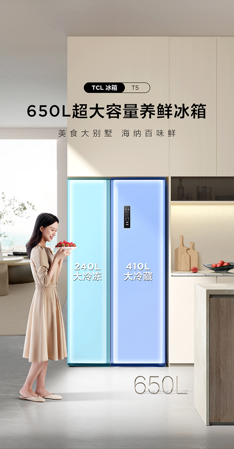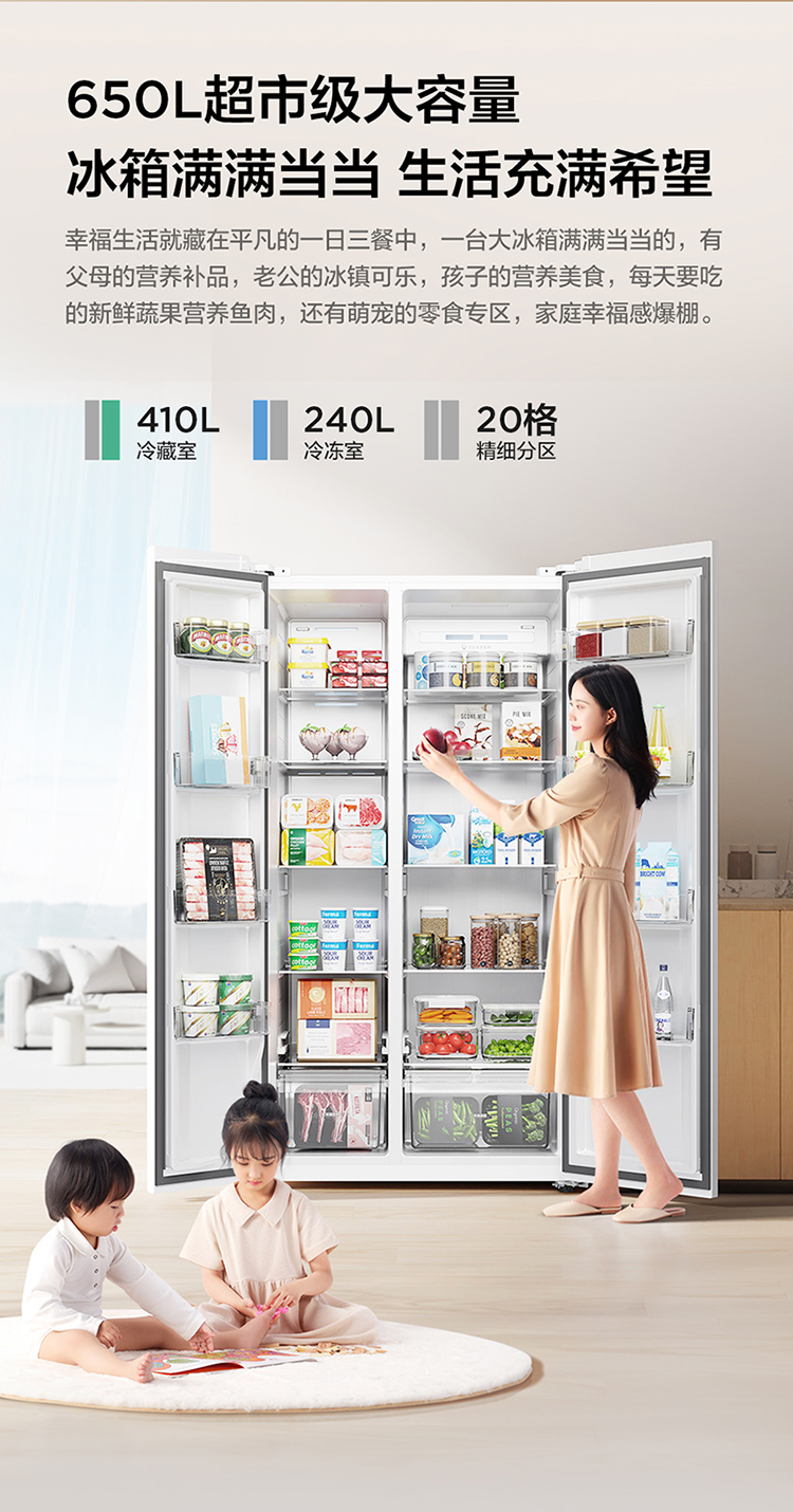TCL 650升对开门双开门大容量大冷冻白色冰箱 双变频一级能效 风冷无霜 R650T5-S