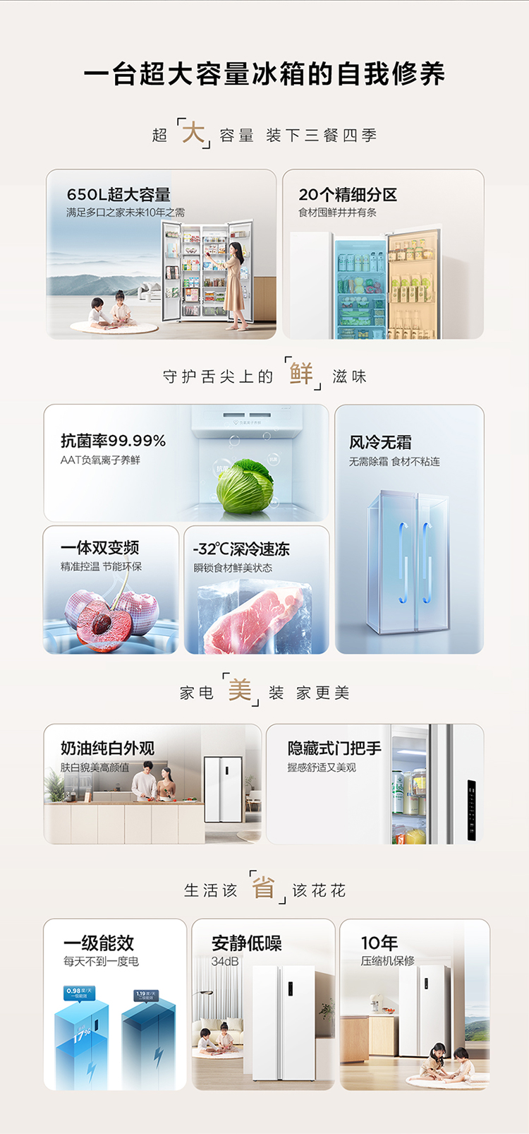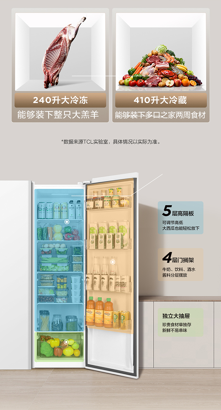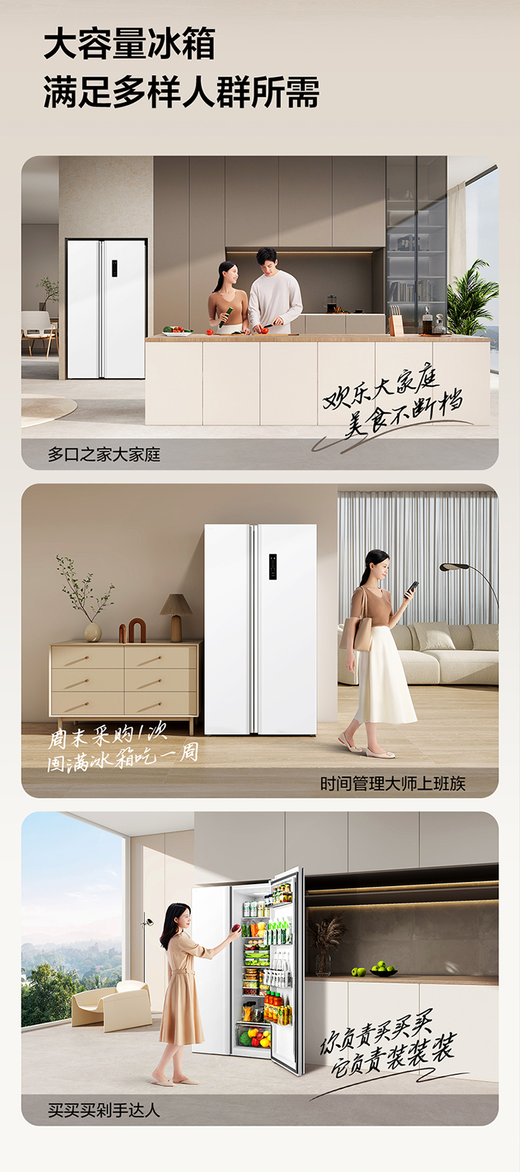 TCL 650升对开门双开门大容量大冷冻白色冰箱 双变频一级能效 风冷无霜 R650T5-S