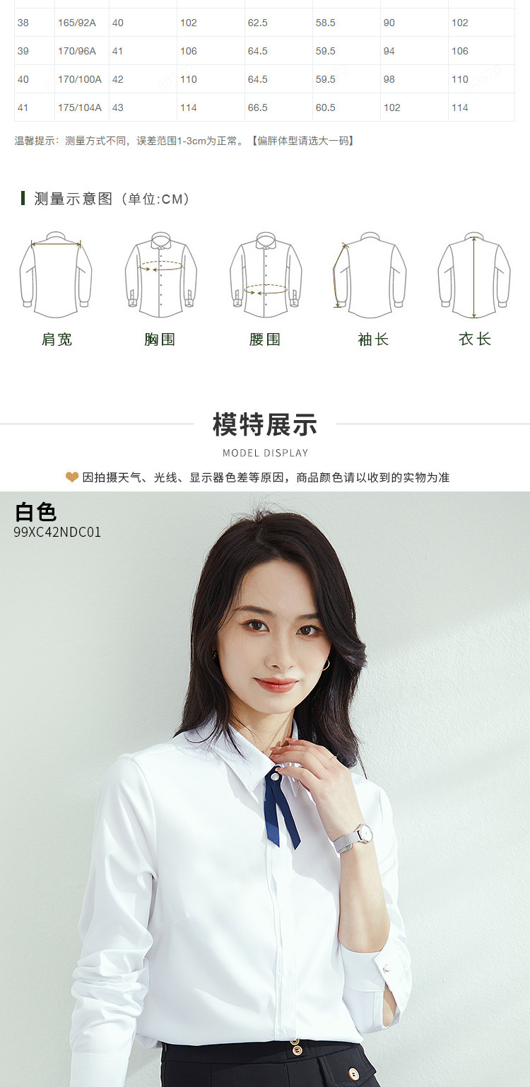 【防油防水防污】罗蒙春夏长袖衬衫女士正装商务通勤职业装防油防污衬衣