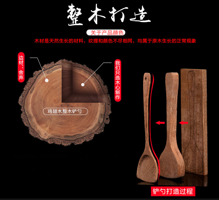 鸡翅木 锅铲 饭勺 大汤勺 不粘锅耐高温