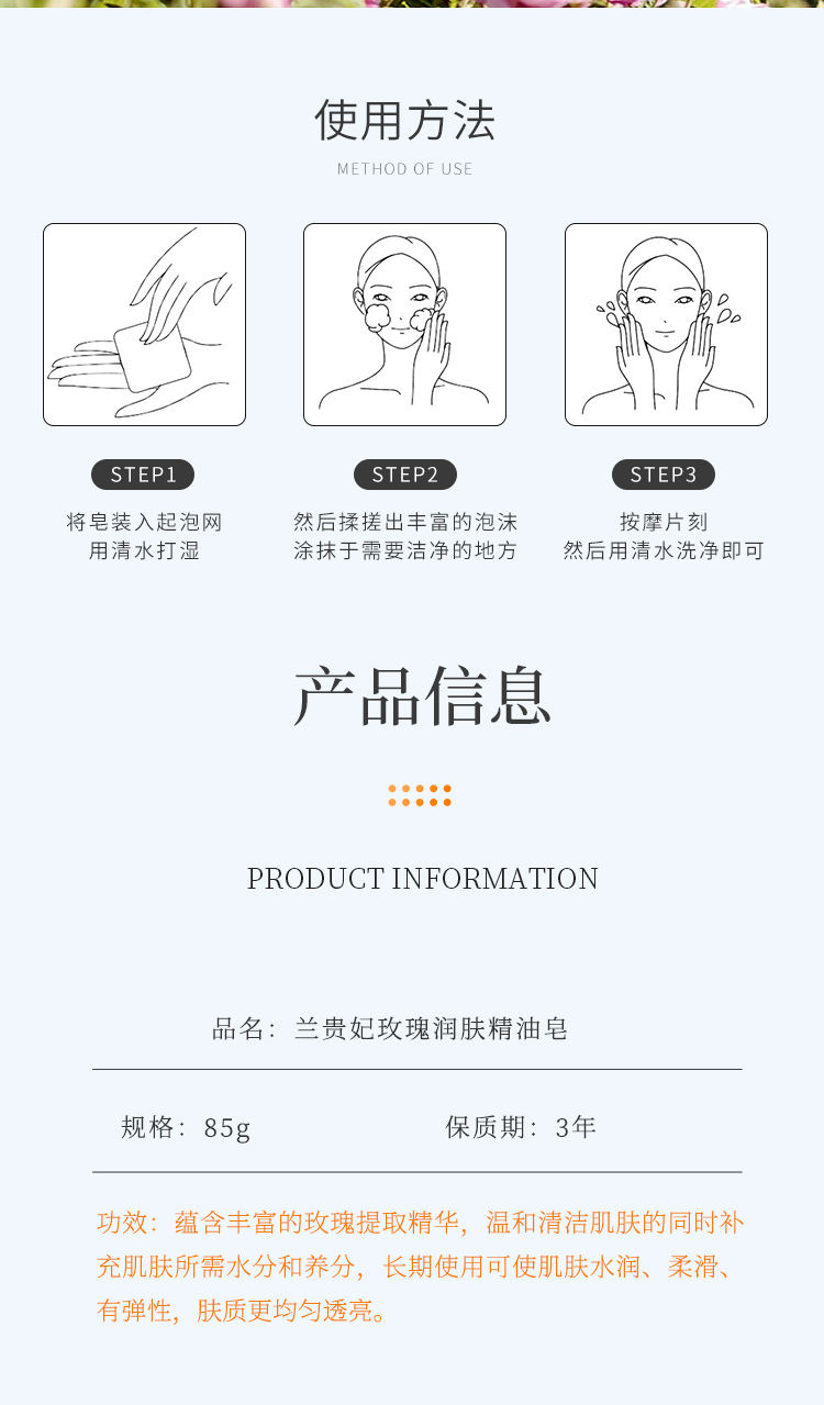兰贵妃玫瑰润肤精油皂85g