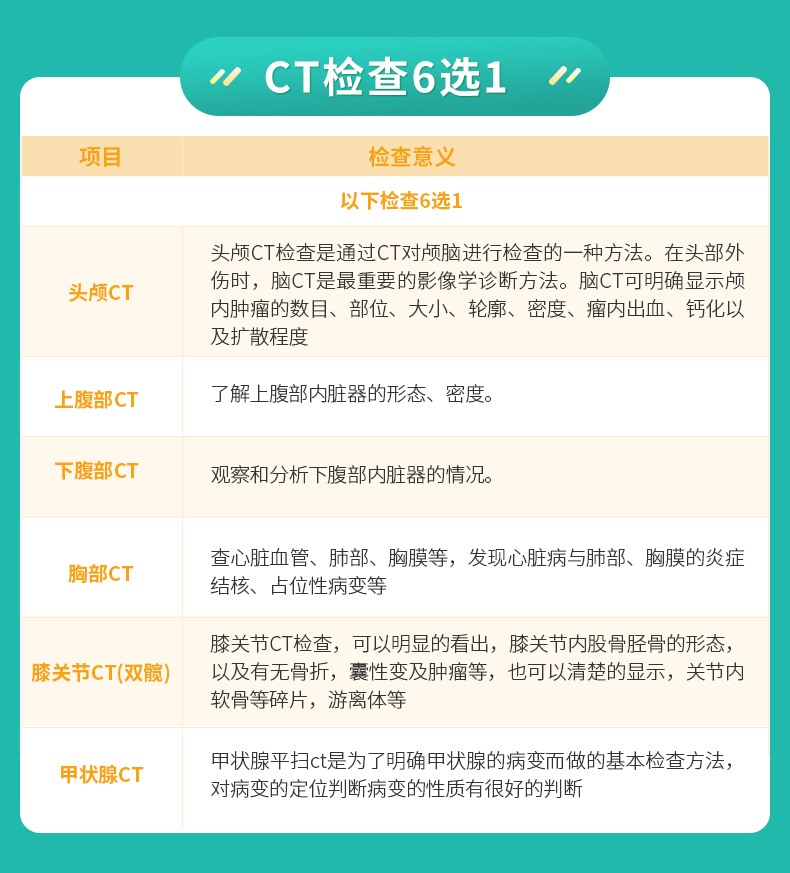 CT检查6选1( 头颅/腹部/胸部/膝关节/甲状腺/)-远东罗湖院区-体检科