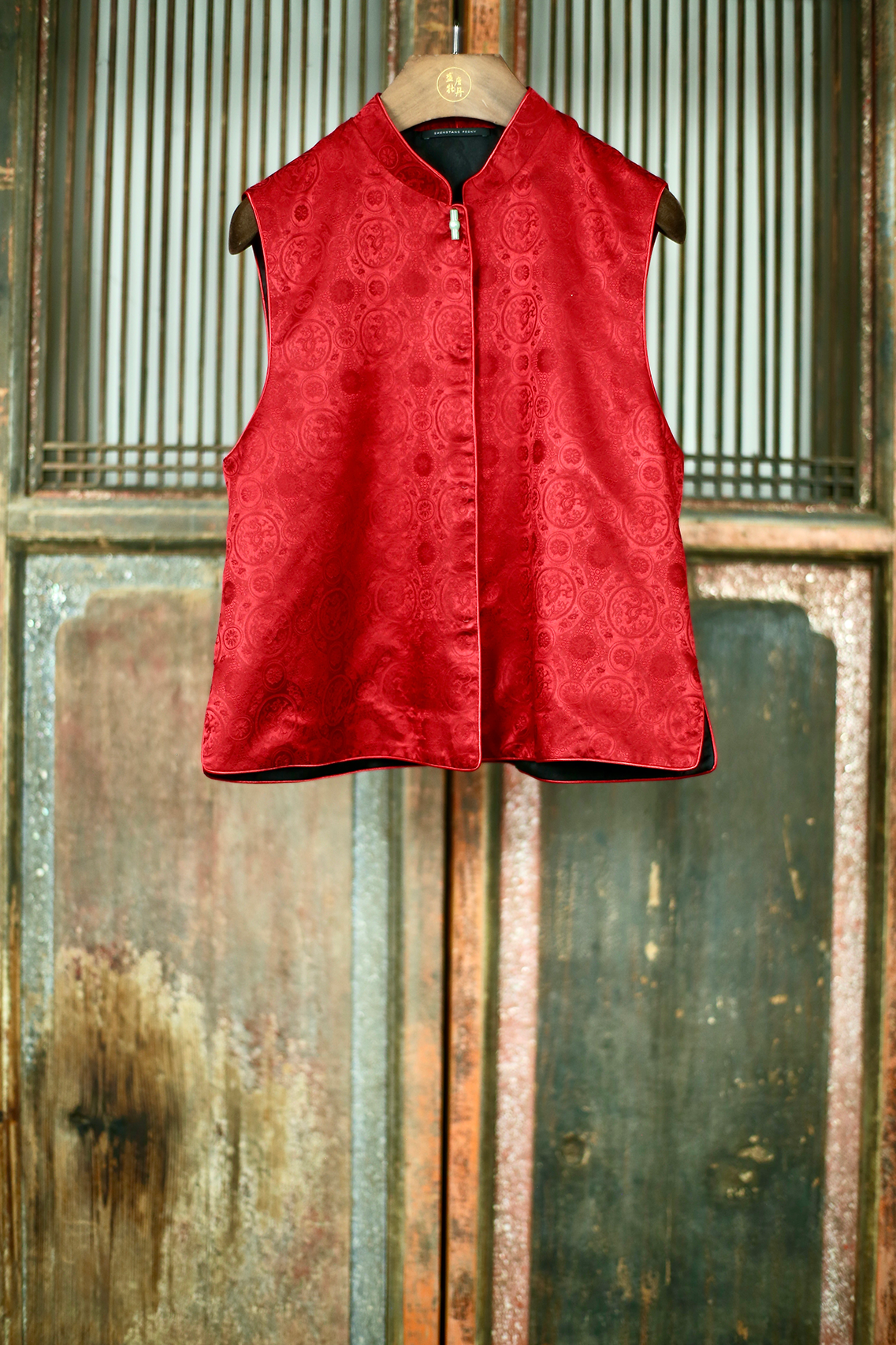 盛唐牡丹 | 龙纹真丝提花对襟马甲-夹棉