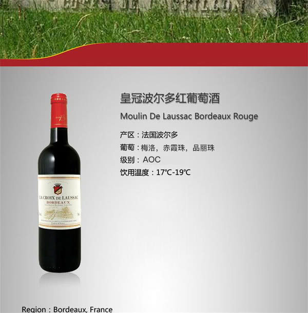 MM 山姆 LA CROIX DE LAUSSAC 皇冠 法国进口 波尔多红葡萄酒 750ml