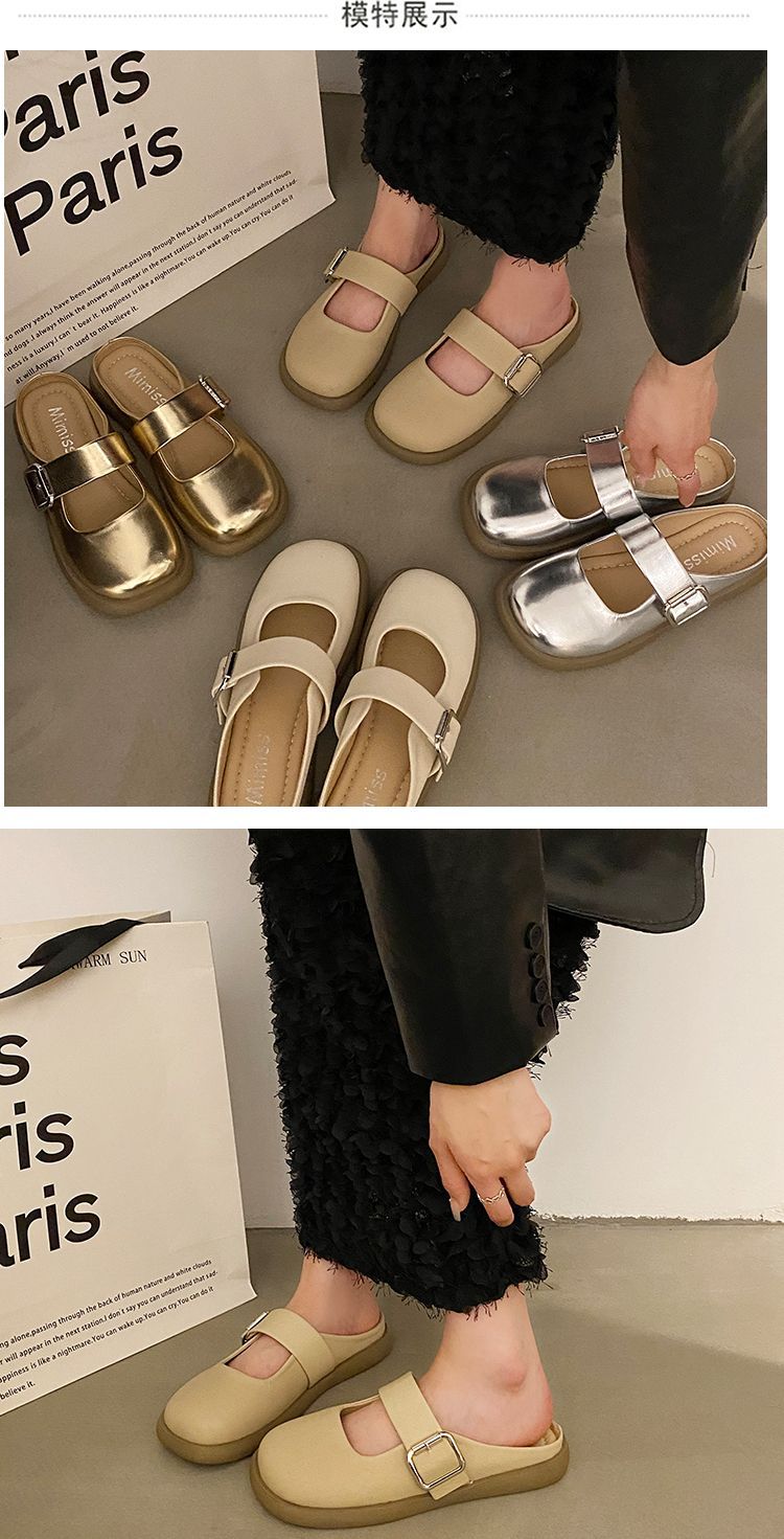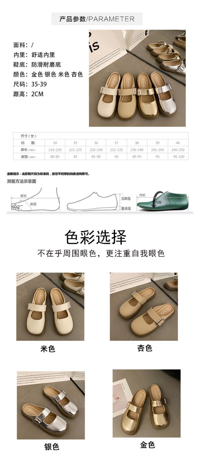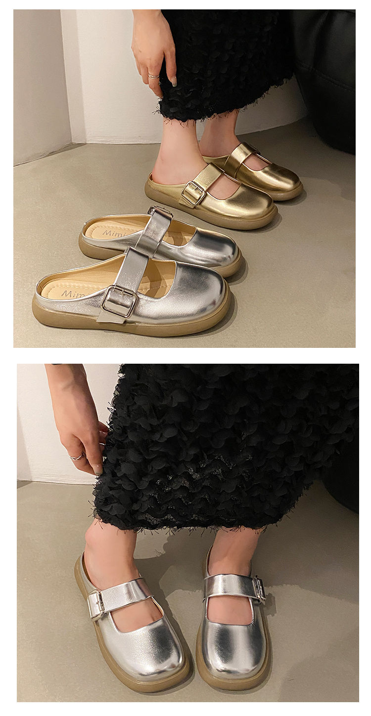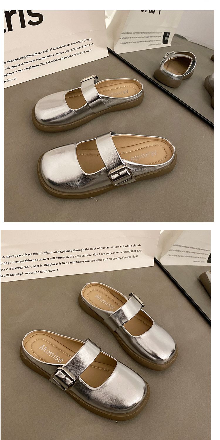 【法式高级感❗️软软超好穿半拖鞋】百搭不挑人,超显气质,复古银色女新款软底平底一脚蹬包头拖鞋女夏季外穿