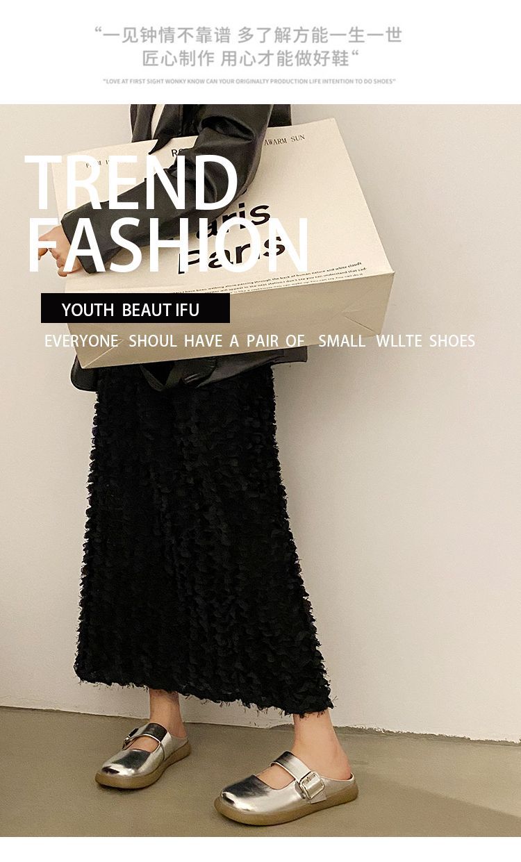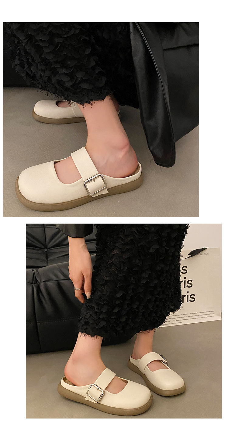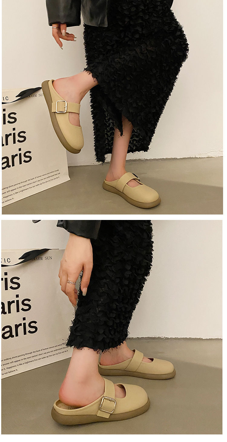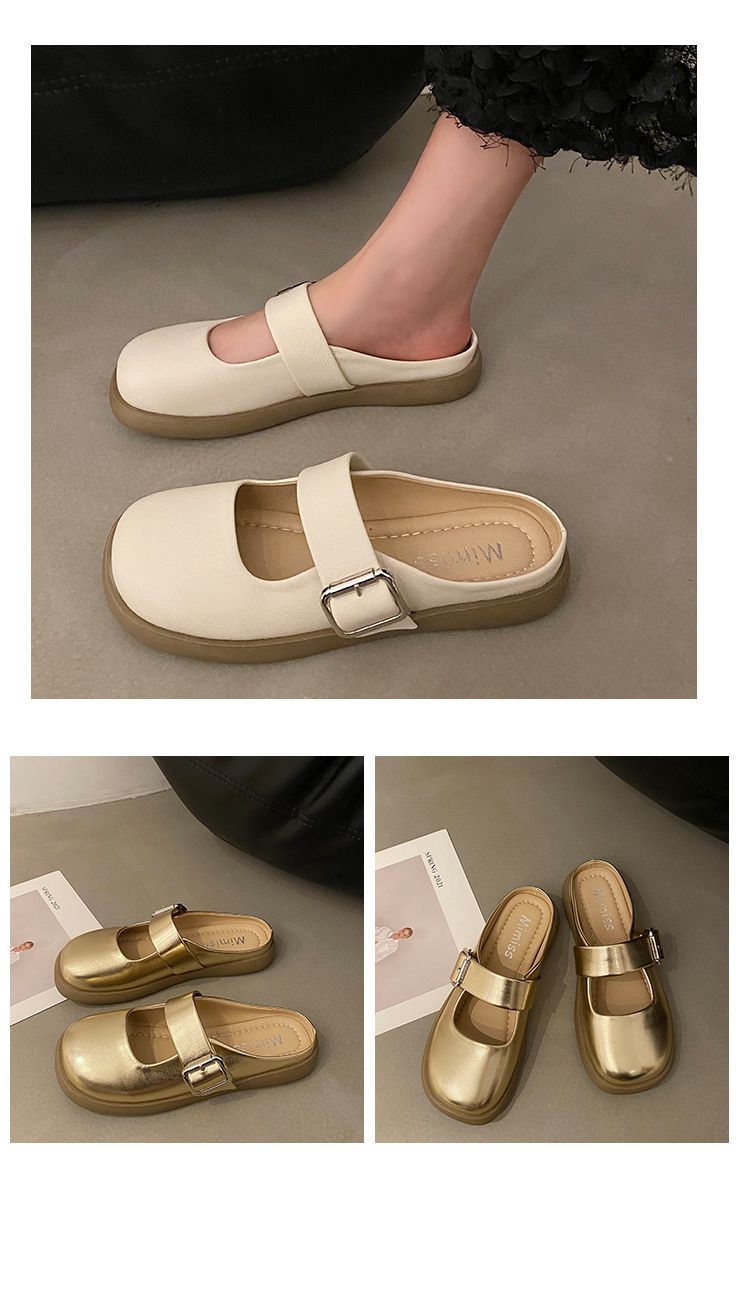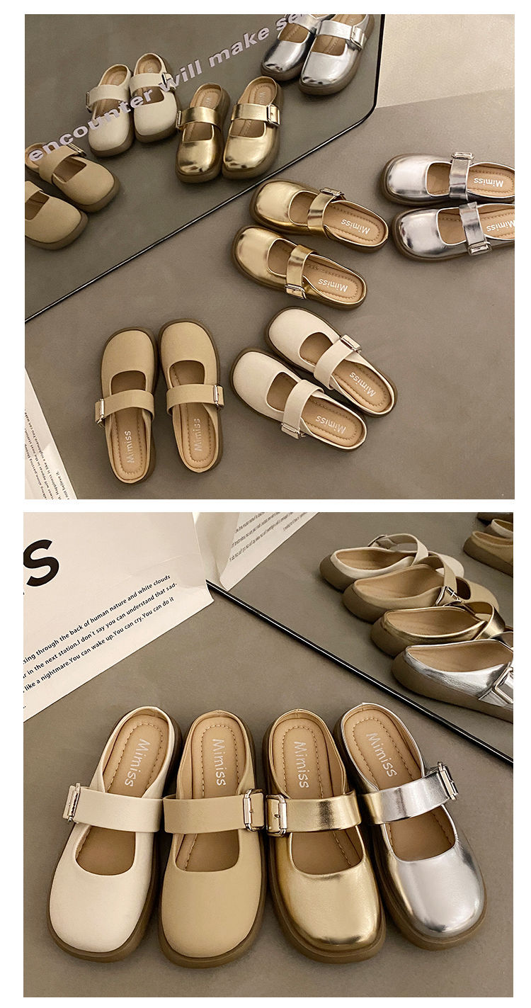 【法式高级感❗️软软超好穿半拖鞋】百搭不挑人,超显气质,复古银色女新款软底平底一脚蹬包头拖鞋女夏季外穿