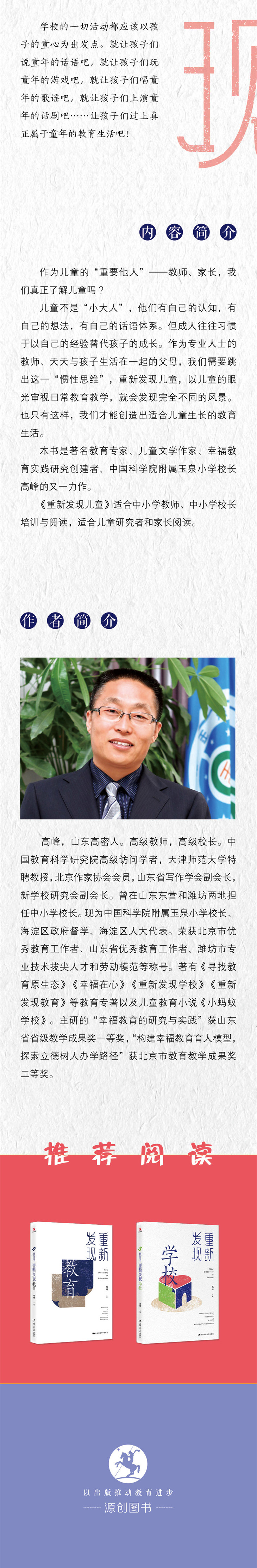 《重新发现儿童》适合中小学教师、中小学校长培训与阅读,适合儿童研究者和家长阅读。