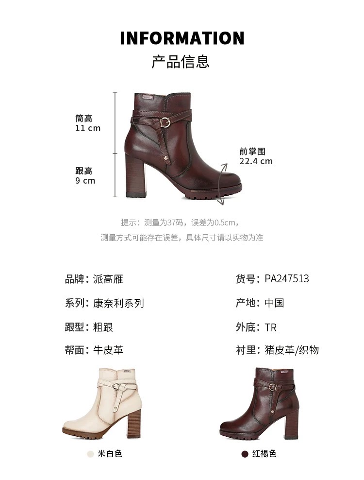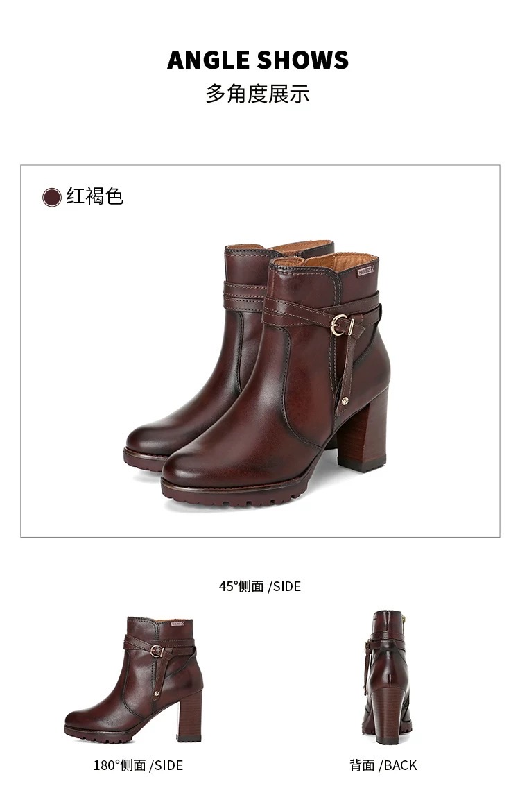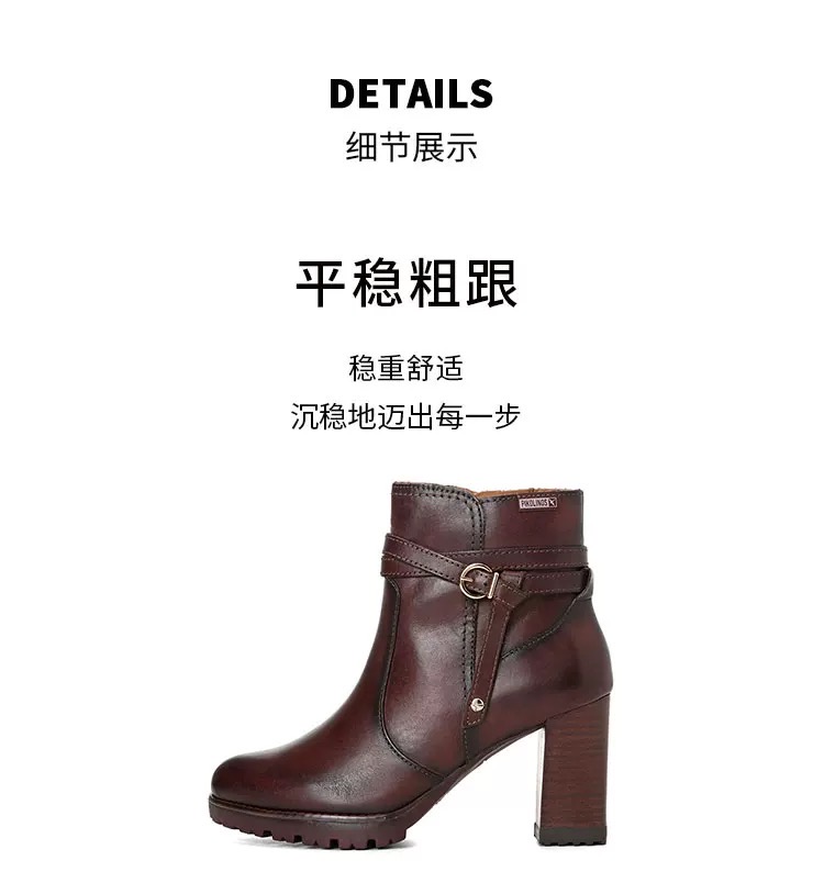 【云粉节】BF楼Pikolinos派高雁24年冬季牛皮高跟侧拉链踝靴PA247513.吊牌价2980