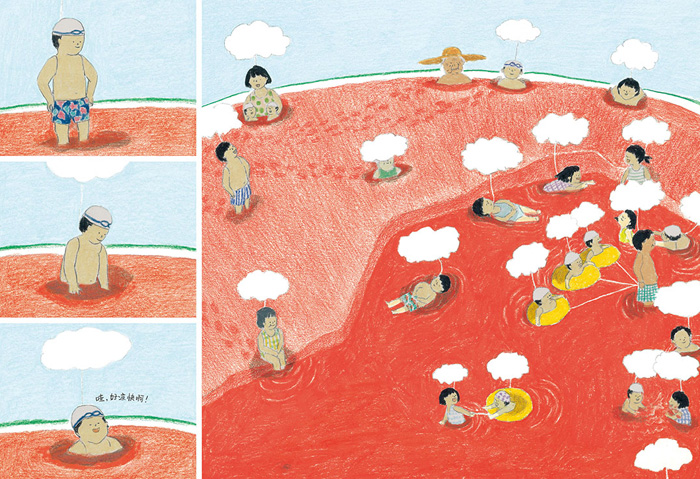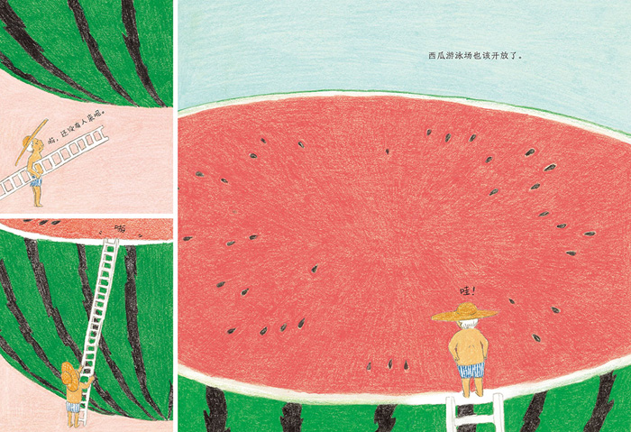 《西瓜游泳场》是广西师大出版社魔法象图画书王国推出的作品之一。