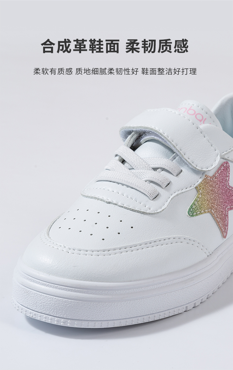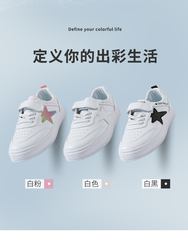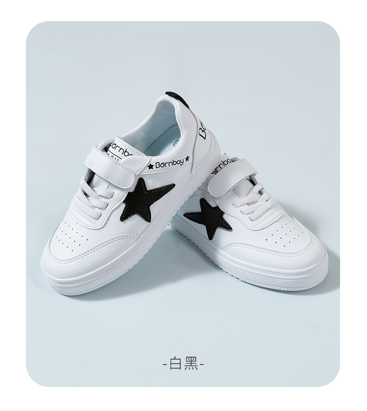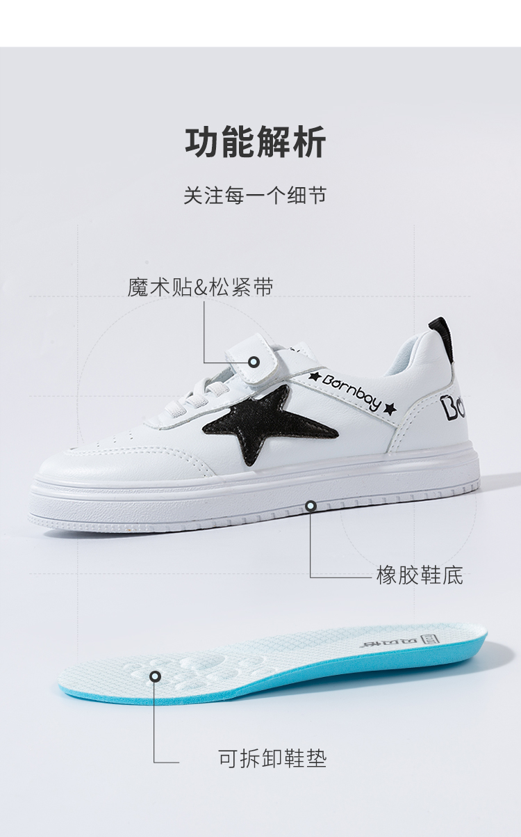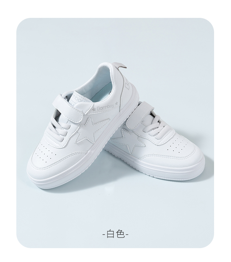 贝贝怡秋季男童运动鞋子儿童小白鞋女童休闲白色小学生板鞋223X399