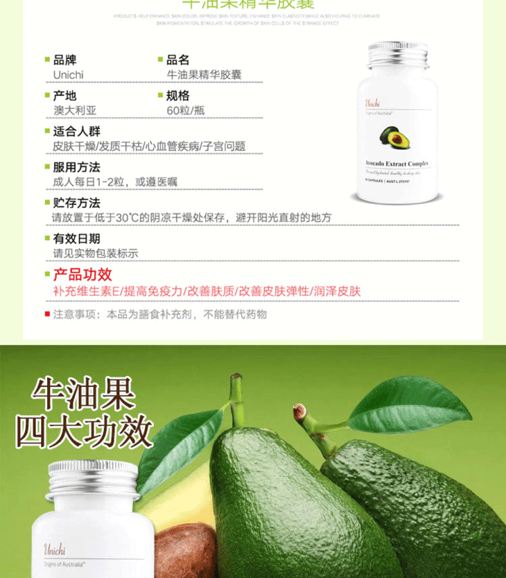 (永久下架)澳洲Unichi 牛油果精华胶囊 60粒
