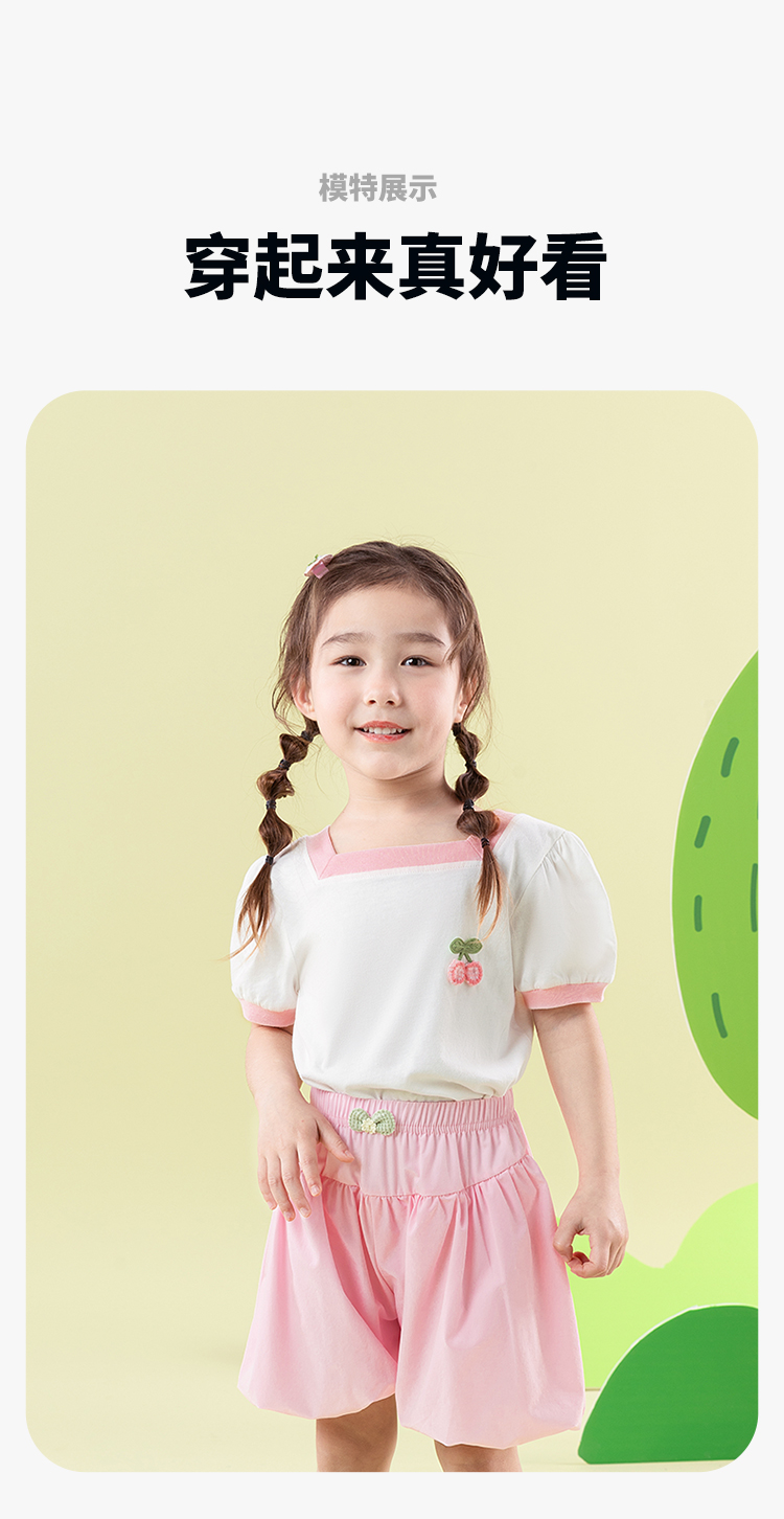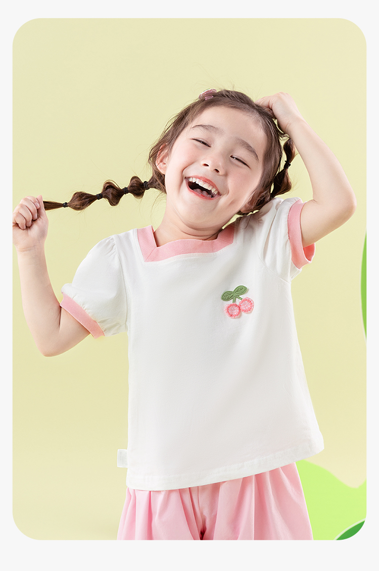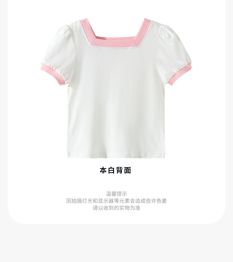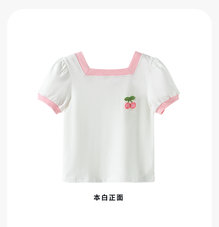 贝贝怡女童短袖2025夏季薄款休闲透气方领纯棉t恤女ZB2ES011