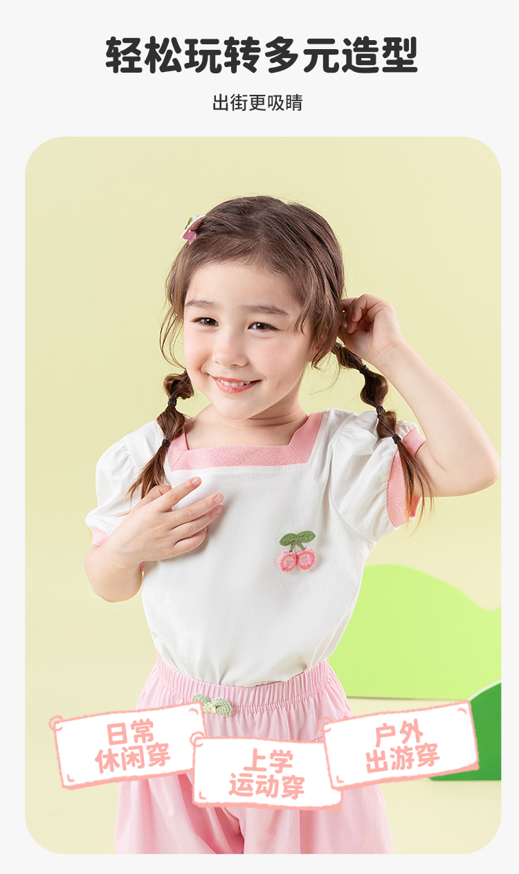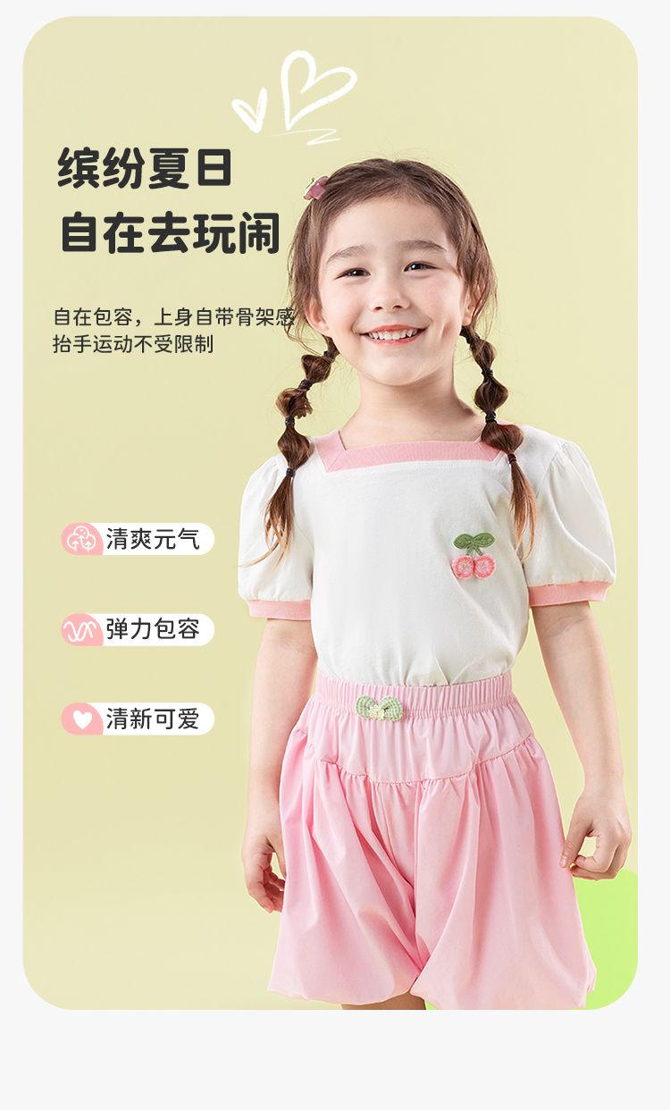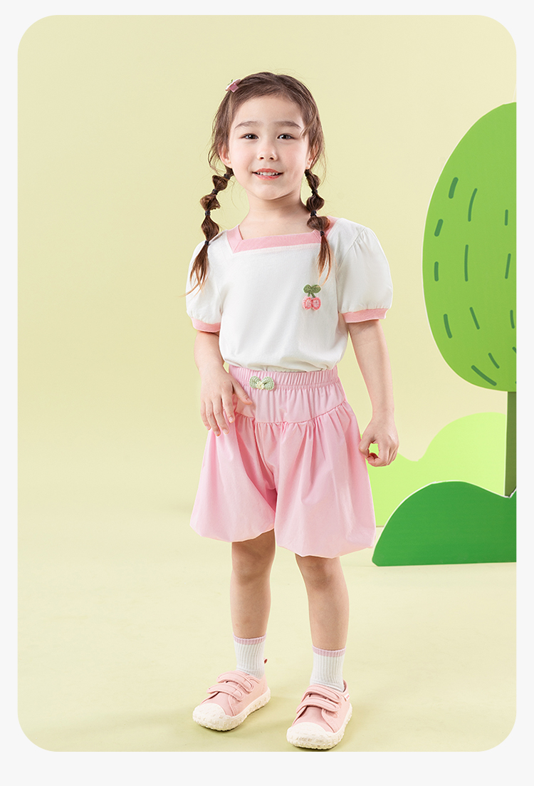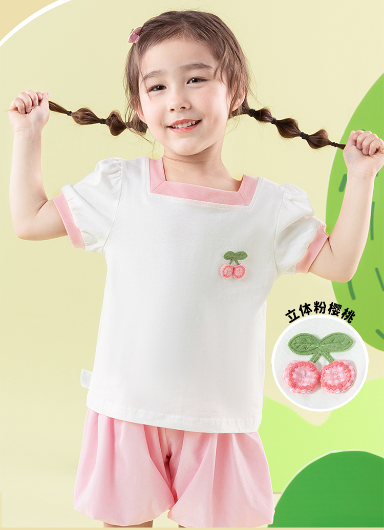贝贝怡女童短袖2025夏季薄款休闲透气方领纯棉t恤女ZB2ES011