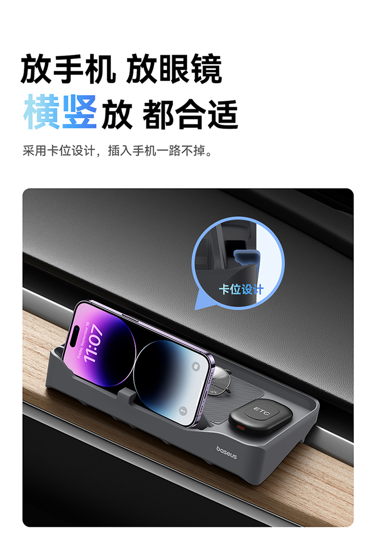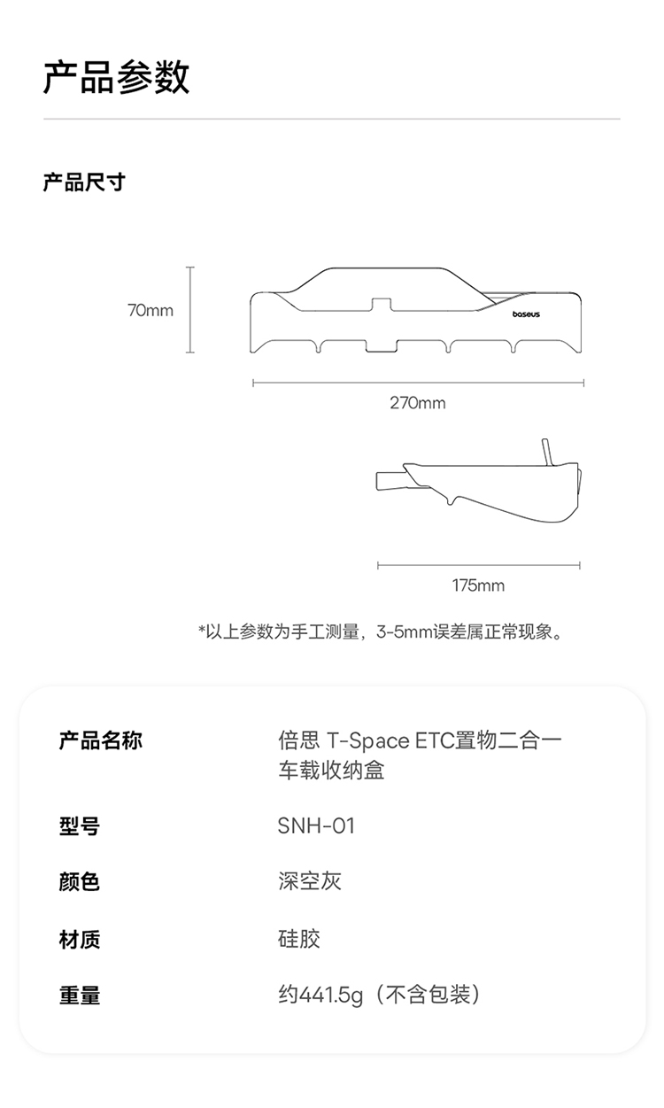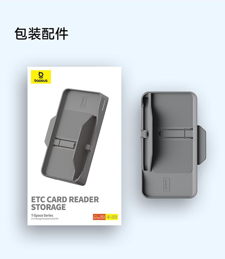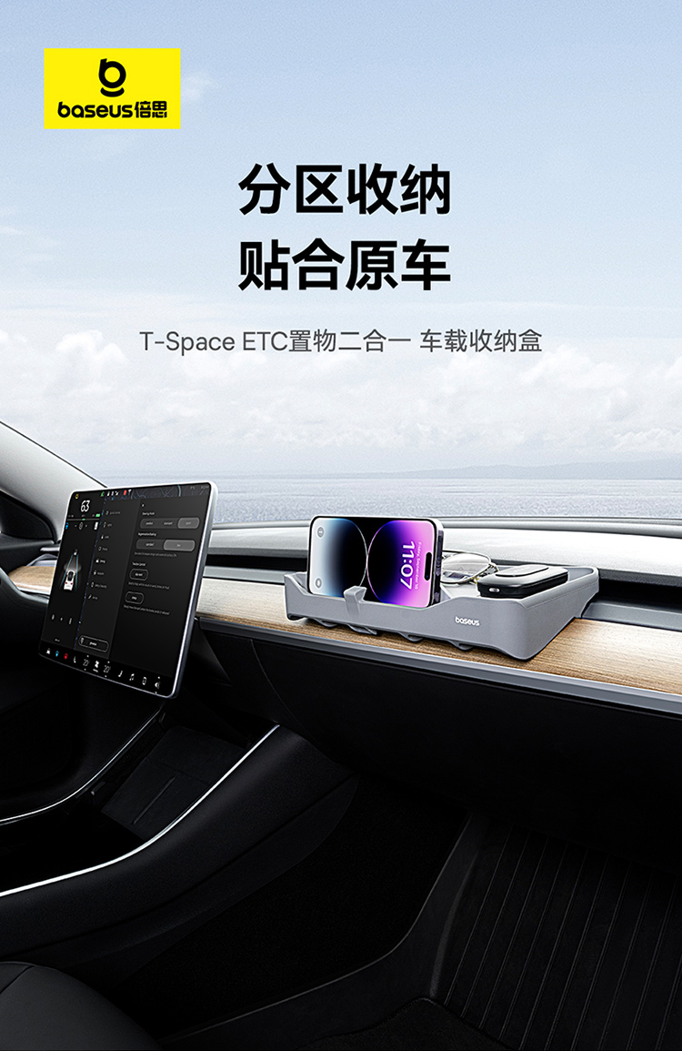 倍思 T-Space ETC置物二合一车载收纳盒 深空灰(含:ETC读卡器固定磁吸片*2)