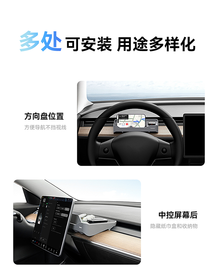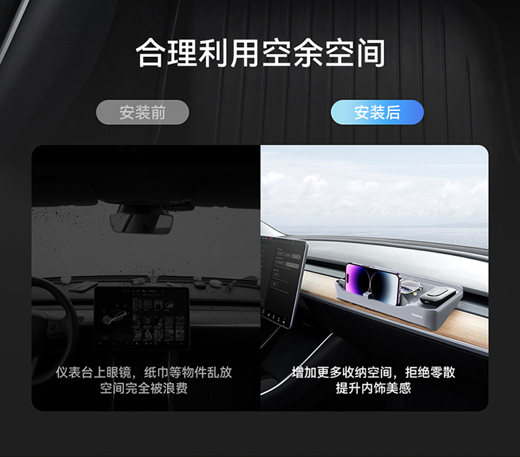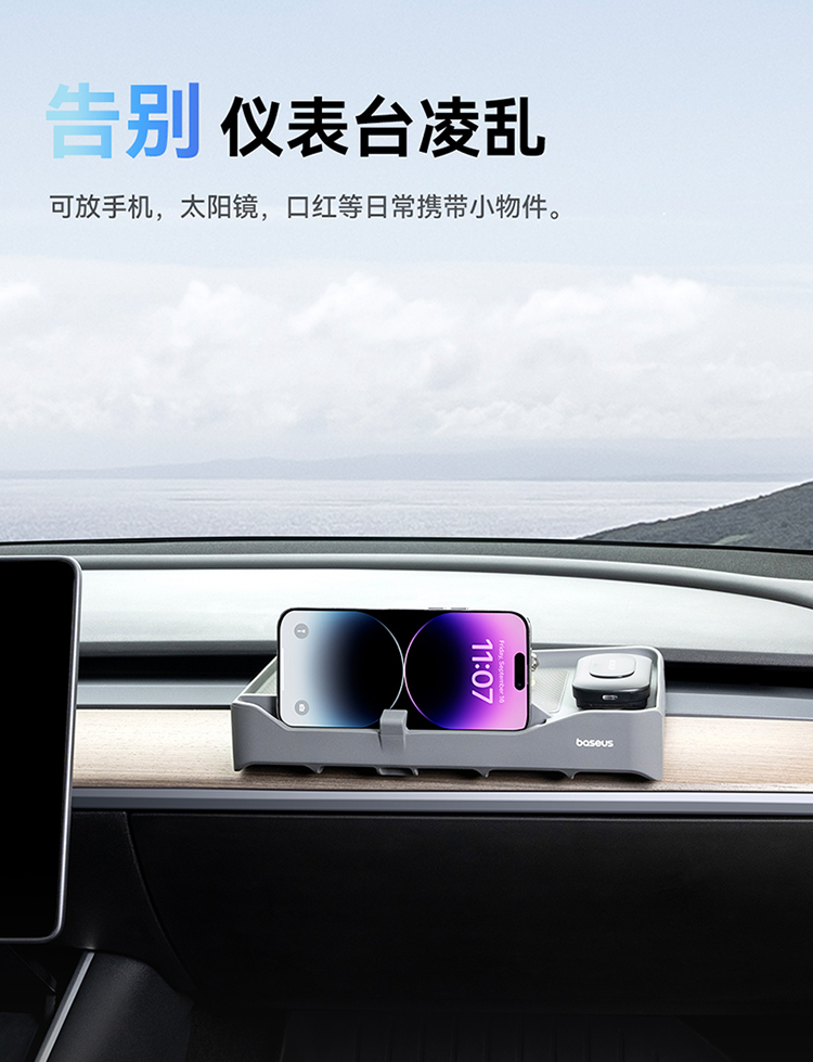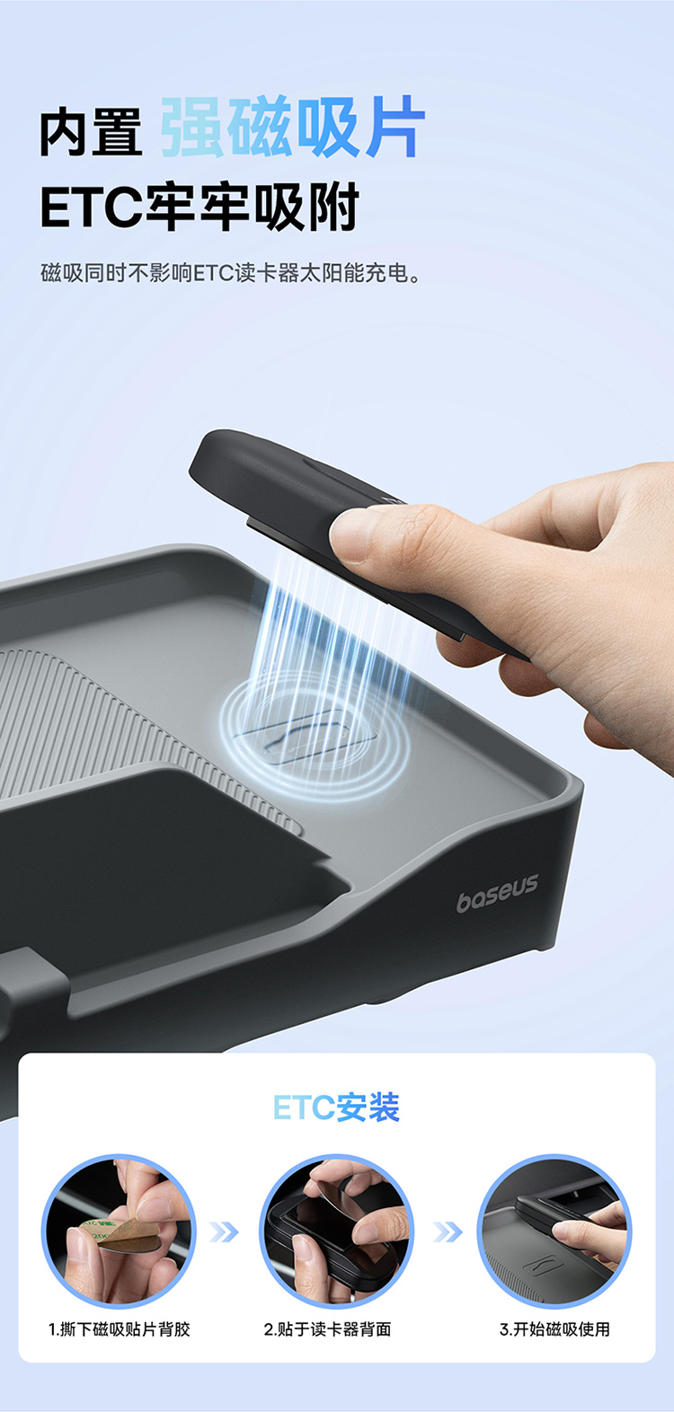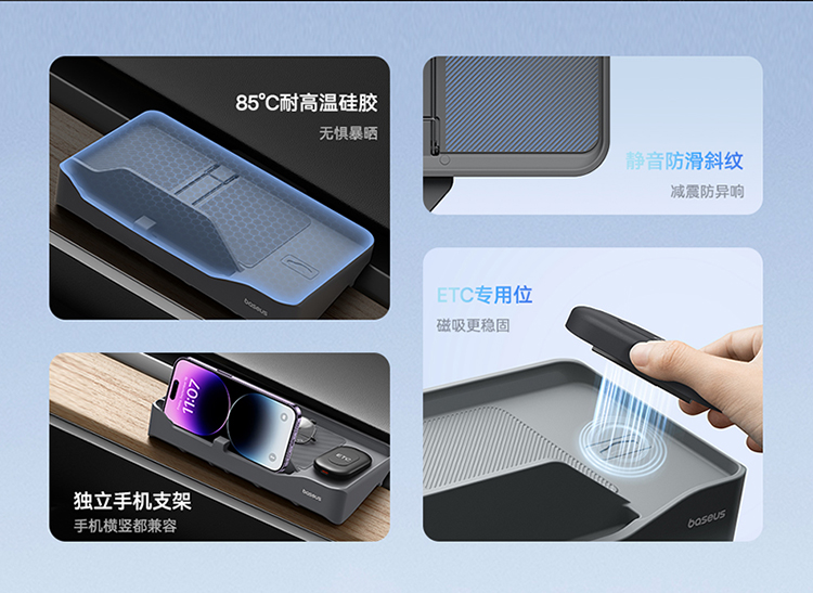 倍思 T-Space ETC置物二合一车载收纳盒 深空灰(含:ETC读卡器固定磁吸片*2)