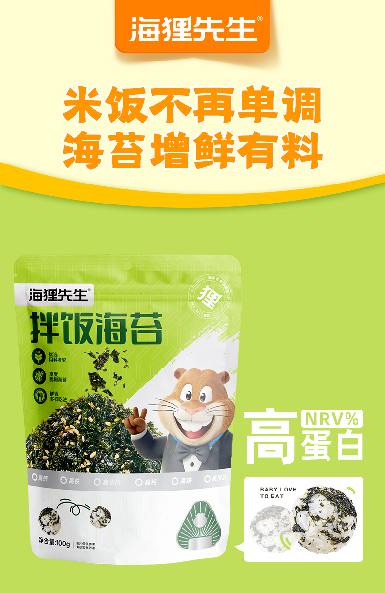 【拍1发4】AG【下单即赠饭团神器】海狸先生拌饭海苔碎100g/袋儿童即食包饭团