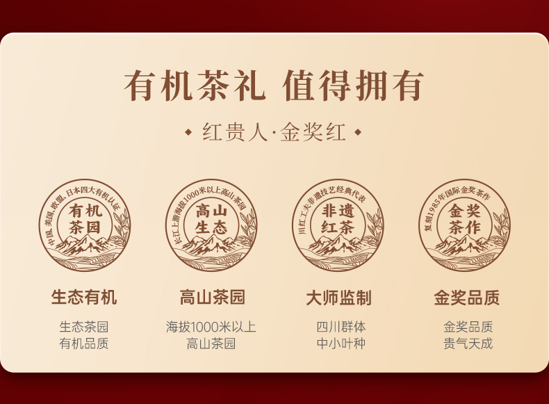 川红茶叶 川红非遗特级工夫红茶金奖85礼盒 橘糖香茶叶250g礼盒内含盖碗茶具