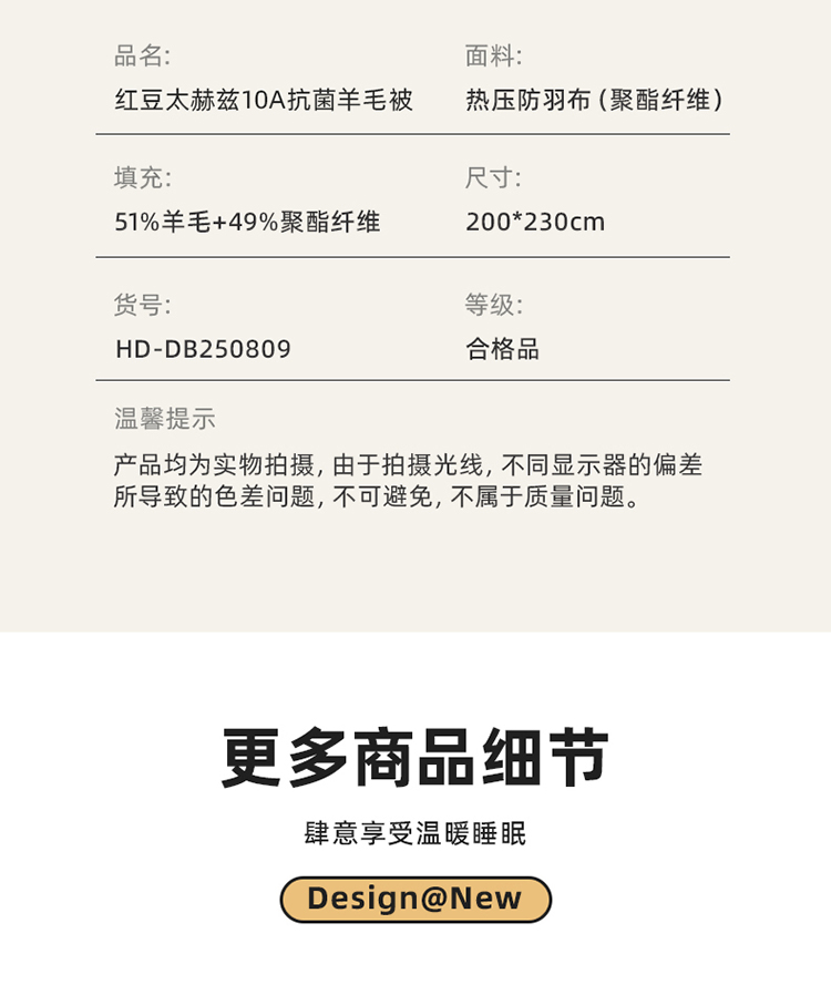 红豆/HONGDOU太赫兹10A抗菌羊毛冬被200*230cm HD-DB250809