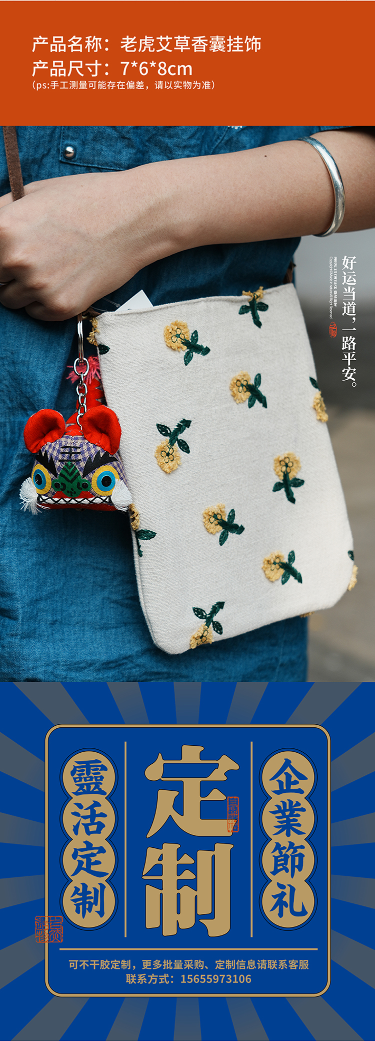 自然造物布老虎钥匙扣艾草包包挂件车挂朋友儿童生日礼物创意礼品