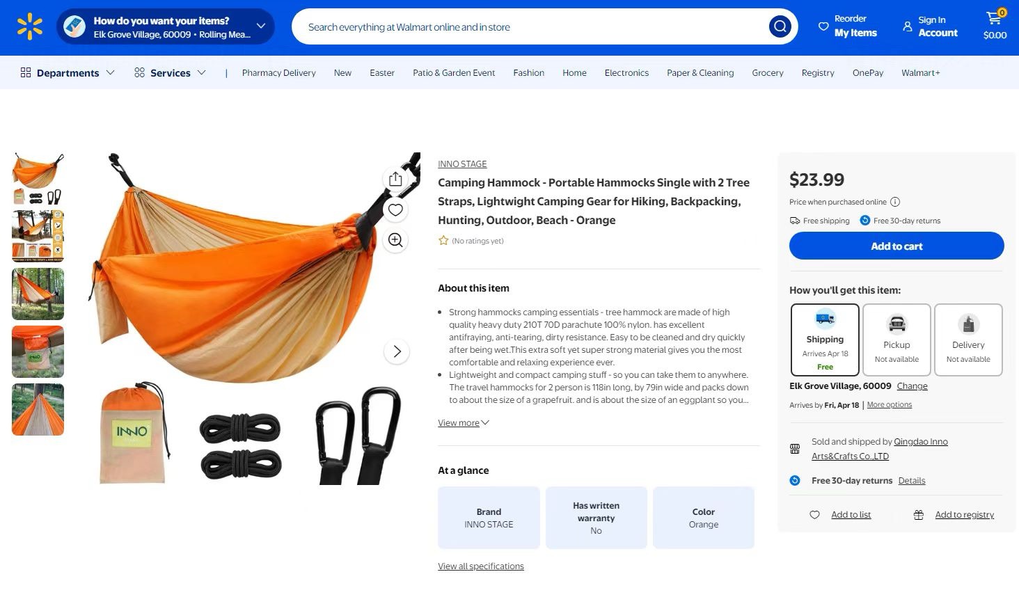 I N N O原单户外吊床,承重超强!降落伞面料!户外防侧翻露营单人吊床 140*260