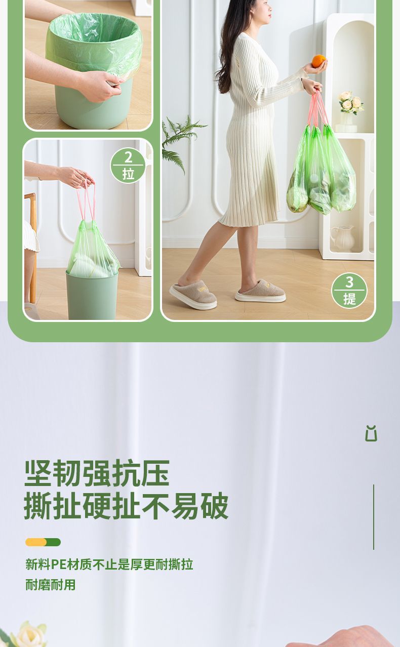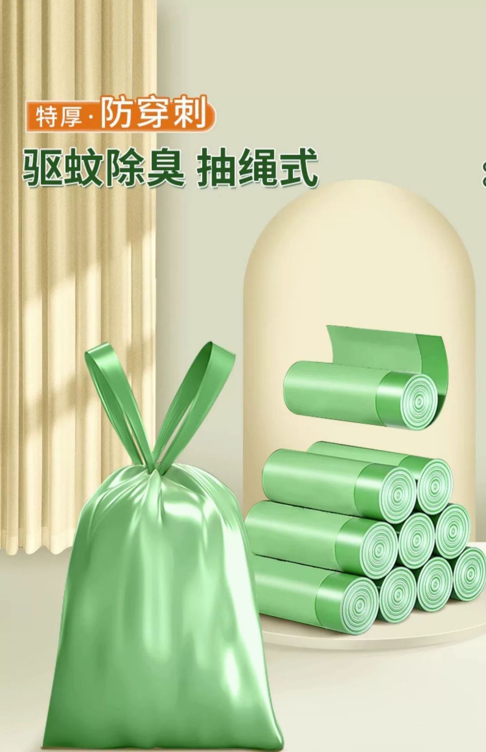 【19.9抢200个❗️艾草驱蚊垃圾袋】清新高颜值特厚驱虫垃圾袋,家用厨房大卷抽绳式袋子L