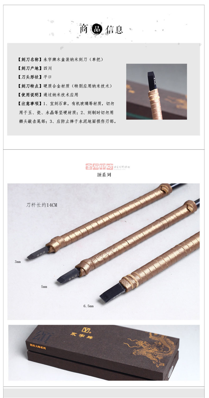 金石印坊 永字牌颂系列高级型钨钢石刻刀篆刻刀具 金石篆刻平口纳米刻刀