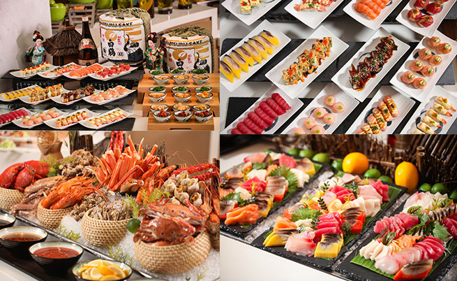 琳琅满目的海鲜、刺身任你吃个够