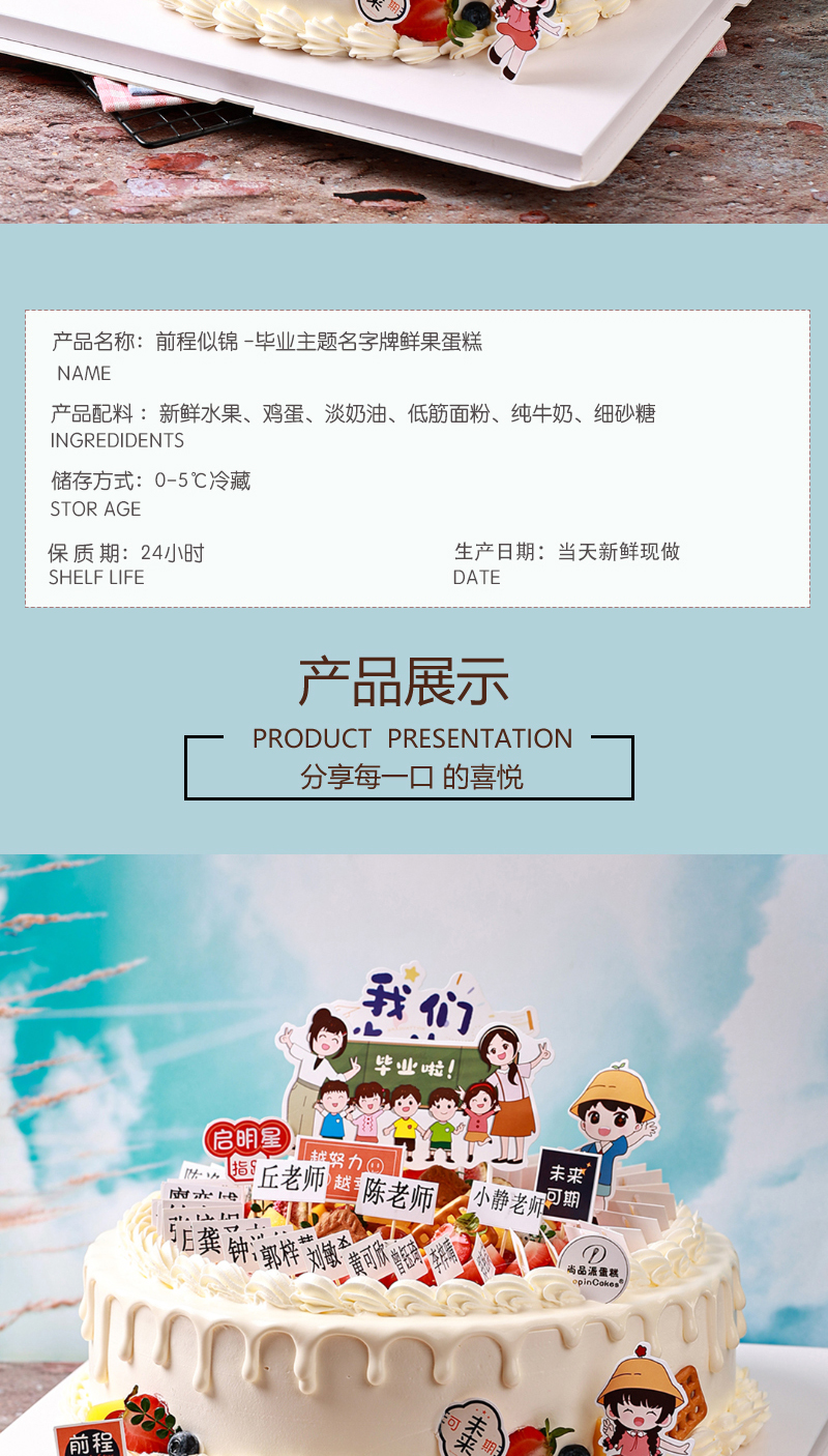 【毕业季】前程似锦-毕业主题名字牌鲜果蛋糕【惠州】