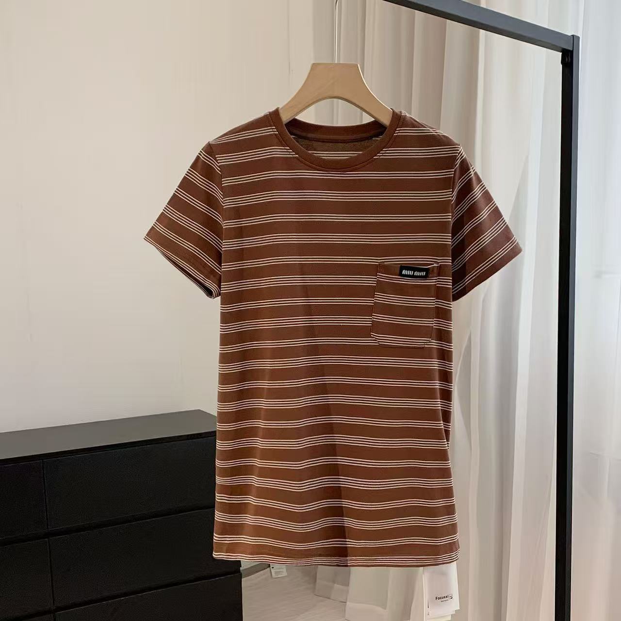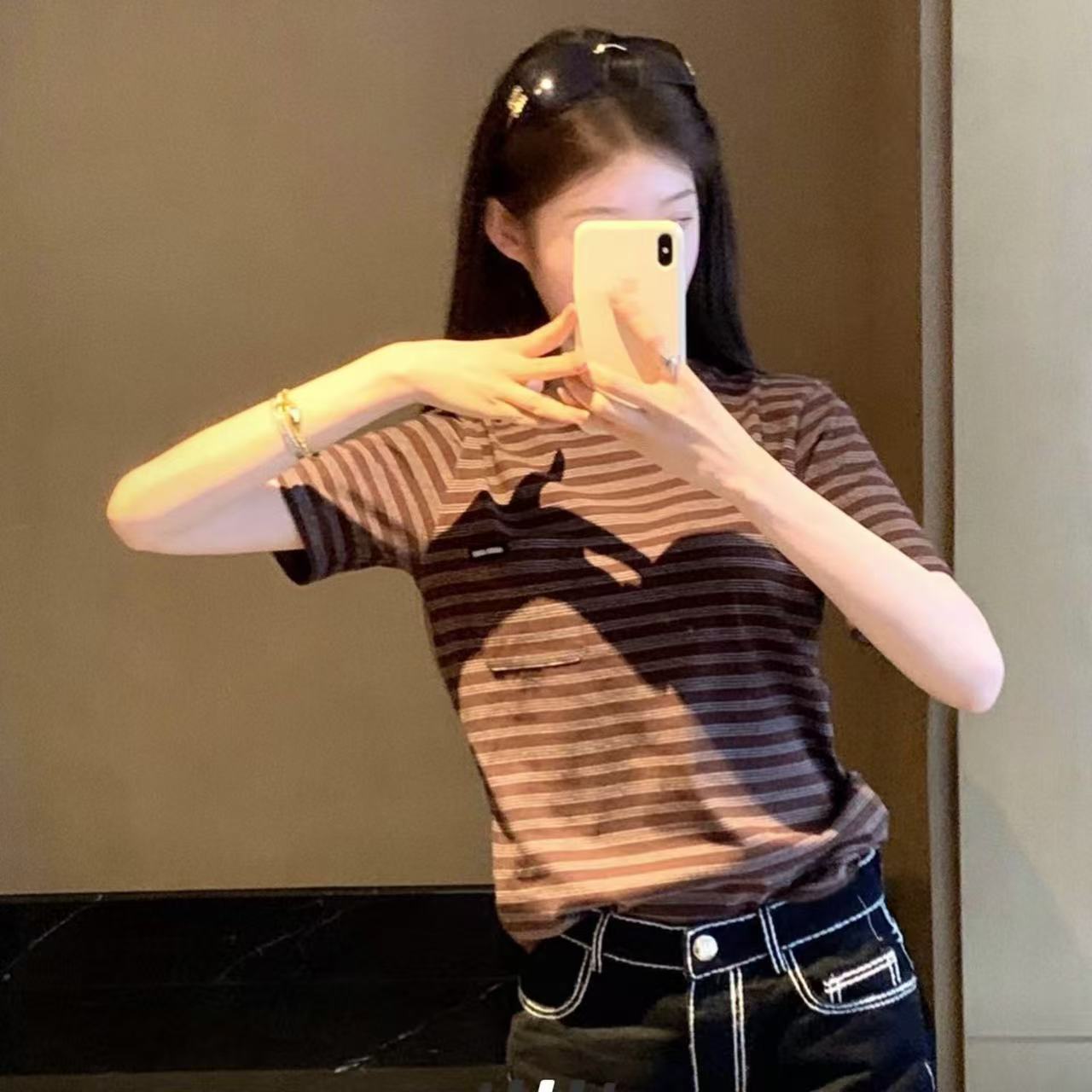 【xb1-05663】女士时尚条纹针织短袖T恤!!