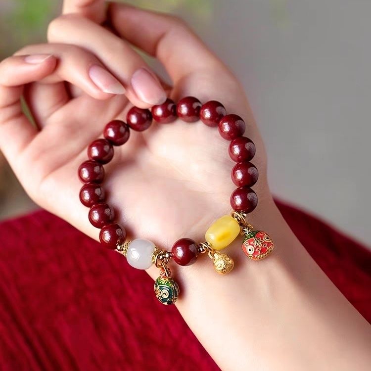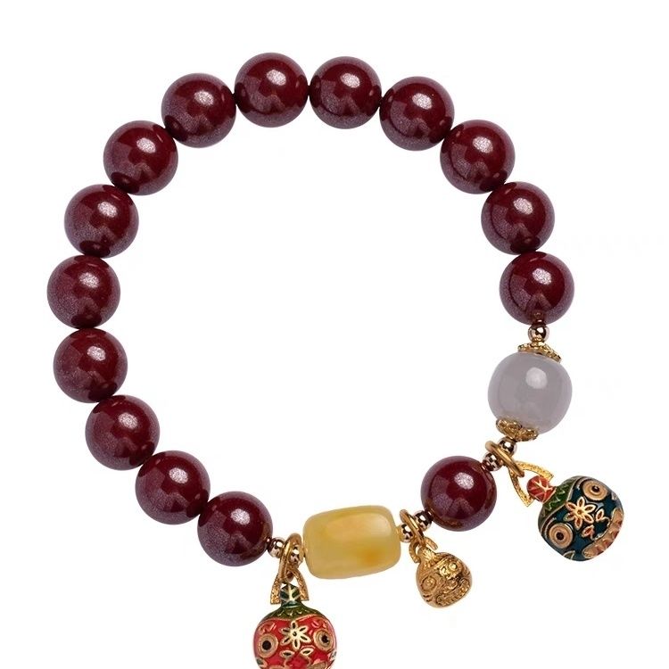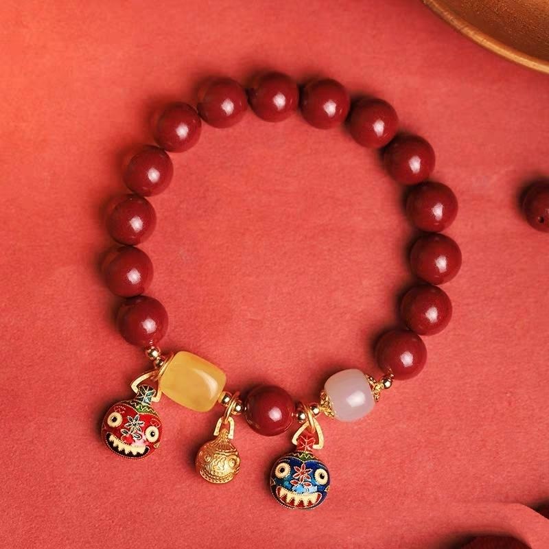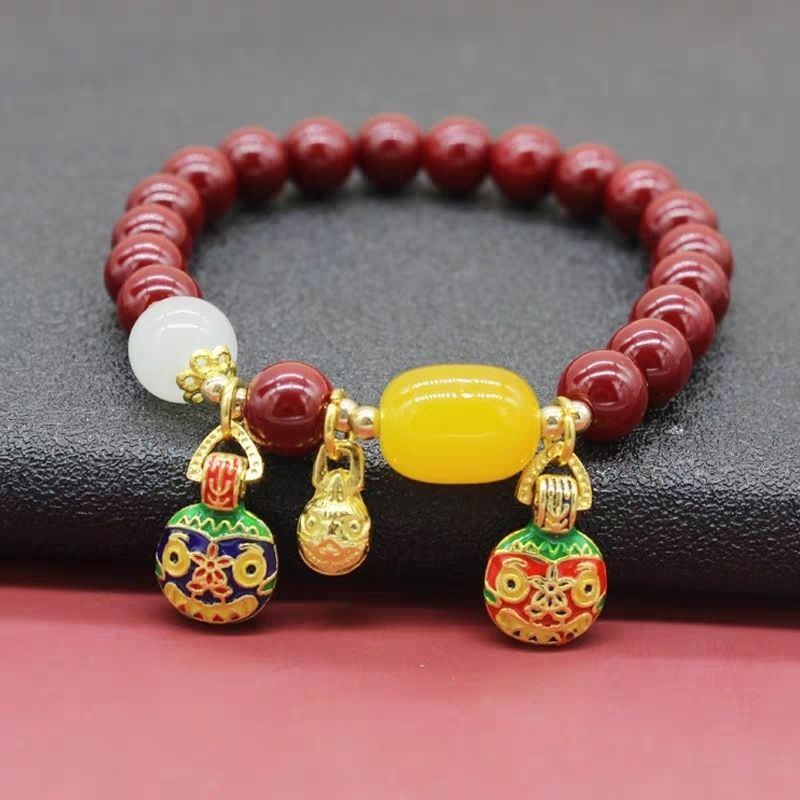 朱砂吞金兽一家三口手链紫金砂转运珠男女士款本命年招财手串。朱砂含量为35%