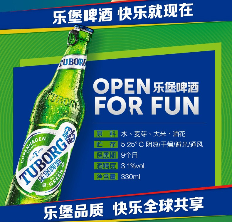 【整箱24瓶】乐堡啤酒24瓶嘉士伯8度330ml*24瓶/箱