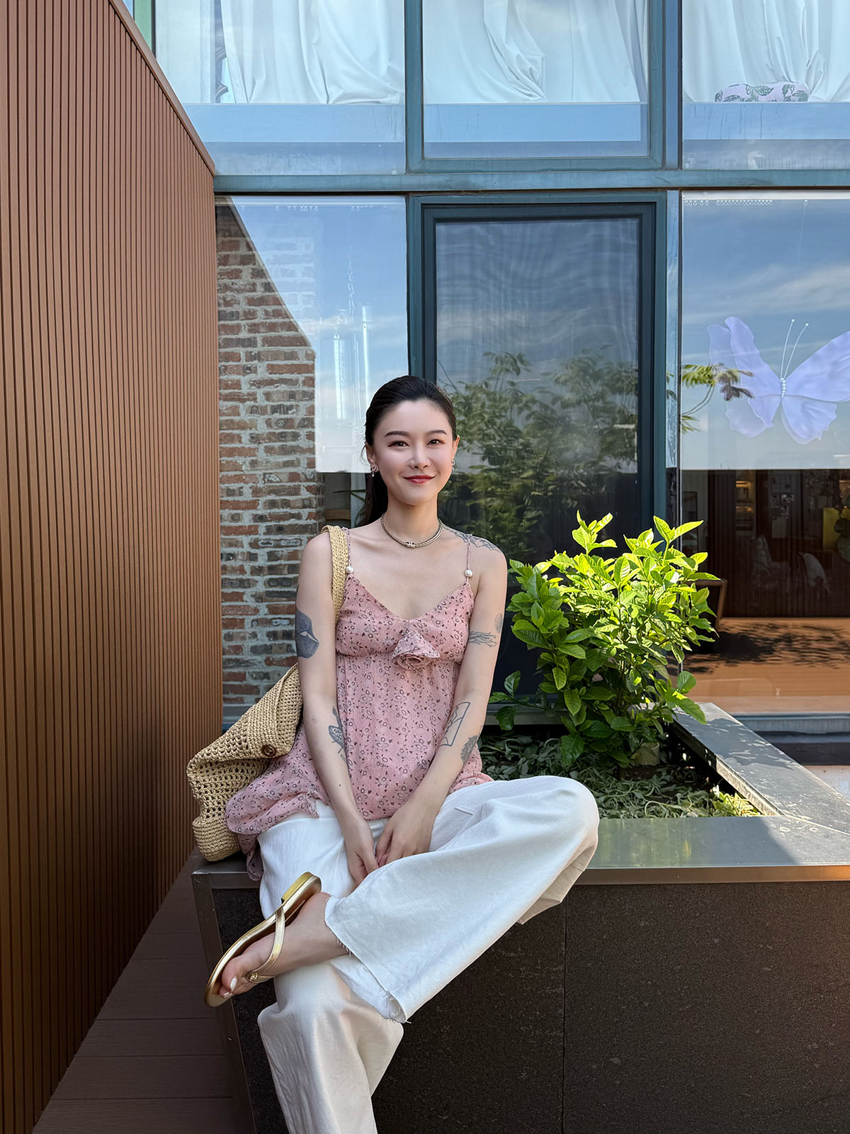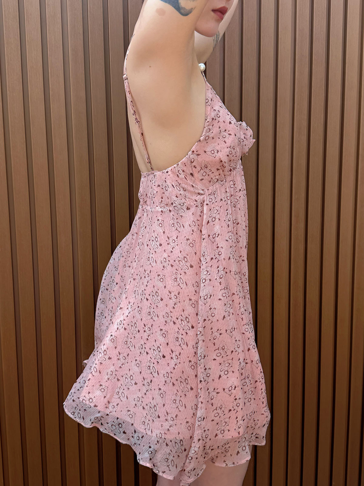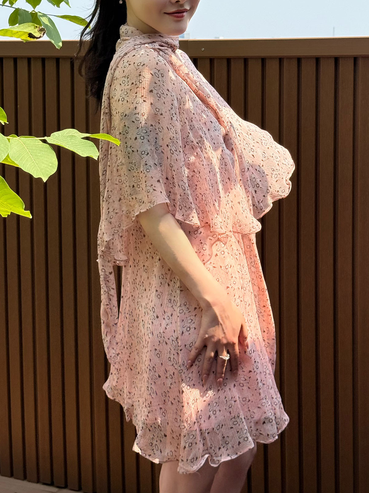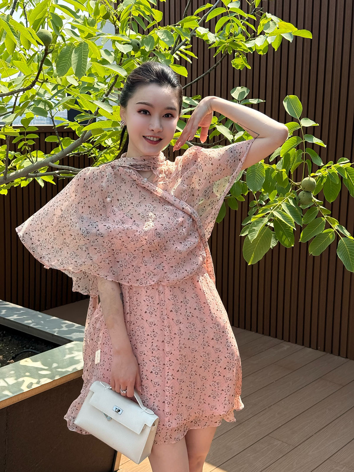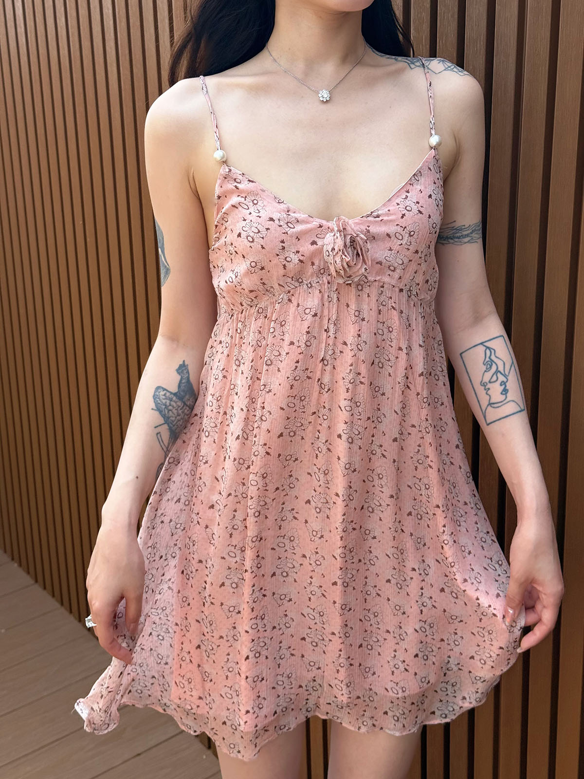 DUO智仙粉标少女雏菊淡粉色真丝混纺印花吊带连衣裙和夏日小披肩