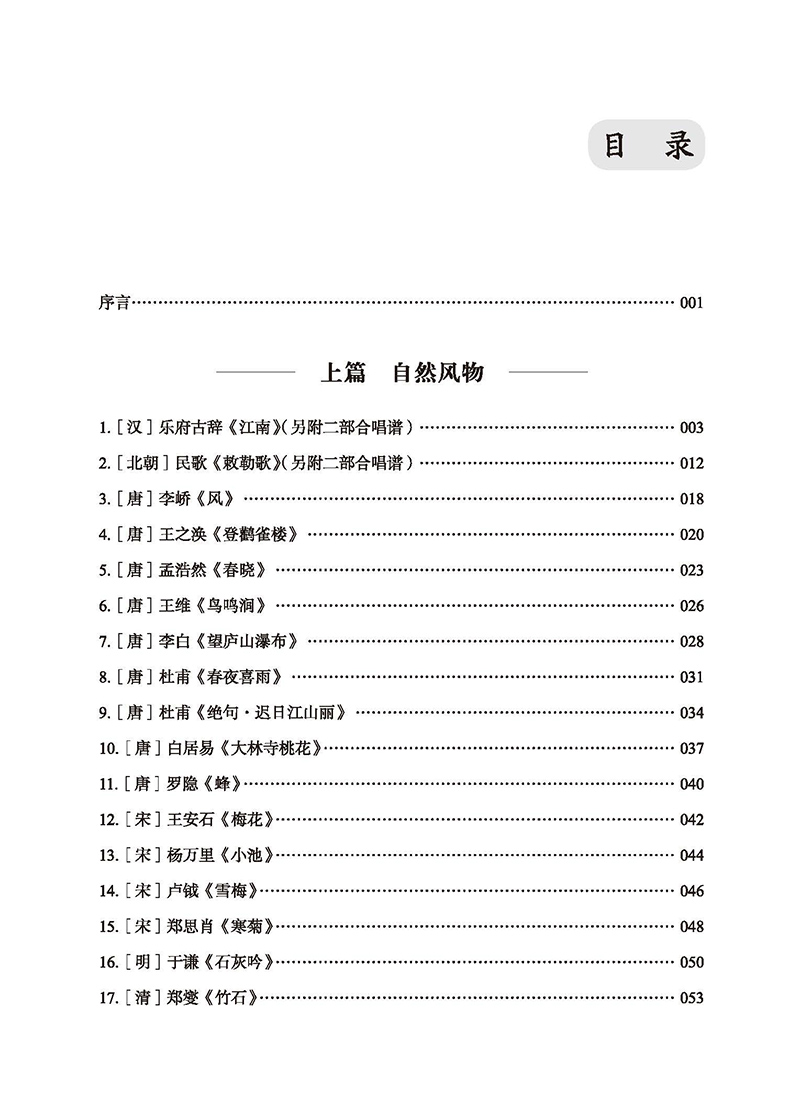 本书通过对五十二首中华古诗词声调中内在的;旋律进行提取,以;注调方式即以乐音标注声调为古诗词谱曲,赋予传统诗文新的艺术生命。作者旨在引导读者发现汉语自身所具有的音乐性,深入感受汉语独特的艺术魅力与审美特质,从而增强对民族文化的认同与自豪。全书收录五十二首注调吟唱作品,按人文题材编排。每首作品均配备五线谱与简谱,并附有诗文赏析、乐曲分析与吟唱指导三部分文字说明。同时,书中提供作者亲自吟唱的示范,帮助读者更直观地理解与学习。