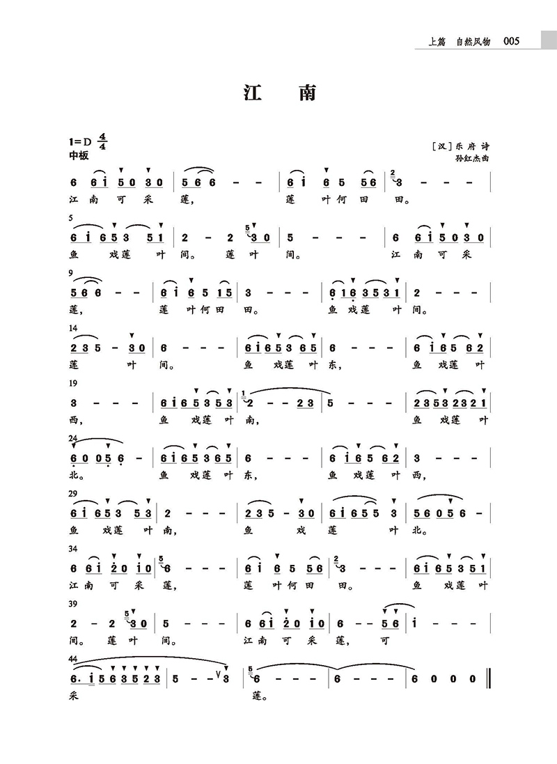 孙红杰,上海师范大学音乐学院教授、博士生导师,中国音乐家协会西方音乐学会副会长,第九届;中国音乐金钟奖获得者。出版专著《音乐中的文化泛音》,译著《修补裂痕》《协奏曲谈话》《文艺复兴音乐》《古典音乐》等19部,担任;俄耳甫斯音乐译丛主编,出版个人诗集《览趣集》。在《中国音乐》上发表论文《论旋律中的族性基因和语言基质:兼论汉语声调的音乐潜能与新韵旧体诗的入乐吟唱方法》。近年来致力于中华古诗文入乐赋能的研究与实践,为人教版16年级小学语文课本中全部古诗词度曲三百余首;在上海音乐学院、上海师范大学两校为大学生、硕博研究生开设;吟诗入乐课程,其结课音乐会获《中国日报》《文汇报》《青年报》《新民晚报》等多家媒体报道;应邀在央音、国音、武音、川音、哈音等专业音乐学院和华东师大、江南大学等综合大学举办古诗文入乐赋能的专题讲座;在上音附中附小、上师大附中附小等多所中小学讲授师训课程。20202022年陆续开设;乐颐斋清吟;歌咏国学微信公众号和视频号,发布原创诗文吟唱作品,获数万名粉丝关注,包括《江南》在内的多部作品被用于课堂教学、节日庆典和歌咏比赛活动中。2024、2025年;上海之春国际音乐节期间策划组织;吟诗入乐专场音乐会,获《人民日报》等多家媒体关注并进行报道;2024年古诗文吟唱作品应邀参演;利物浦在上海文化活动日;2025年1月应邀前往美国洛杉矶加州大学作有关;汉语古诗文吟唱的英文演讲,宣传中国传统文化;2025年3月应邀参演由上海市公共关系学会、上海诗词学会和上海玉佛禅寺联合主办的;觉群杯首届诗词大赛颁奖典礼,为来自全国各地的文化学者表演古诗词注调吟唱作品。