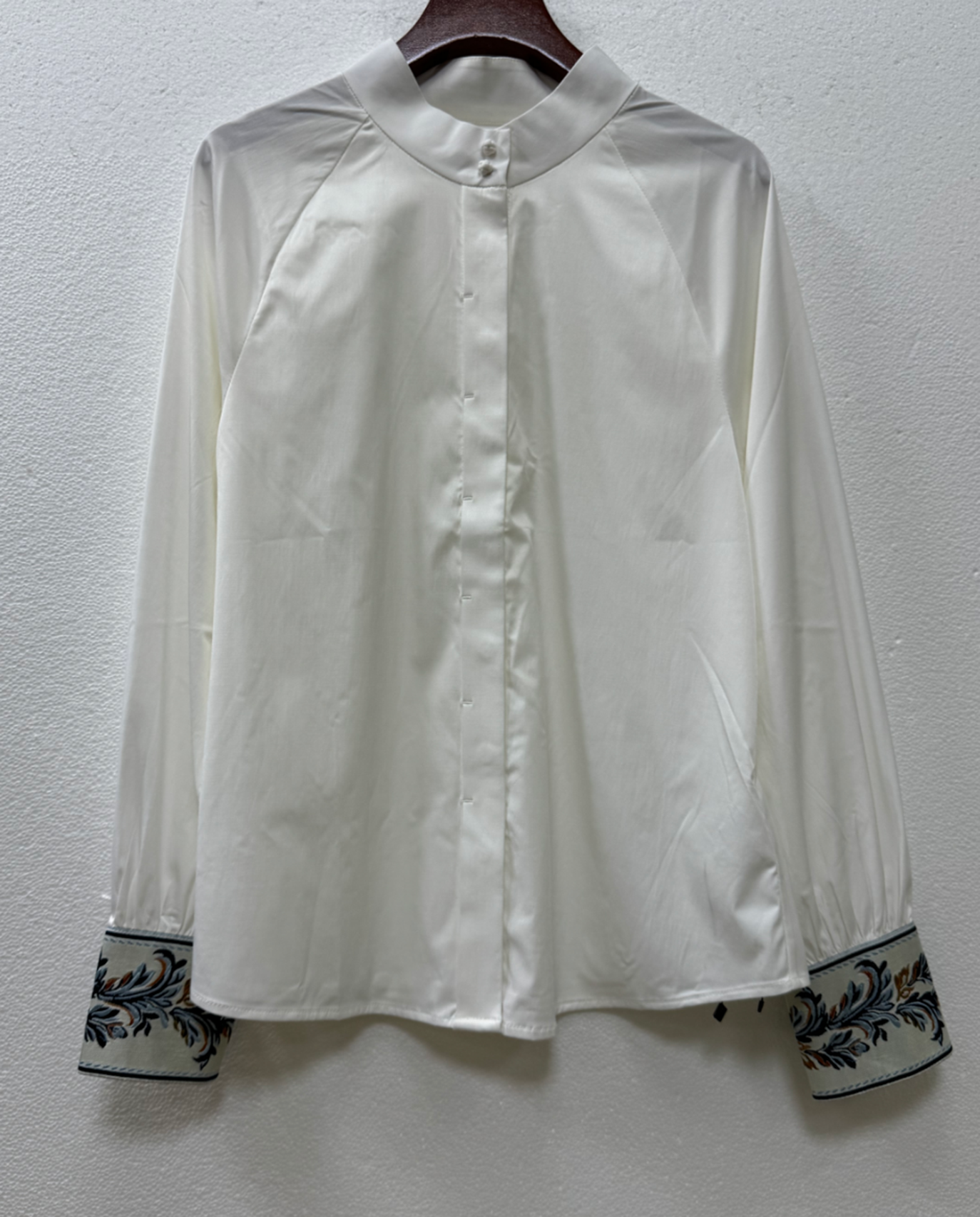 盛唐婧 | 新中式袖口拼苗绣白衬衫