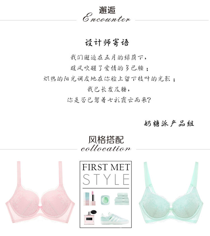 【8.25发货】奶糖派邂逅蕾丝163型粉绿组合装 少女大罩杯内衣
