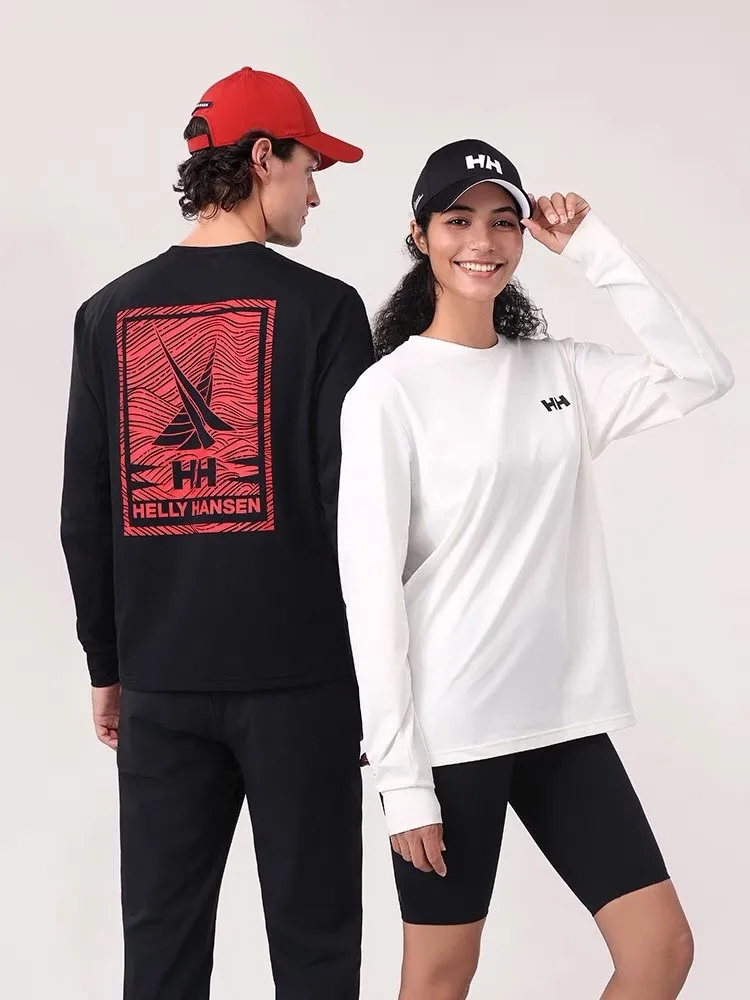 HH 25春新情侣款休闲速干弹力图案印花长袖T恤圆领卫衣 这款卫衣具有更加舒适性能。在柔软、透气的基础上,通过毛圈中空芯构造,使暖重比提高。