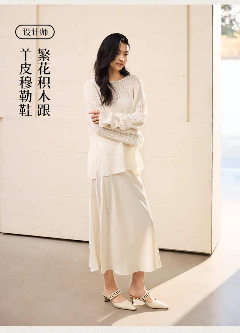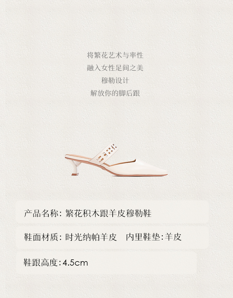 heelz设计师手工鞋履 |繁花积木跟羊皮穆勒鞋 4.5公分