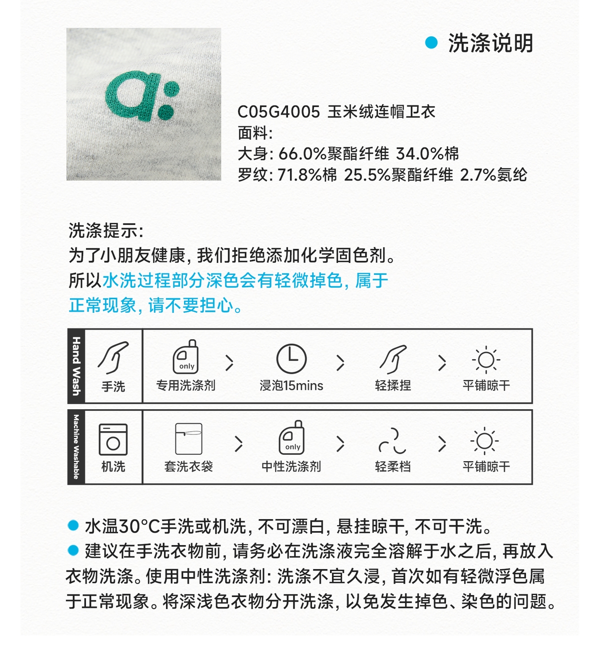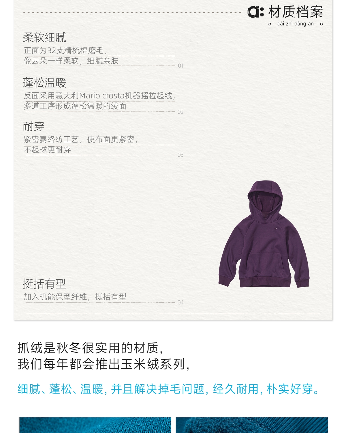 【玉米绒】allblu幼岚儿童连帽卫衣25冬新款男童女童柔软舒适